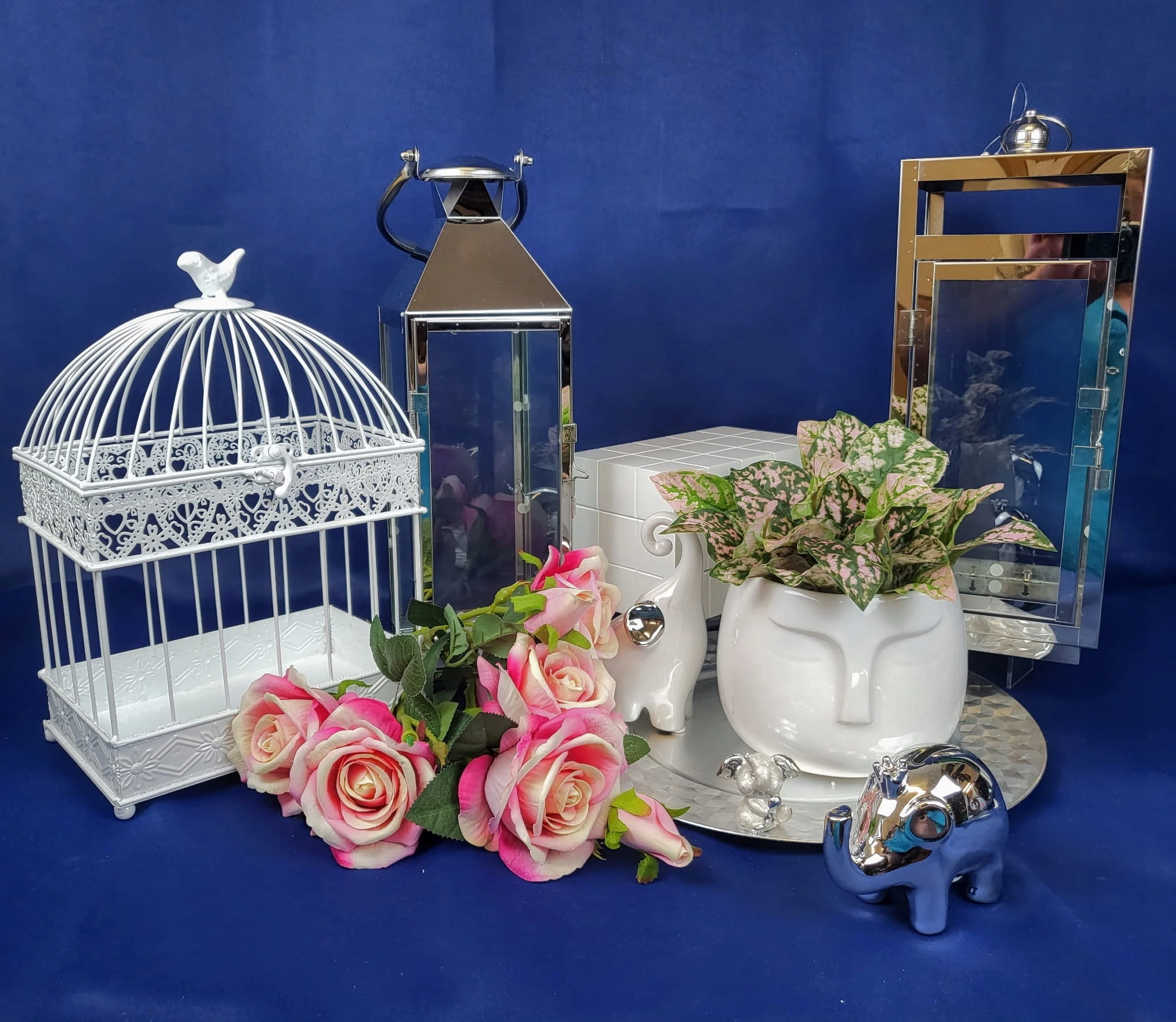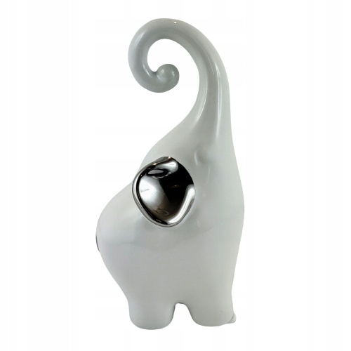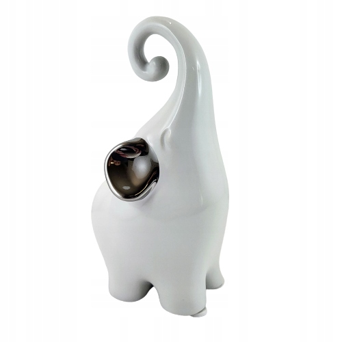 FIGURKA SŁOŃ SŁONIK BIAŁO-SREBRNY PREZENT 15 CM