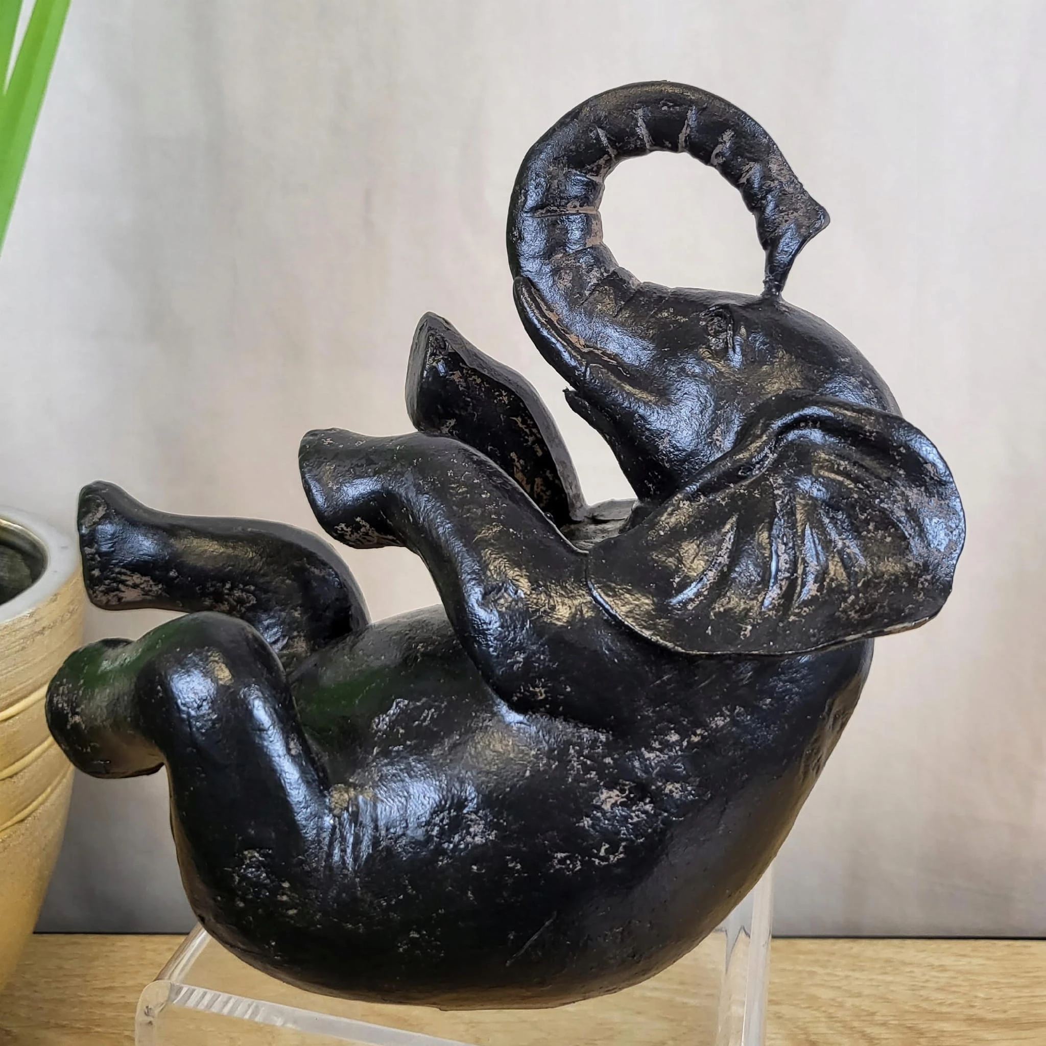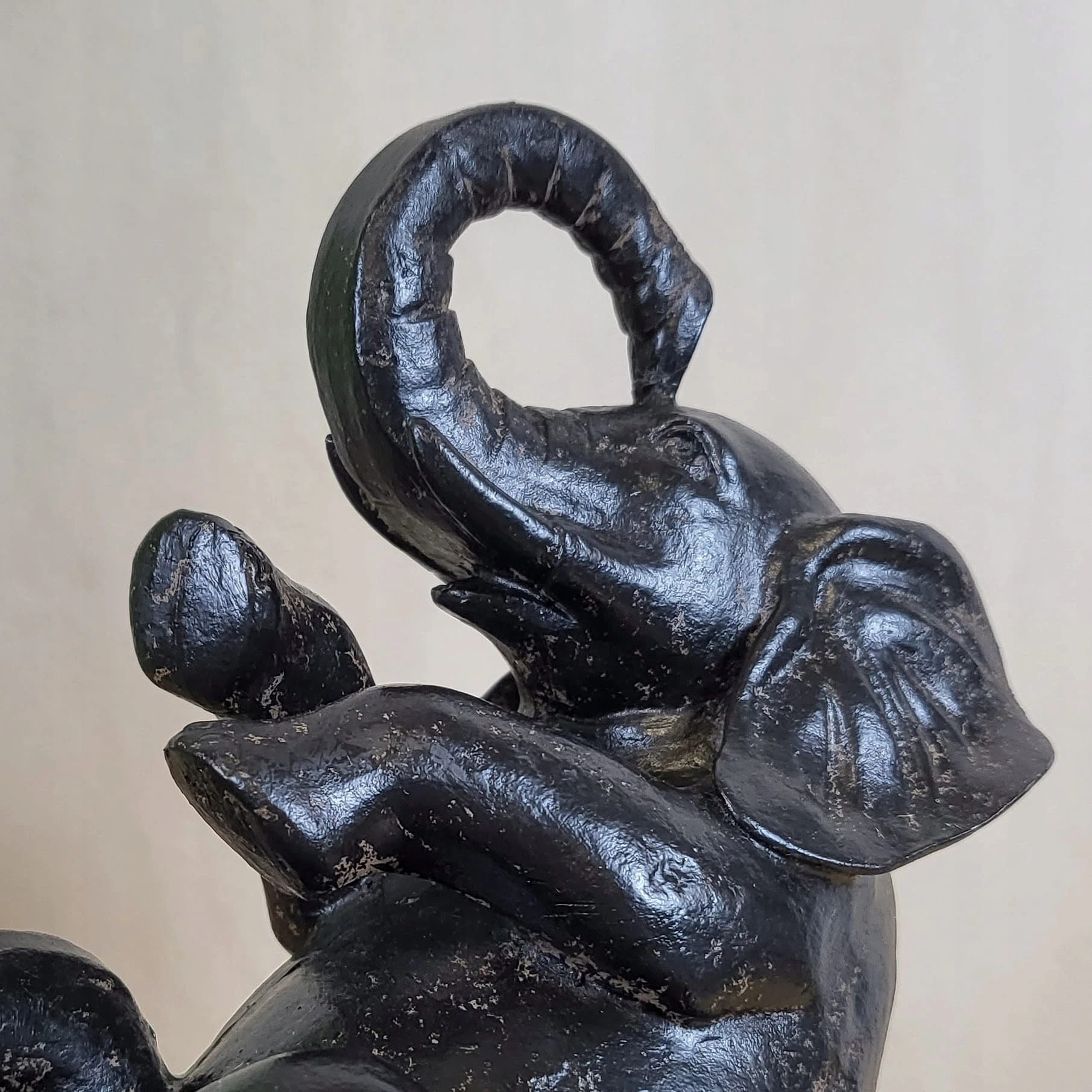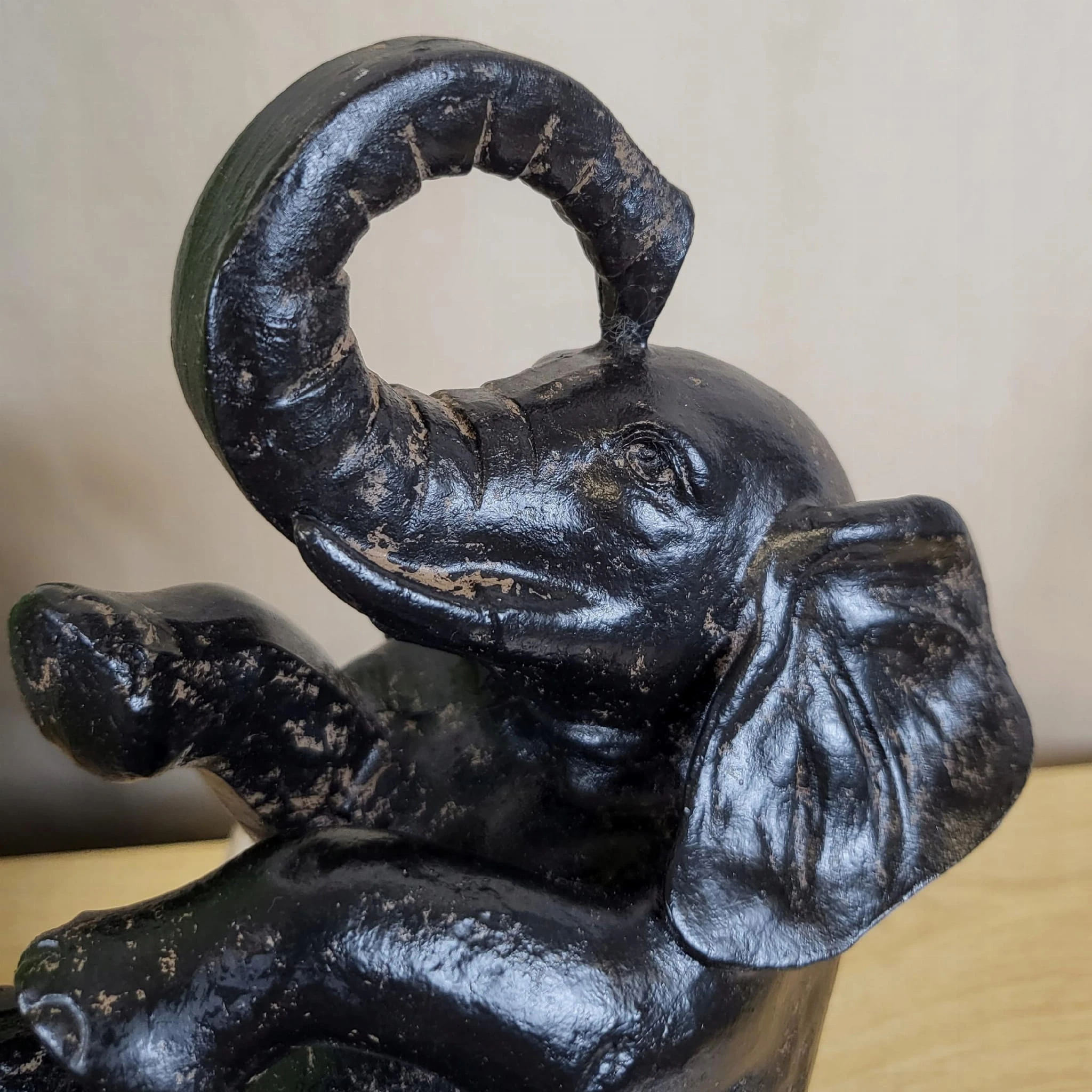 Piękna czarna postarzana figurka słonia.