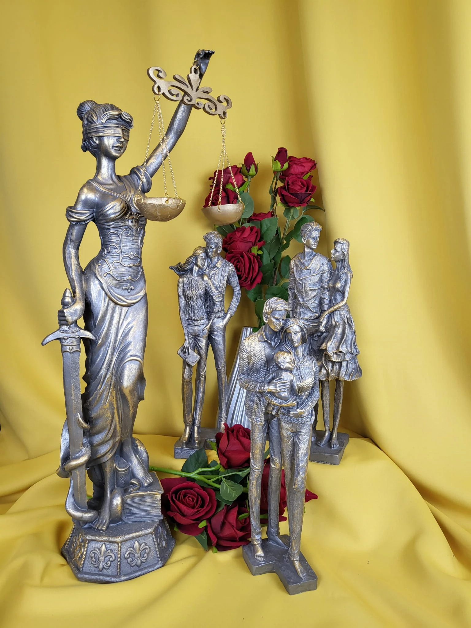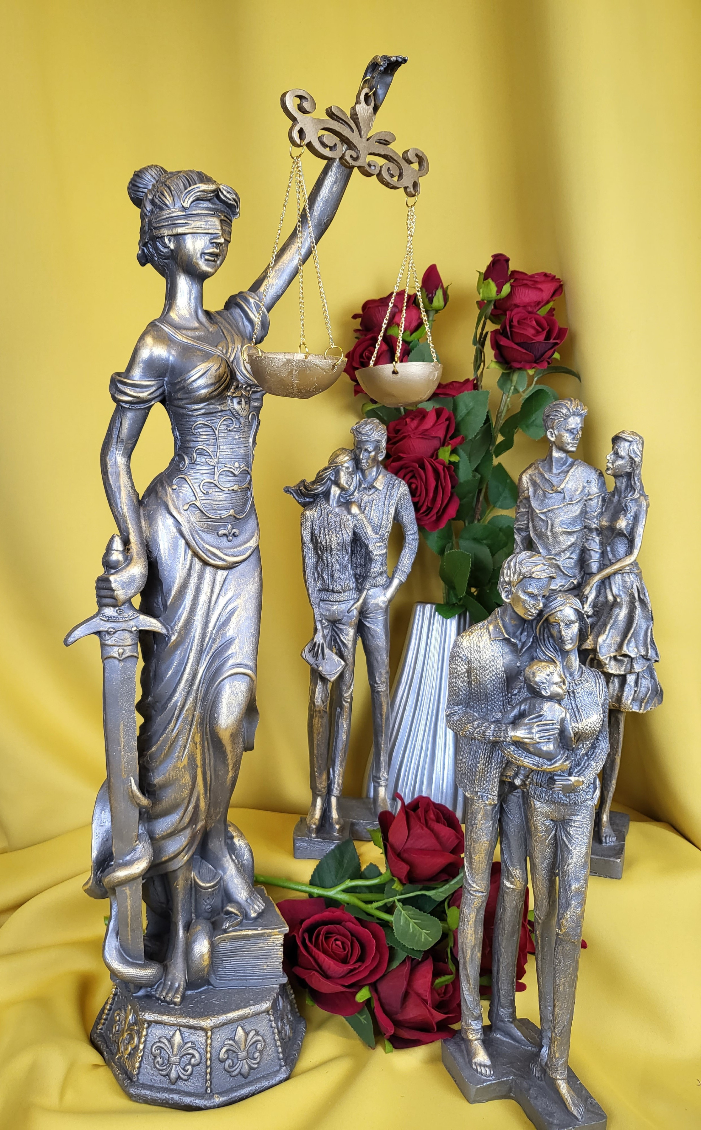 FIGURKA STOJĄCA RODZINA SZARO-ZŁOTA 38,5CM