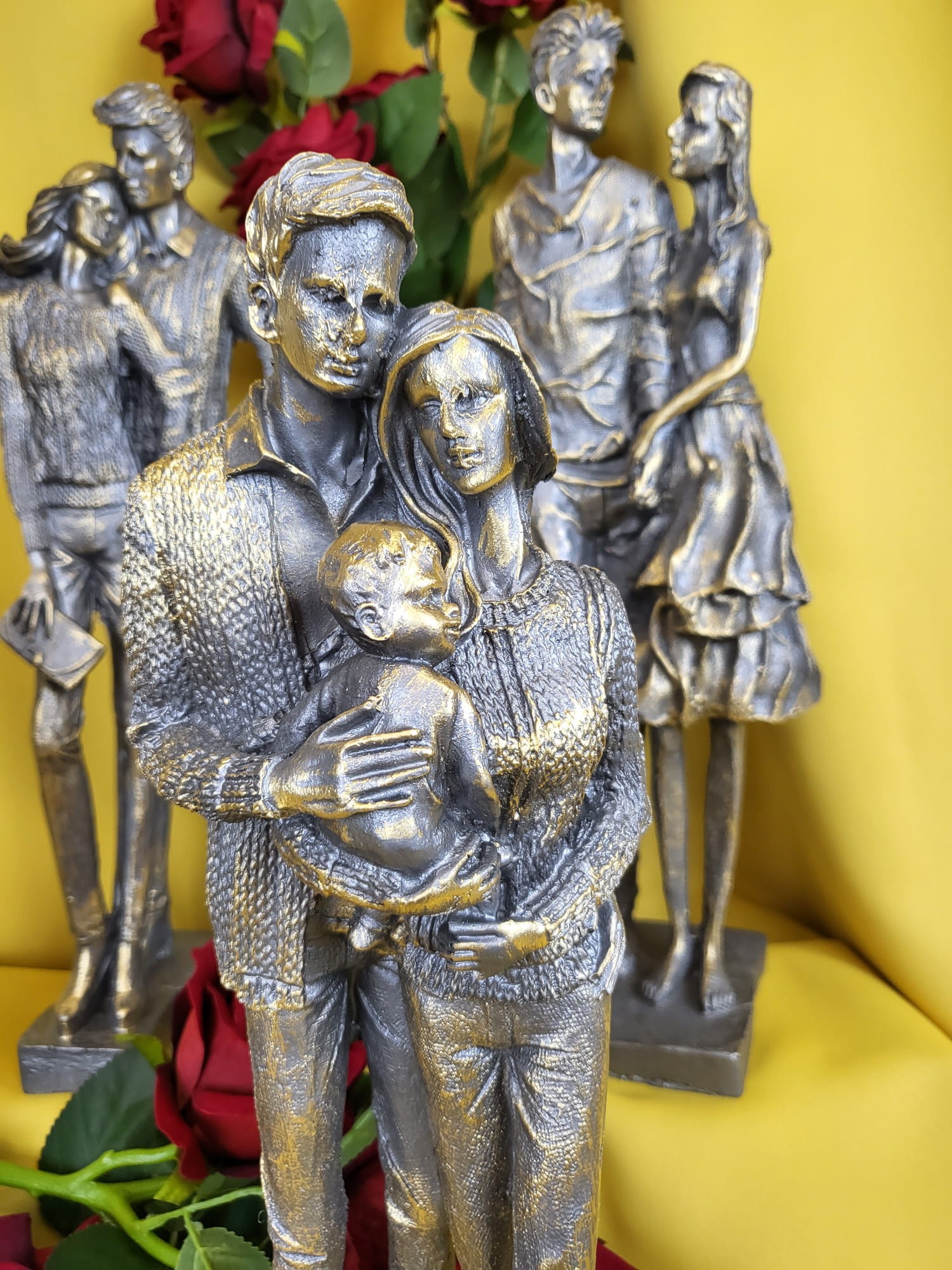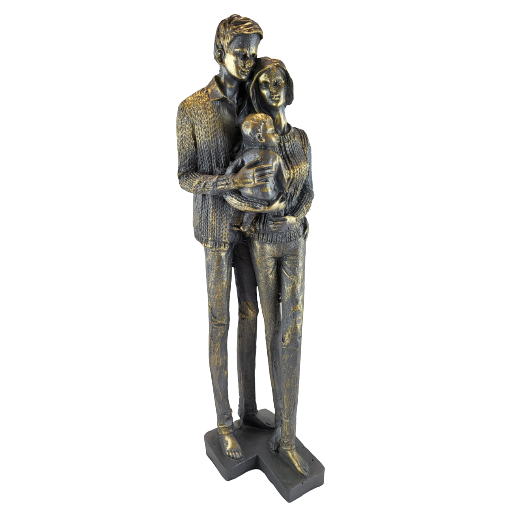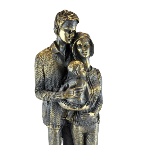 Oryginalna figurka z wizerunkiem rodziny w kolorze złota i szarości. Sprawdzi się jako ozdoba mieszkania w stylu klasycznym, jak i nowoczesnym. Jej niepowtarzalny design sprawi że nikt nie przejdzie obok niej obojętnie. Doskonały prezent.