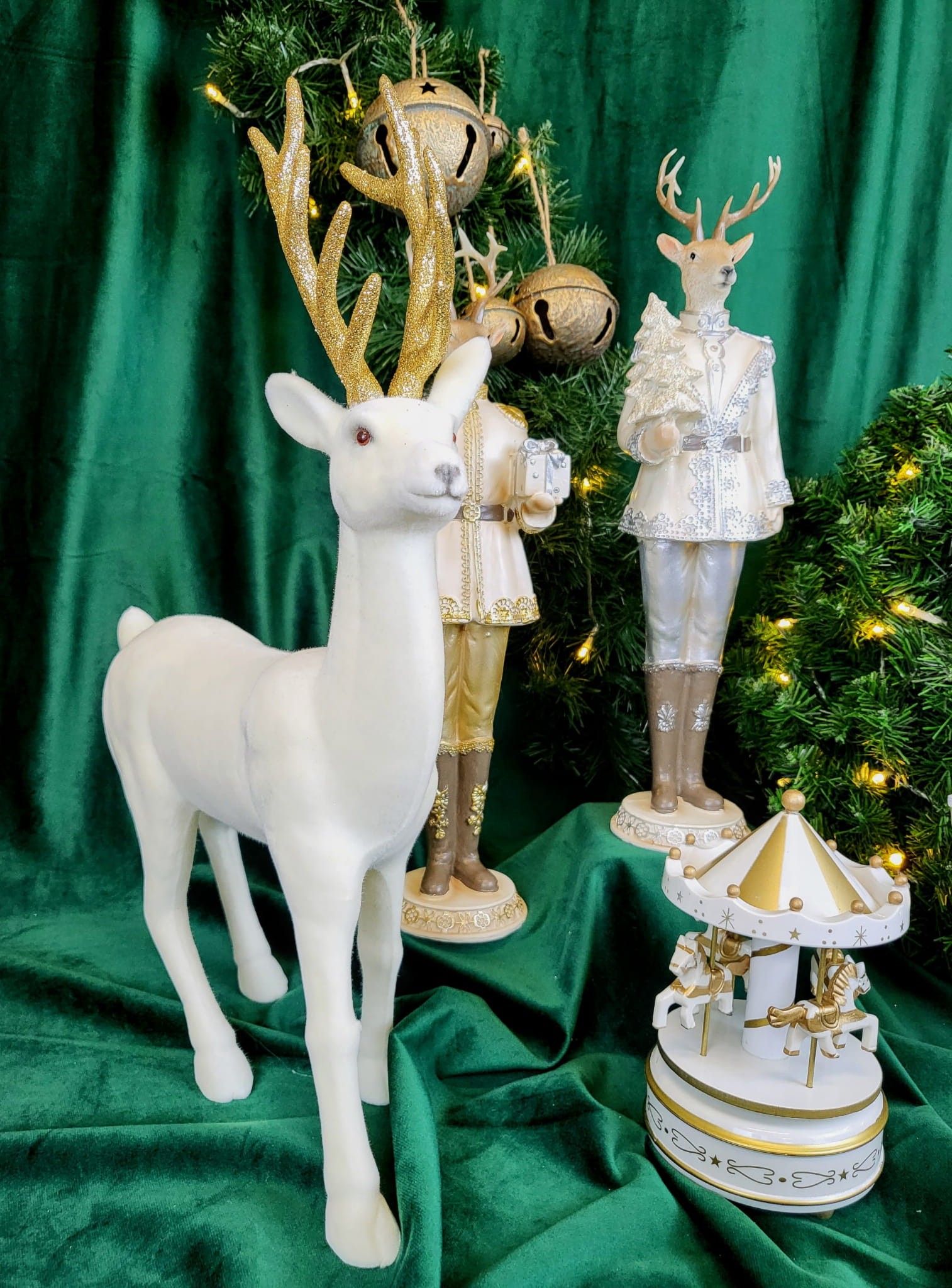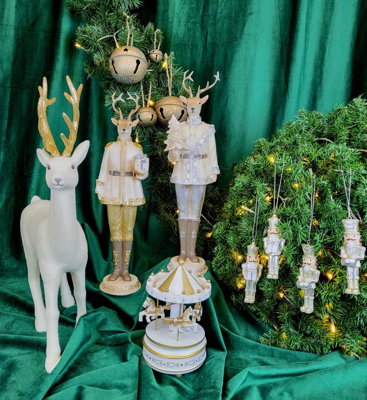 FIGURKA ŚWIĄTECZNY RENIFER W MUDNURZE Z CHOINKĄ