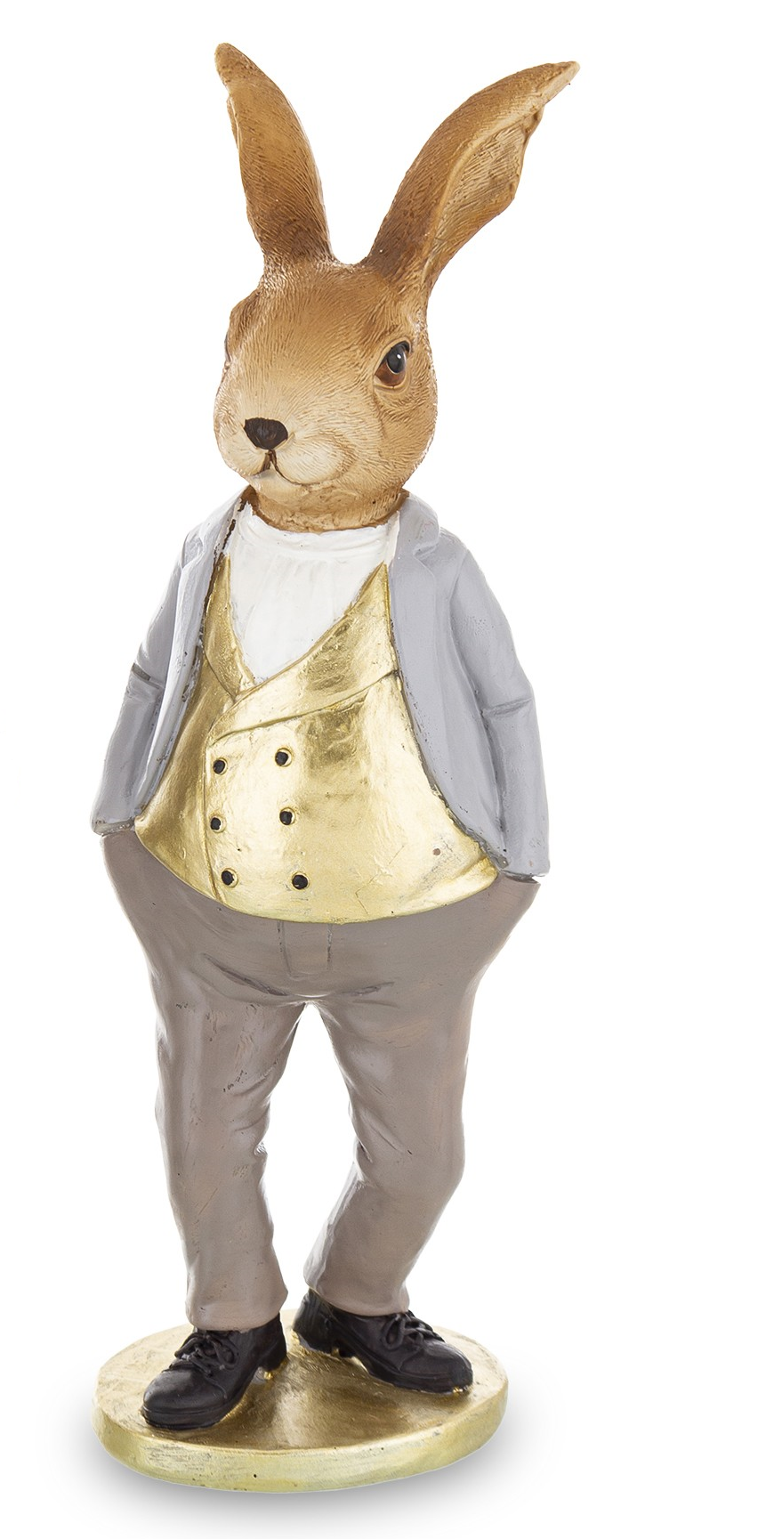 FIGURKA WIELKANOCNA KRÓLIK W ZŁOTEJ KAMIZELCE 23x8x6,5