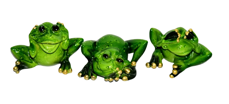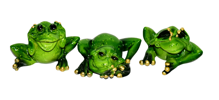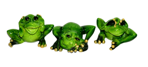 Zabawna figurka żaby z serii "Nie mówię, nie widzę, nie słyszę", która ożywi każdą półkę czy biurko.
