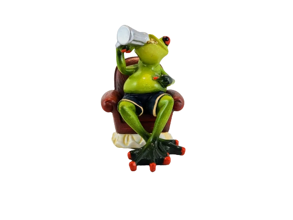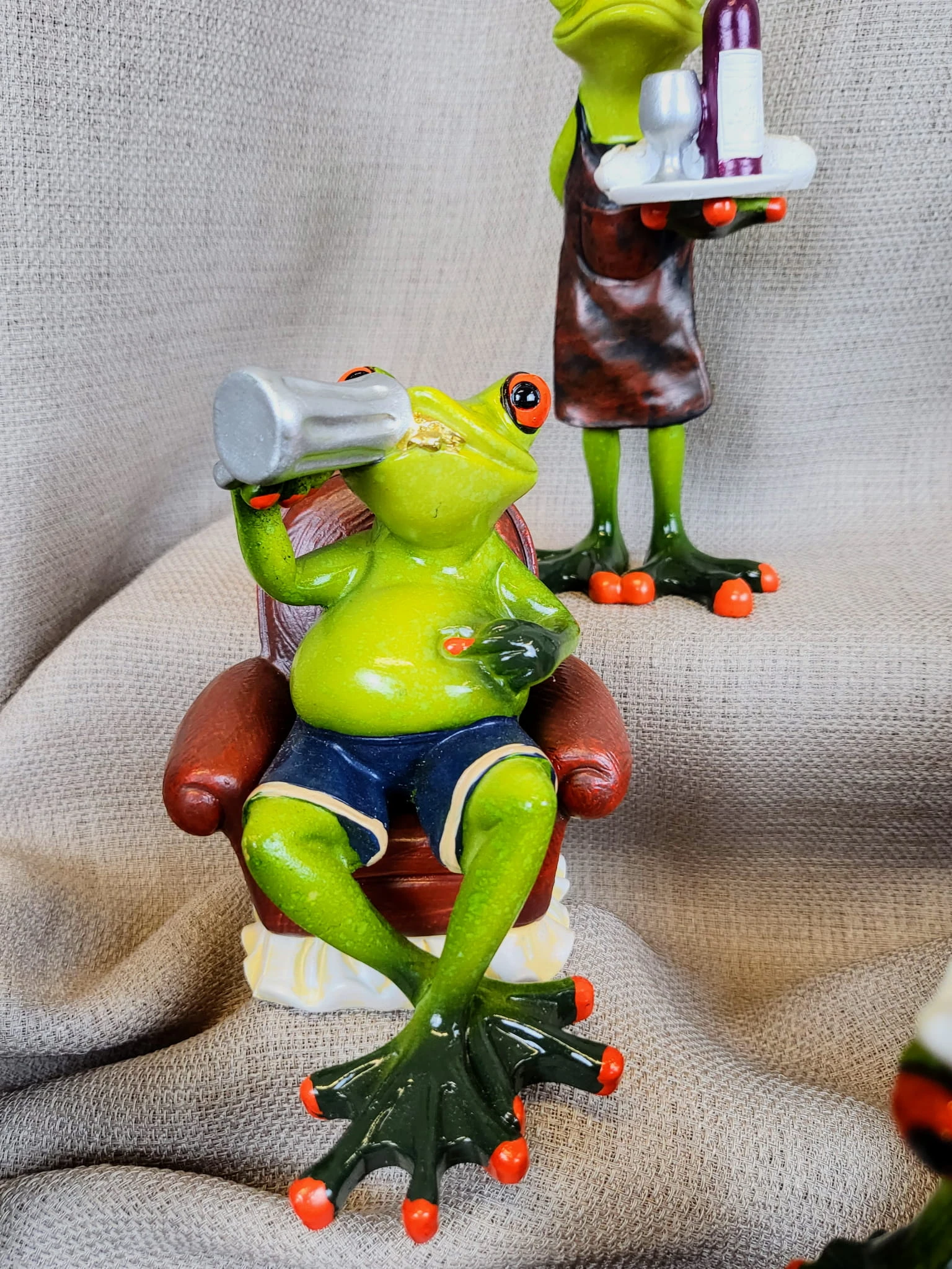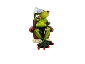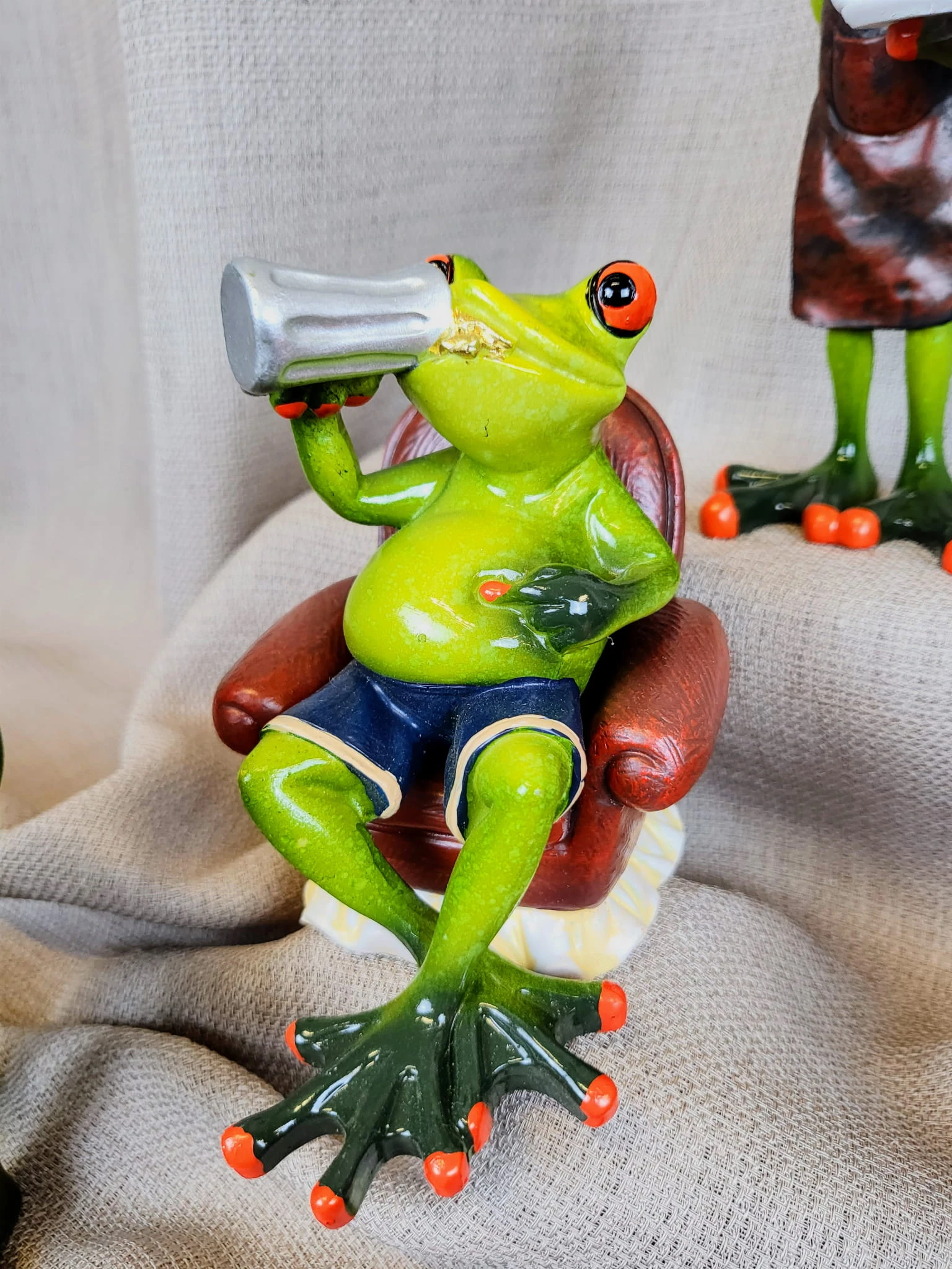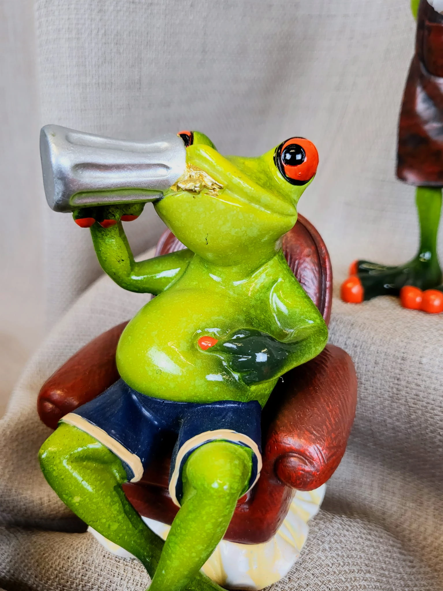 FIGURKA ŻABA NA FOTELU Z KUFLEM