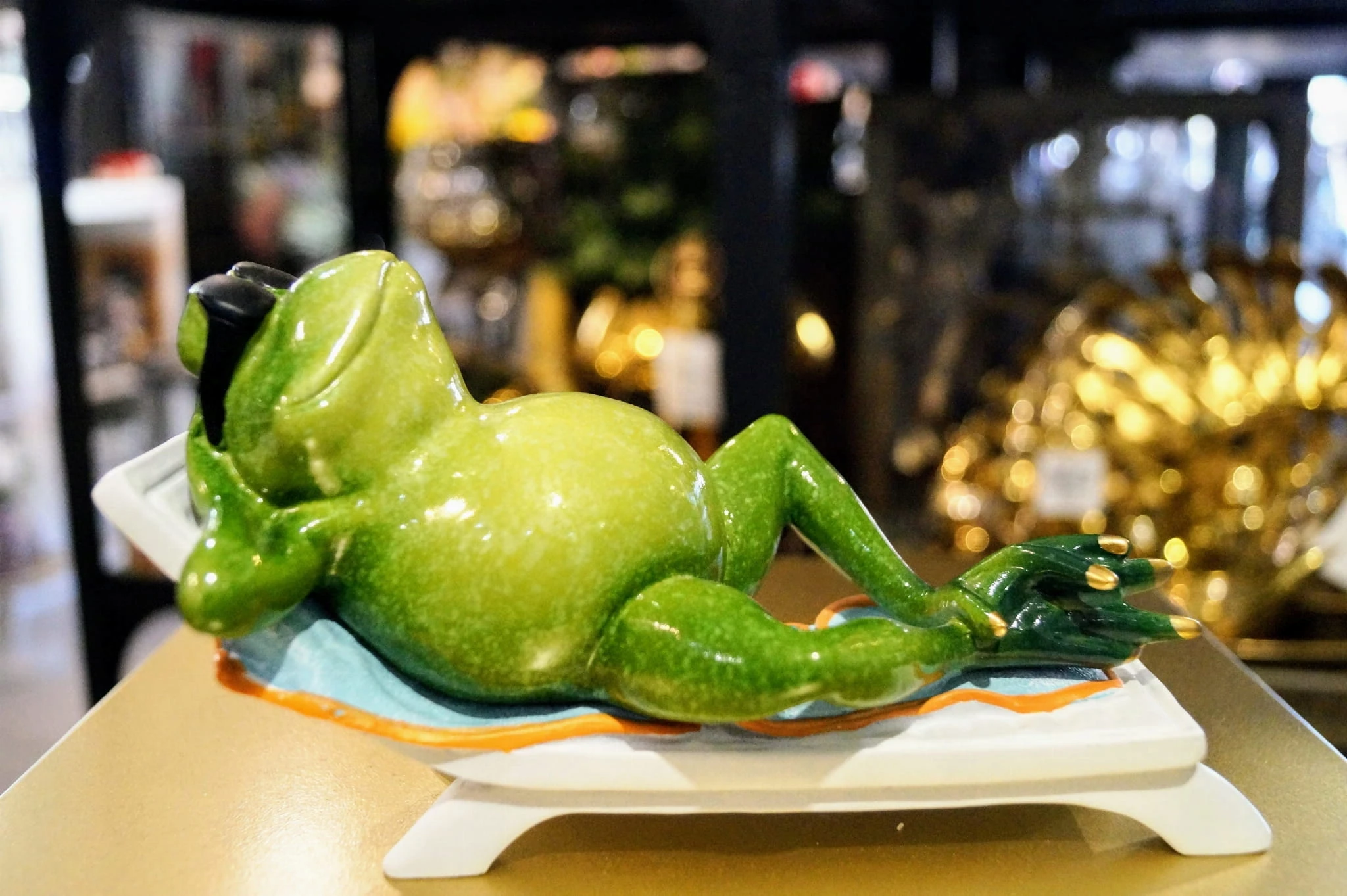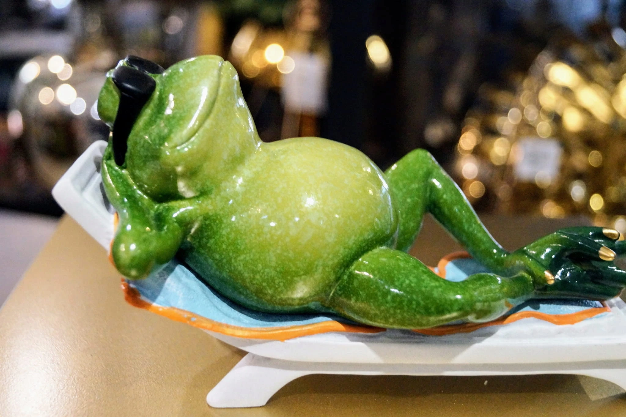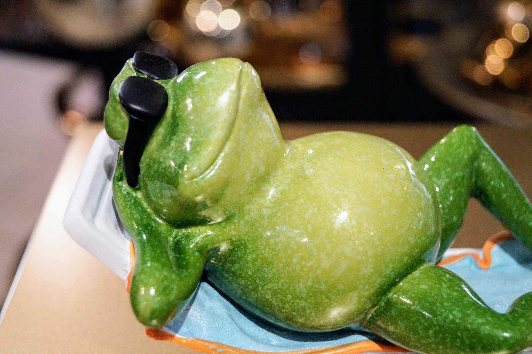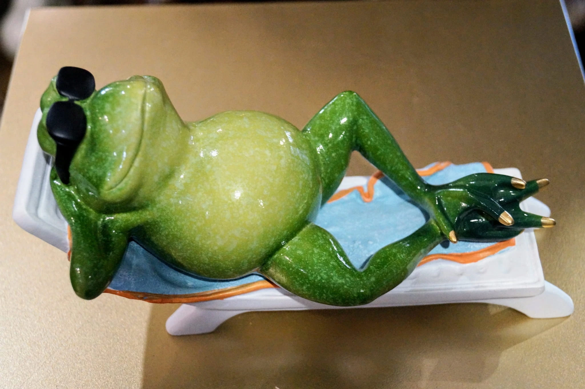 FIGURKA ŻABA NA LEŻAKU