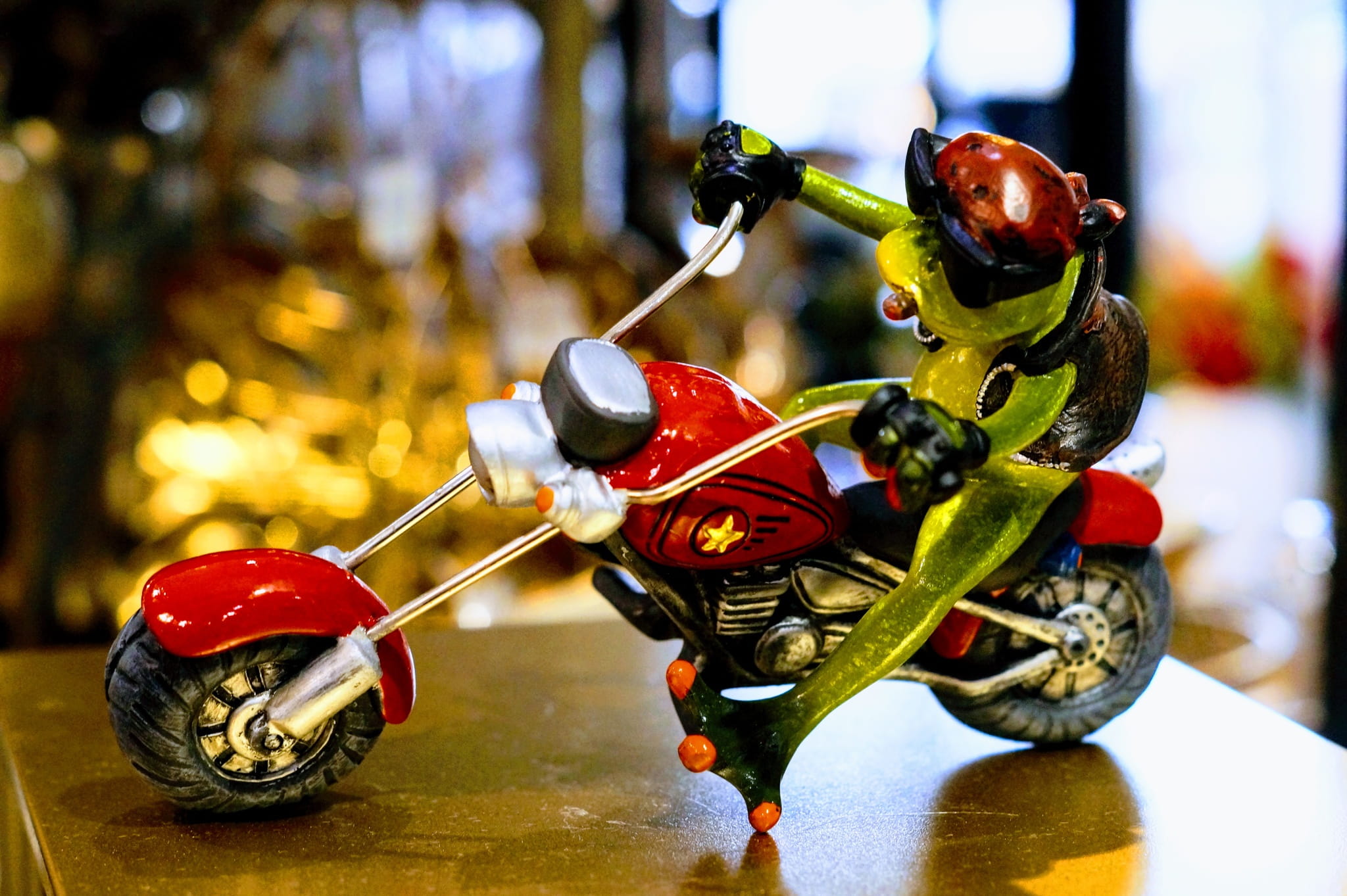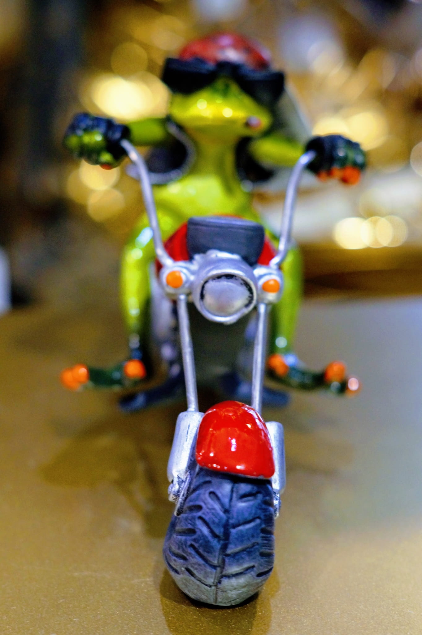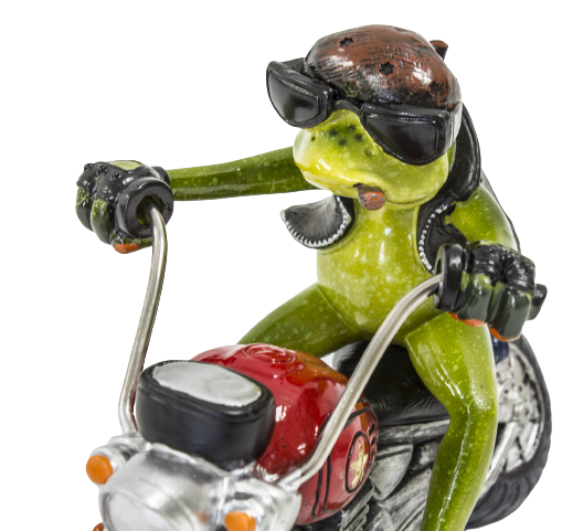 Świetnie wykonana żaba w motocyklu, będzie super pomysłem na prezent dla rodziny czy kogoś bliskiego.