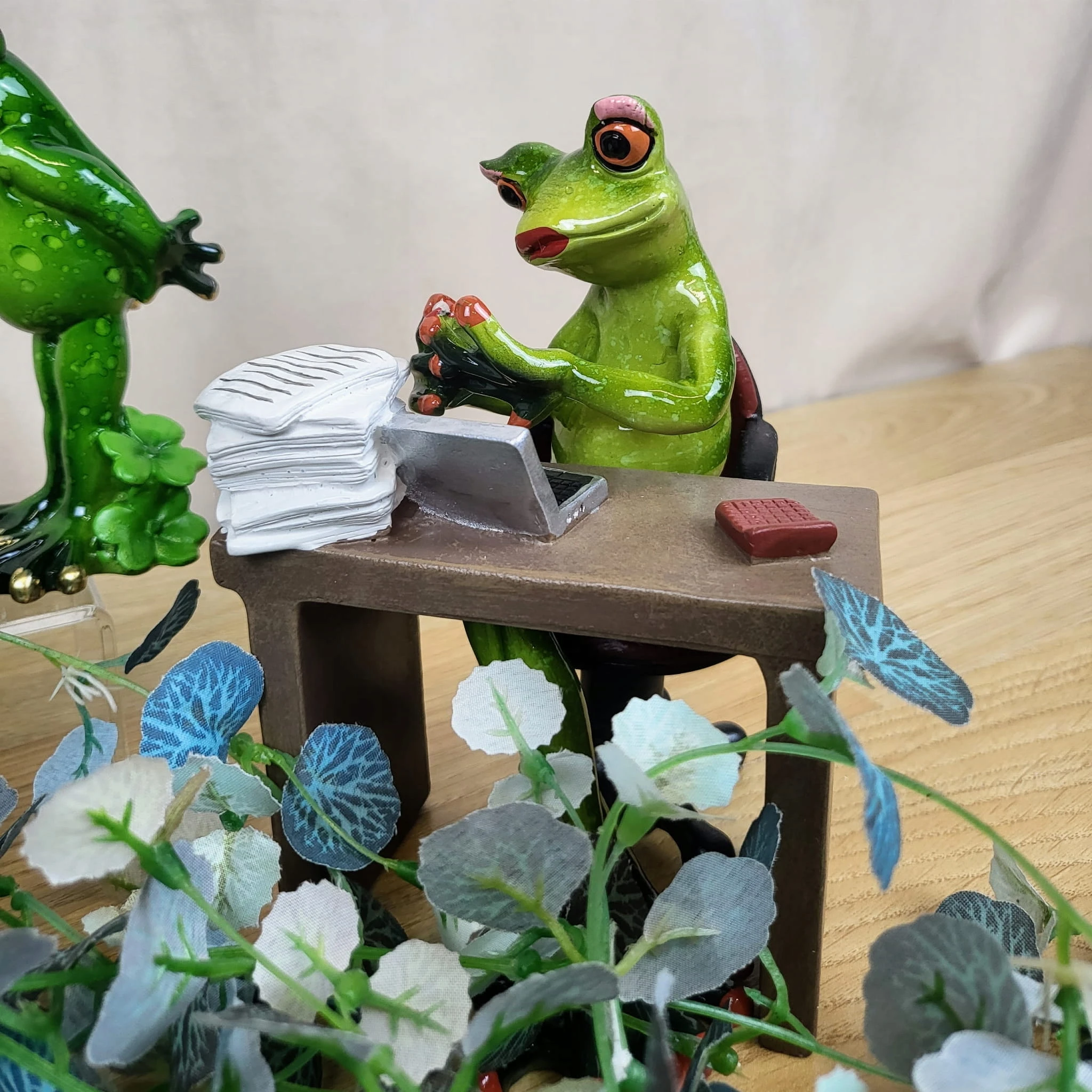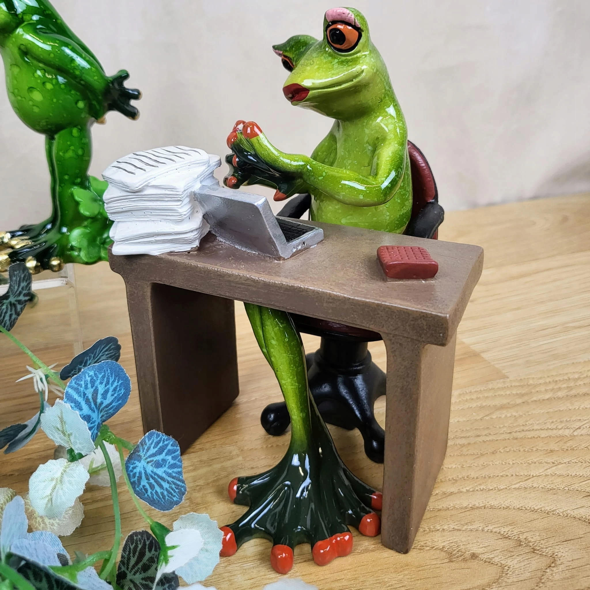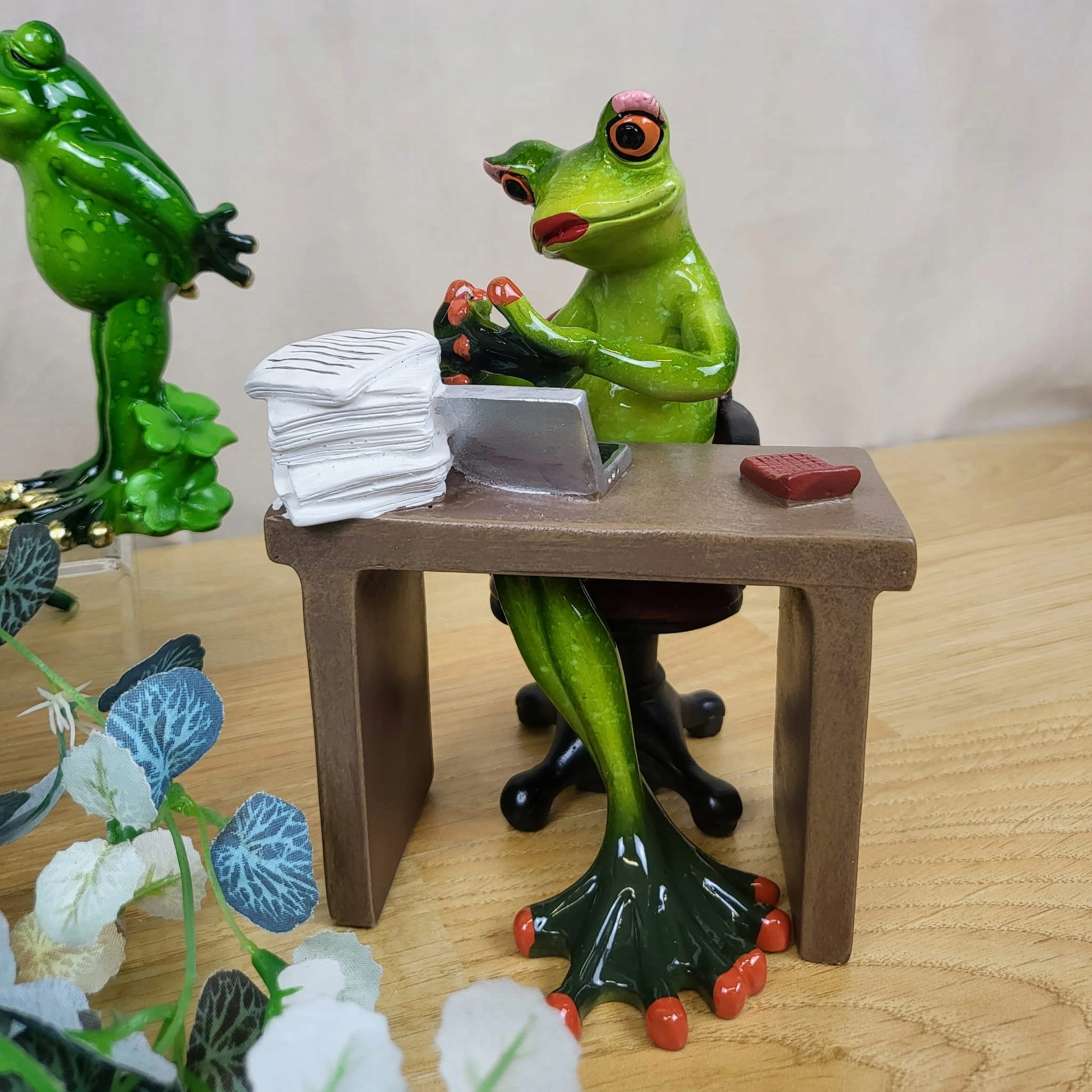 FIGURKA ŻABA PANI PRZY BIURKU