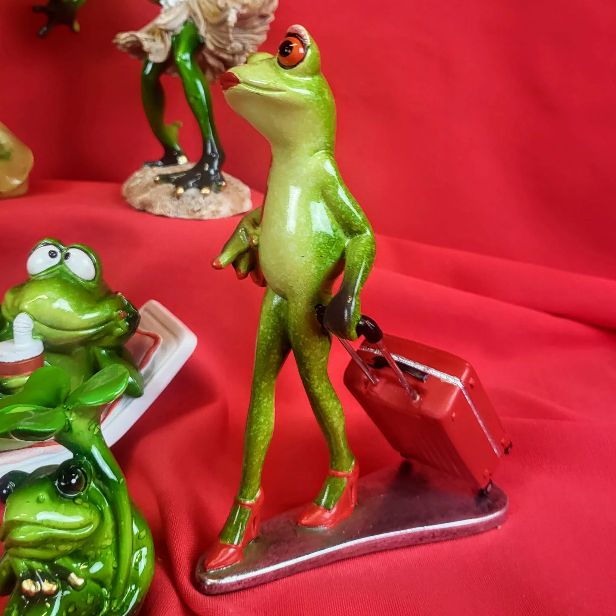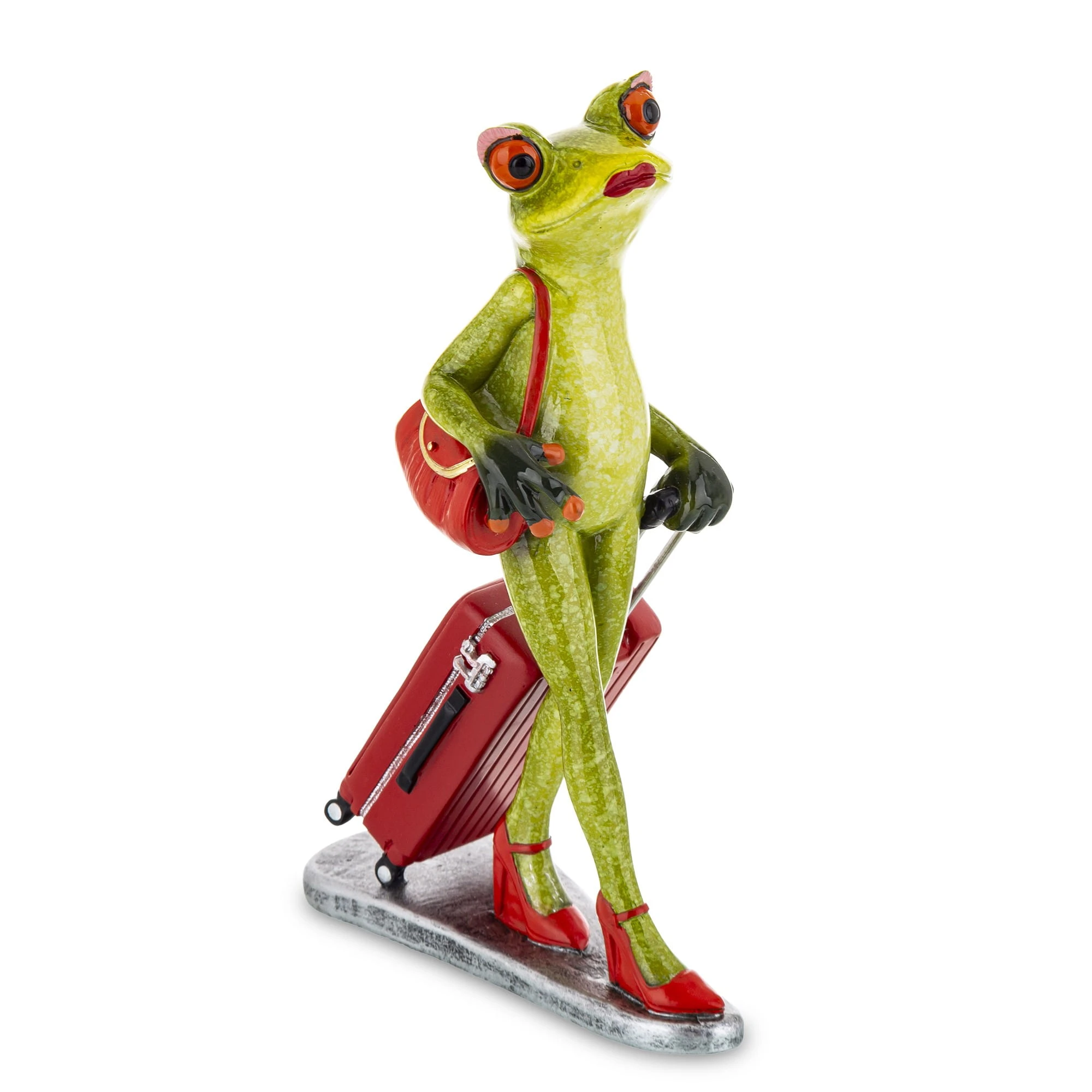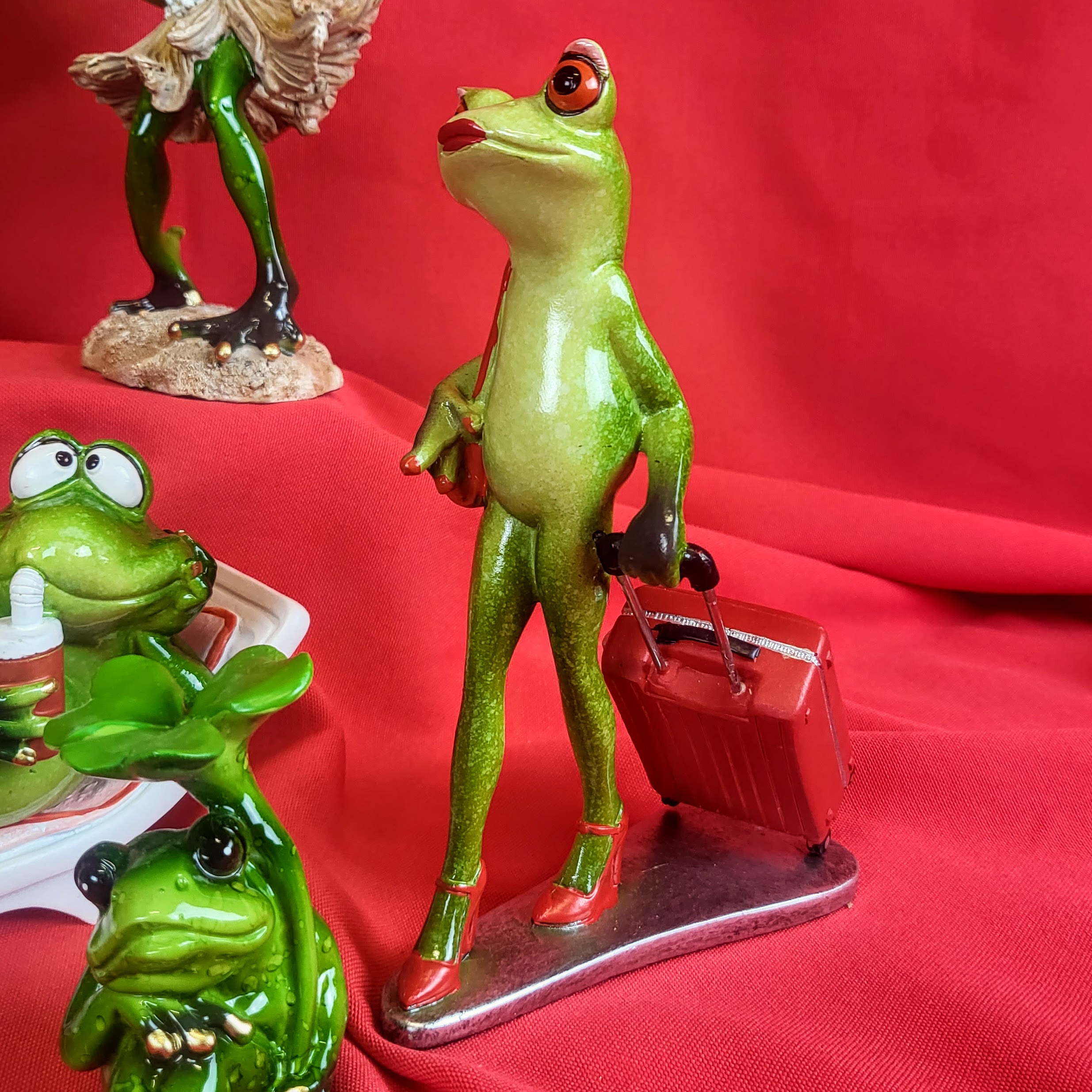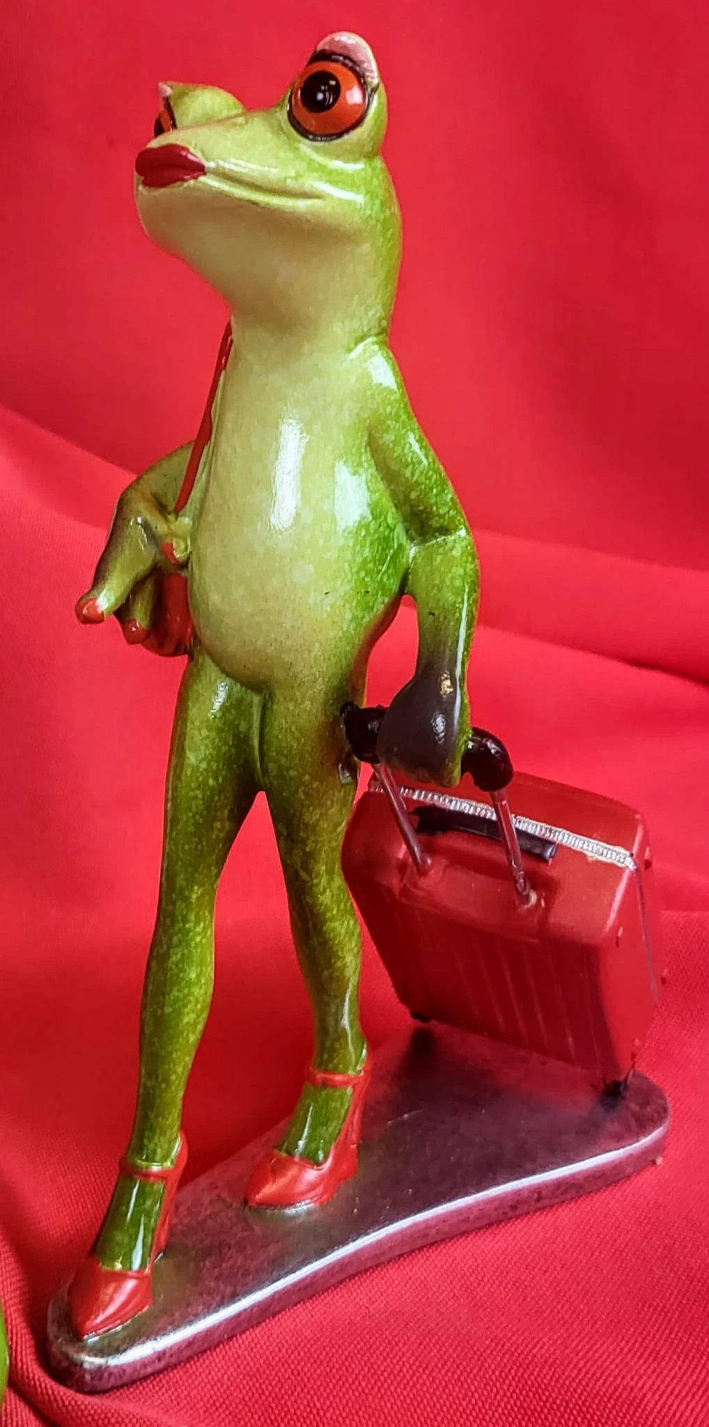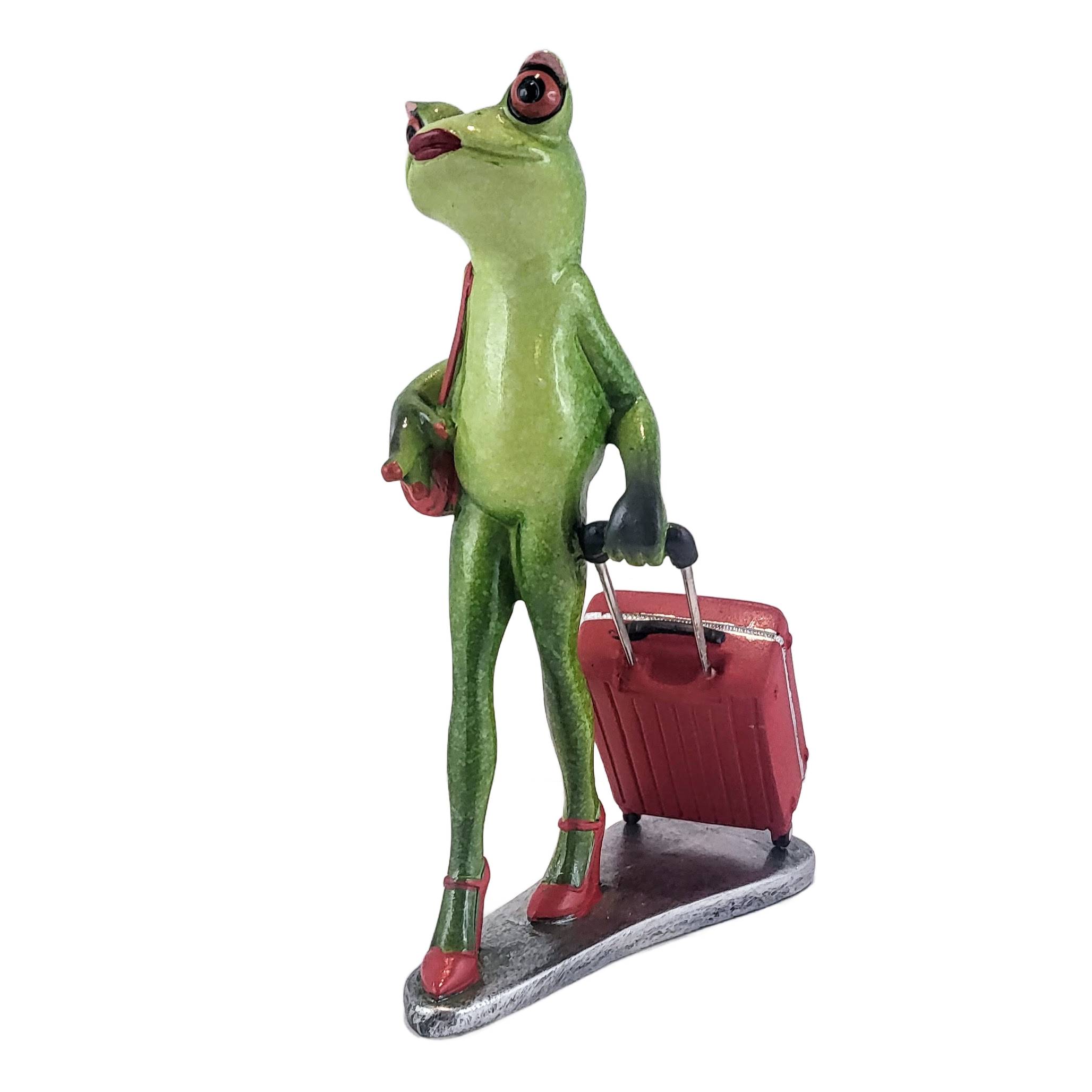 FIGURKA ŻABA Z WALIZKĄ PODRÓŻNICZKA 18CM