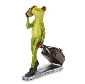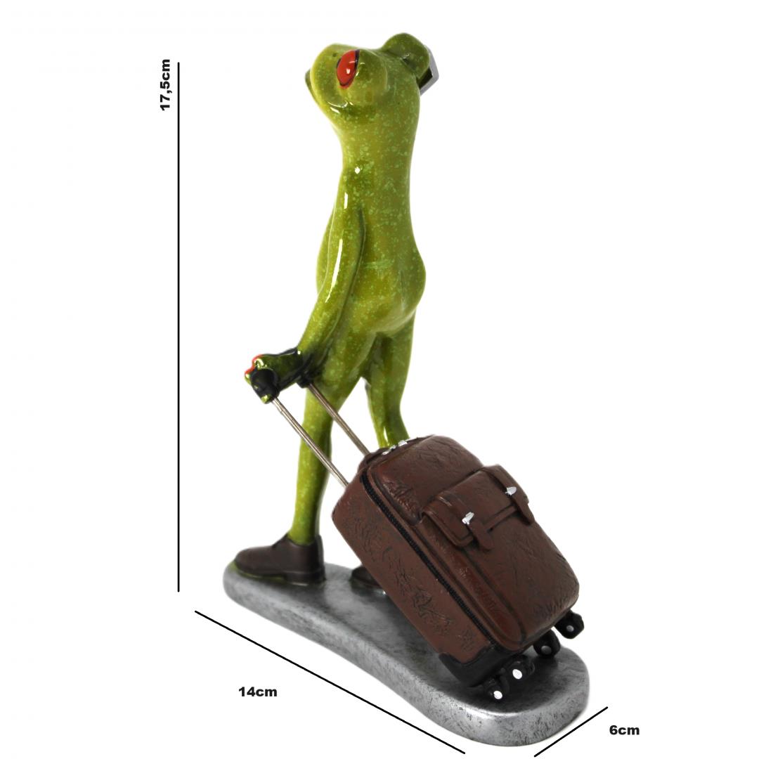 FIGURKA ŻABA Z WALIZKĄ PODRÓŻNIK 17,5X14X6CM
