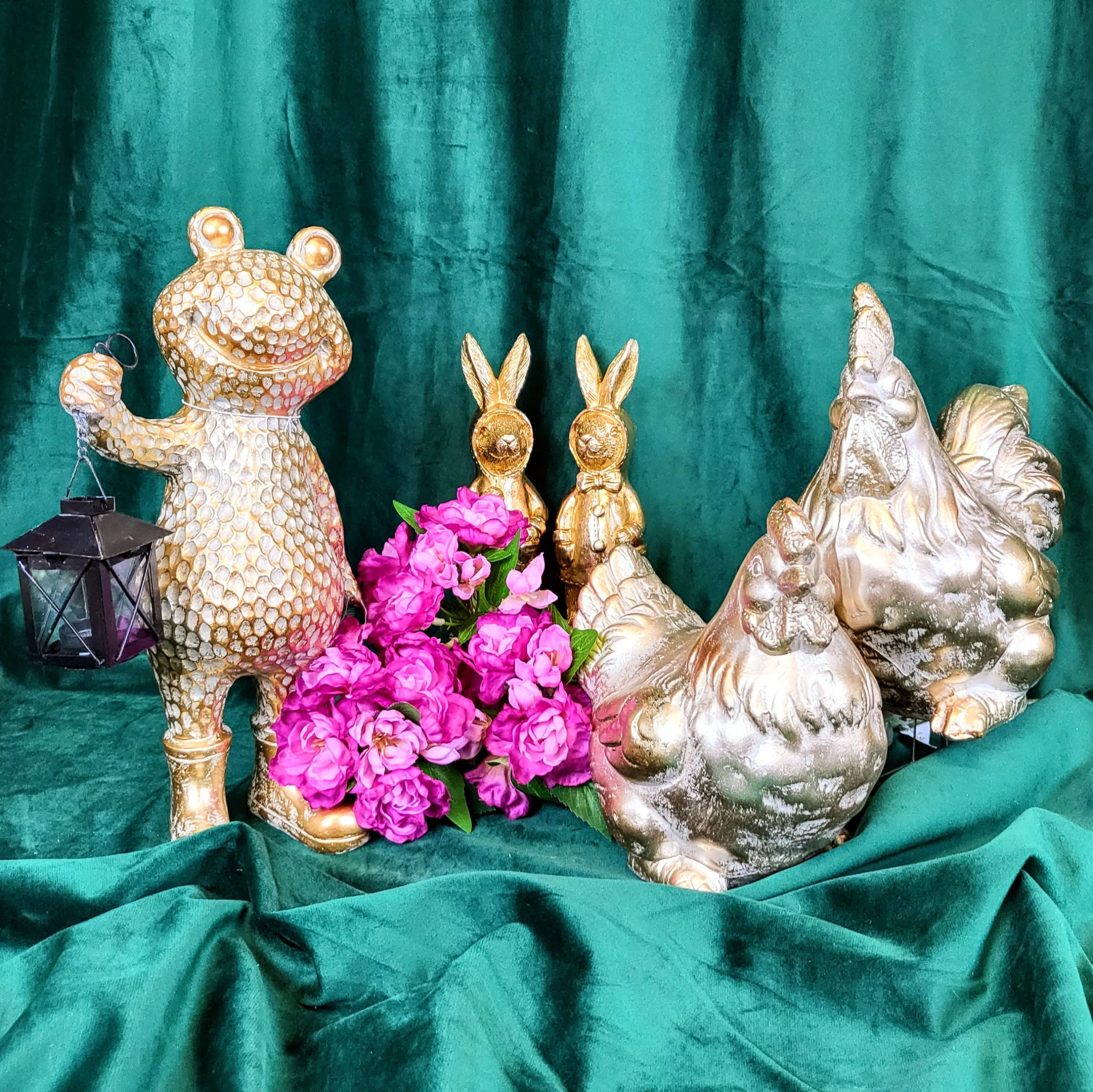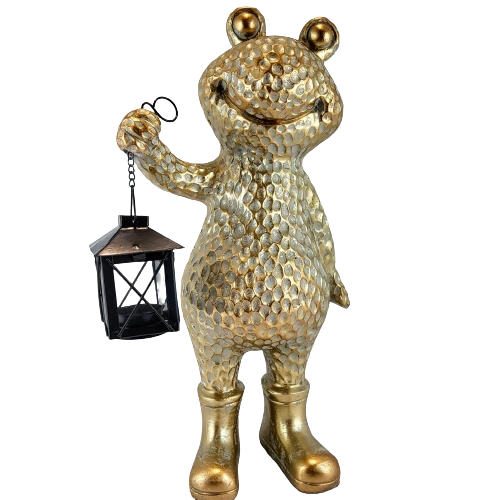 FIGURKA ŻABKA ŻABA Z LATARENKĄ ZŁOTA 32,5CM