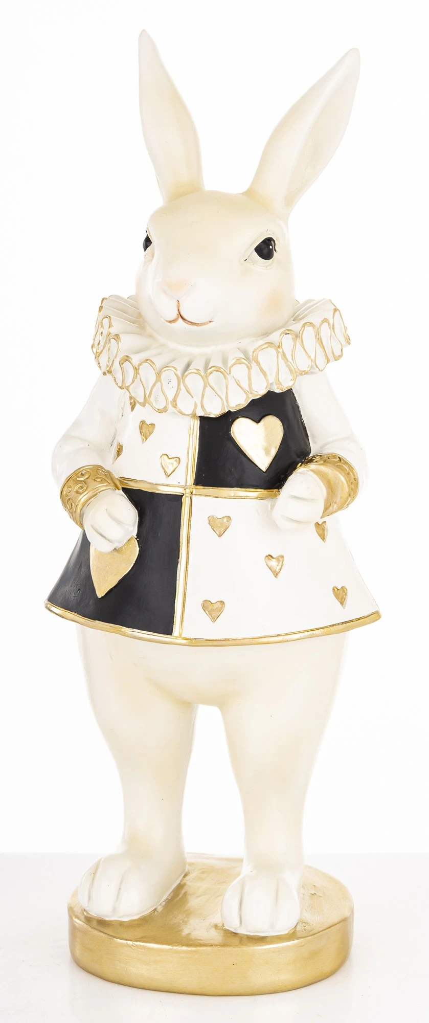 Zaproś do swojego wnętrza odrobinę magii i surrealizmu. Ta wyjątkowa figurka białego królika, ubrana w charakterystyczny kostium w biało-czarną szachownicę z motywem serc, przywodzi na myśl najpiękniejsze baśniowe opowieści. To dekoracja, która nie tylko zdobi, ale też intryguje, stając się wyrazistym punktem każdej aranżacji – od salonu po gabinet.