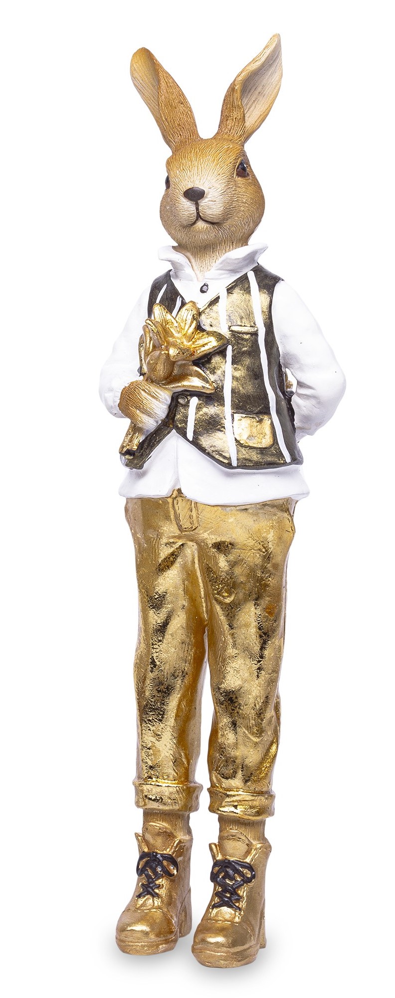 Figurka Pan Królik Elegancki Złoty Zając Dekoracja Wielkanocna 28x8cm
