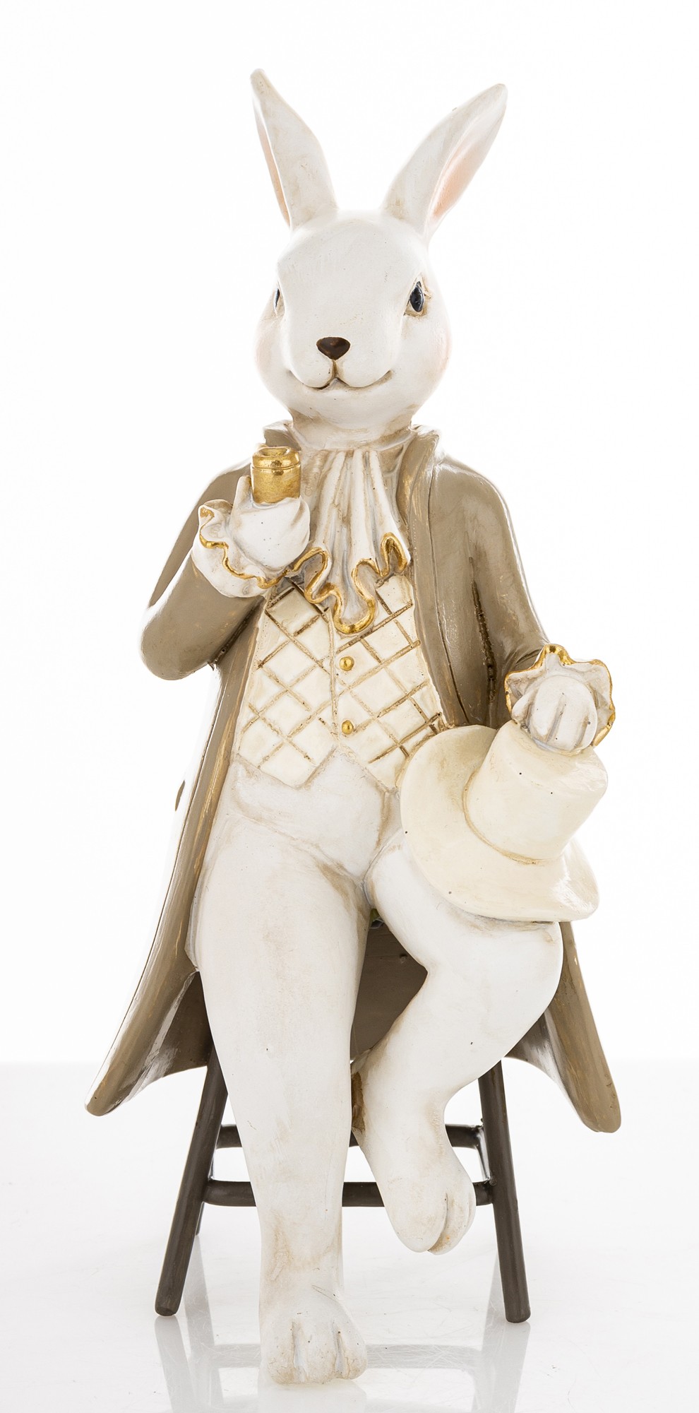 Figurka Zając Elegant z Fajką i Cylindrem 19x8,5cm