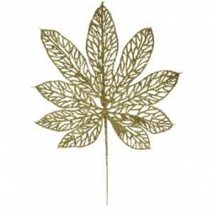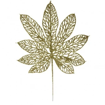 sztuczny liść kasztanowca w kolorze złotym, często wykorzystywany jako dekoracja świąteczna lub element kompozycji florystycznych.