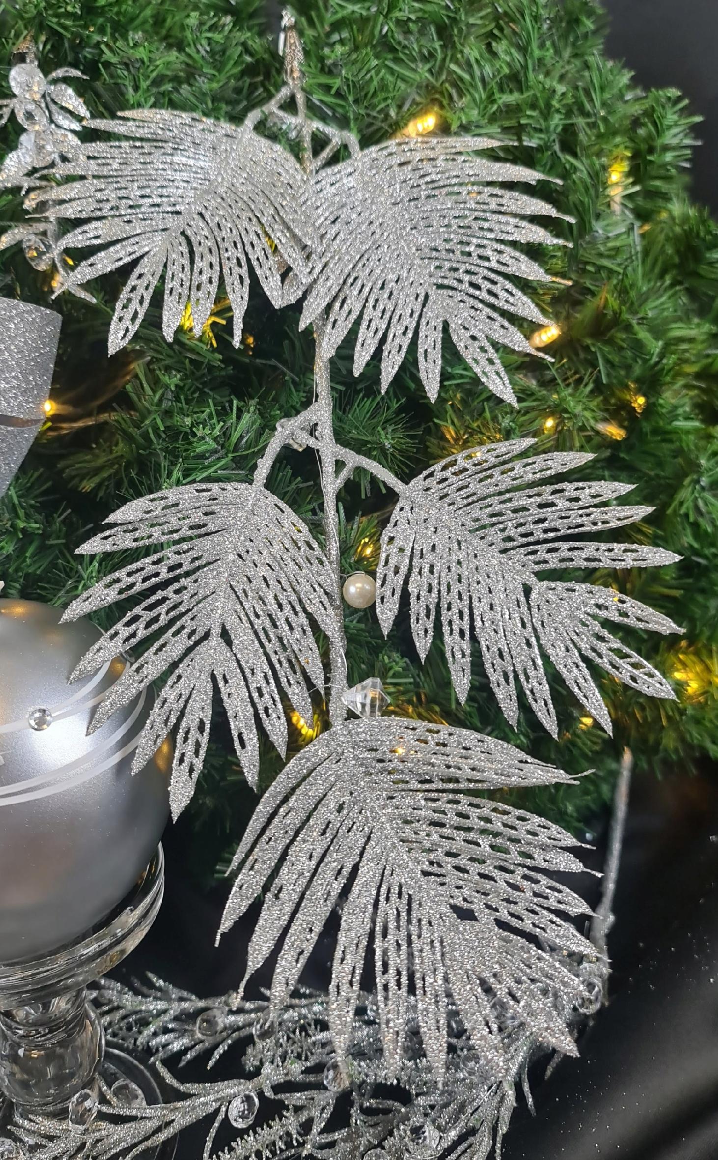 Błyszczące elementy i brokat nadają gałązce wyjątkowego, magicznego, świątecznego charakteru. Będzie pięknie mienić się wśród światełek na choince i nie tylko