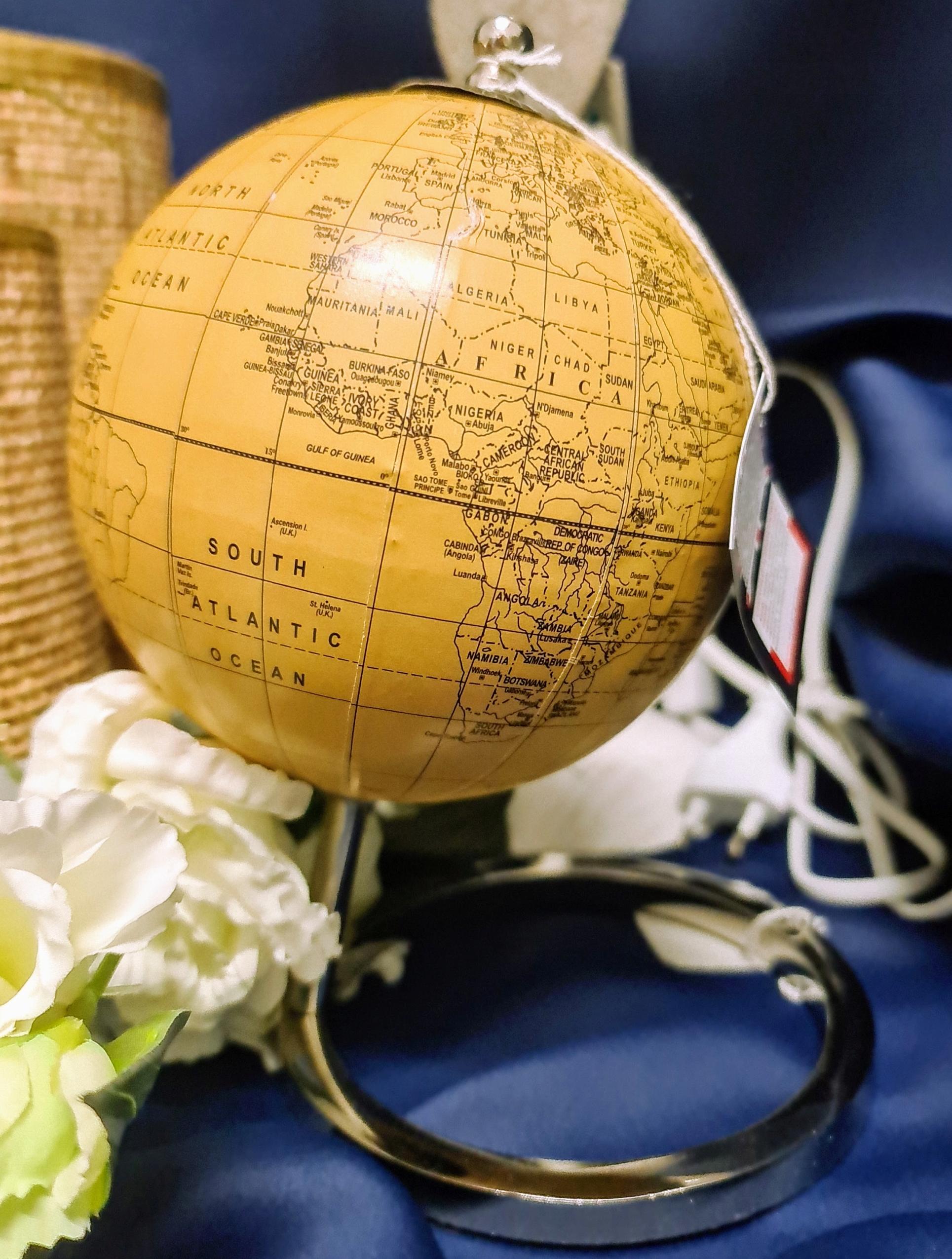 Ten stylowy globus będzie idealnym prezentem dla każdej osoby marzącej o dalekich podróżach i lubiącej piękne oraz oryginalne przedmioty. Będzie także gustowną ozdobą gabinetu czy biura.