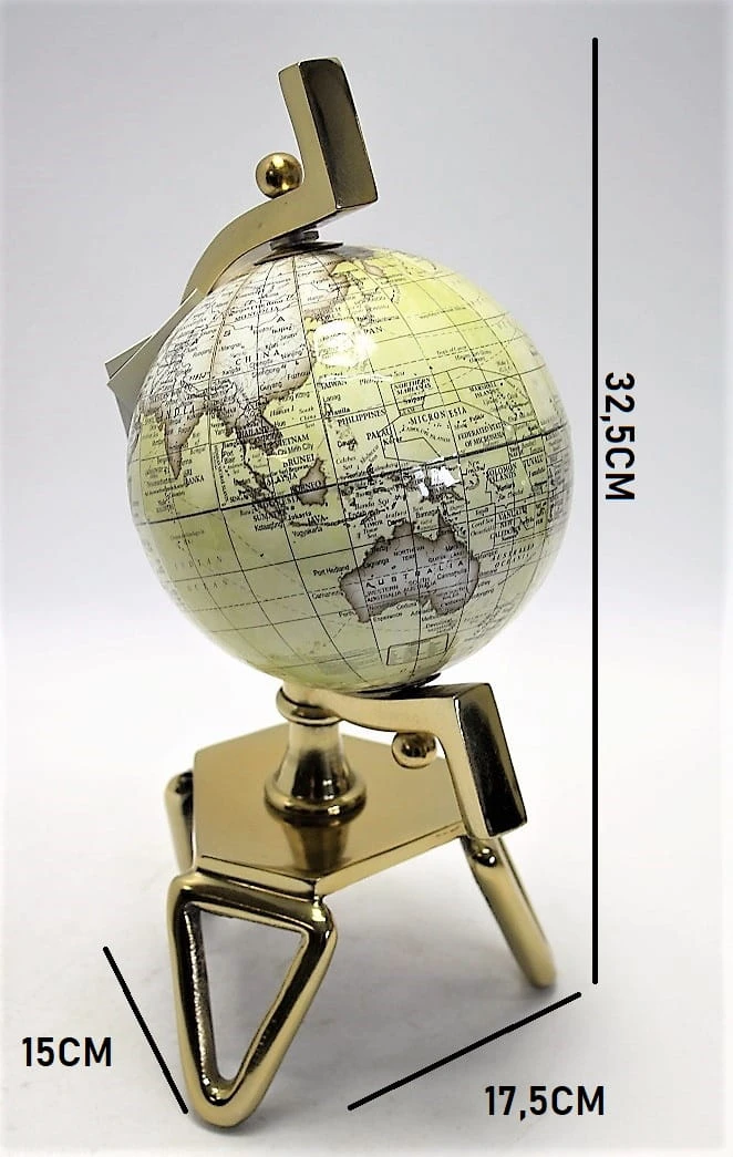 Ten stylowy globus będzie idealnym prezentem dla każdej osoby marzącej o dalekich podróżach i lubiącej piękne oraz oryginalne przedmioty. Będzie także gustowną ozdobą gabinetu czy biura.