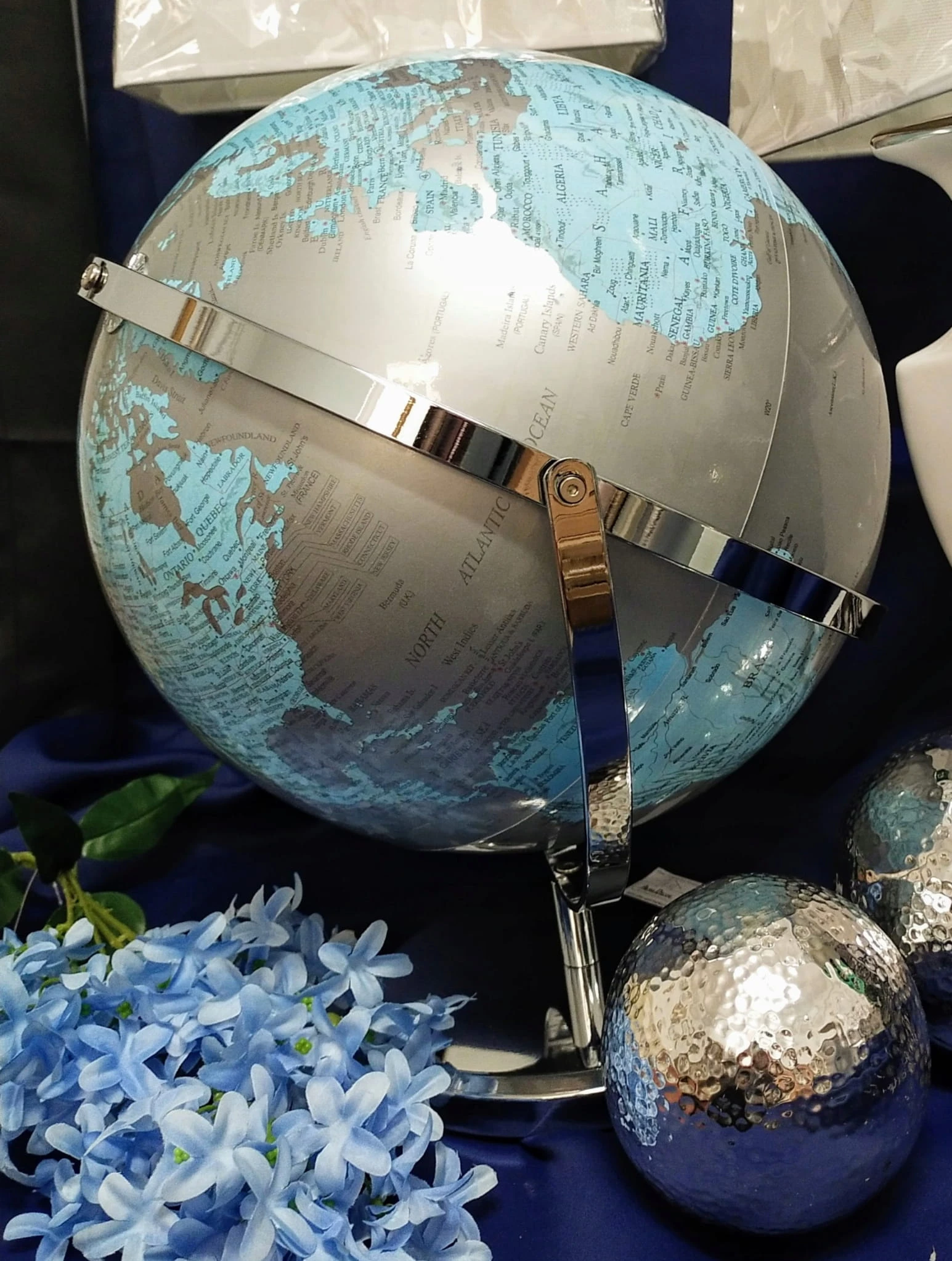 GLOBUS SREBRNO-NIEBIESKI DUŻY H32cm