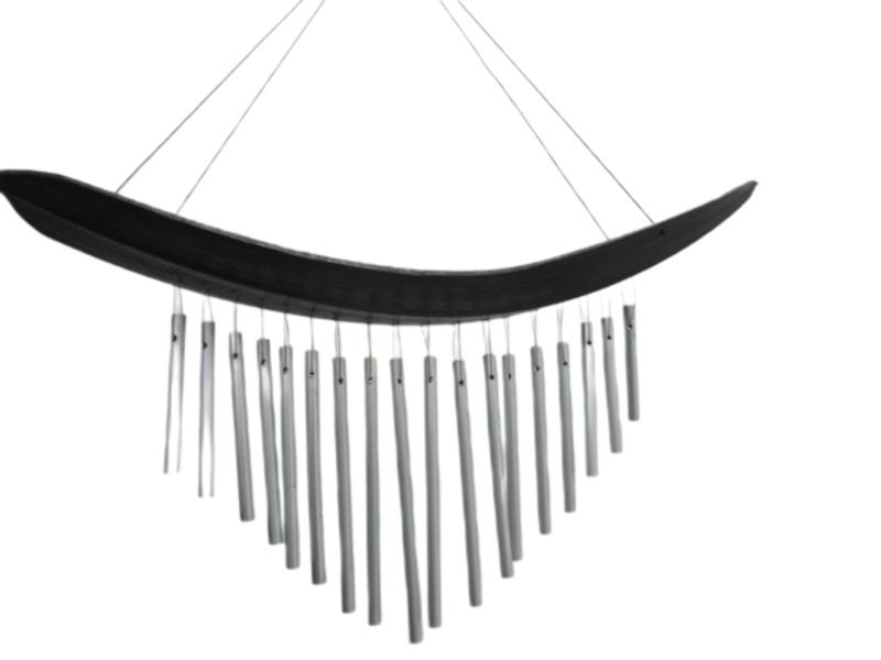Gong w kształcie łódki, z metalowymi, dźwięcznymi rurkami.