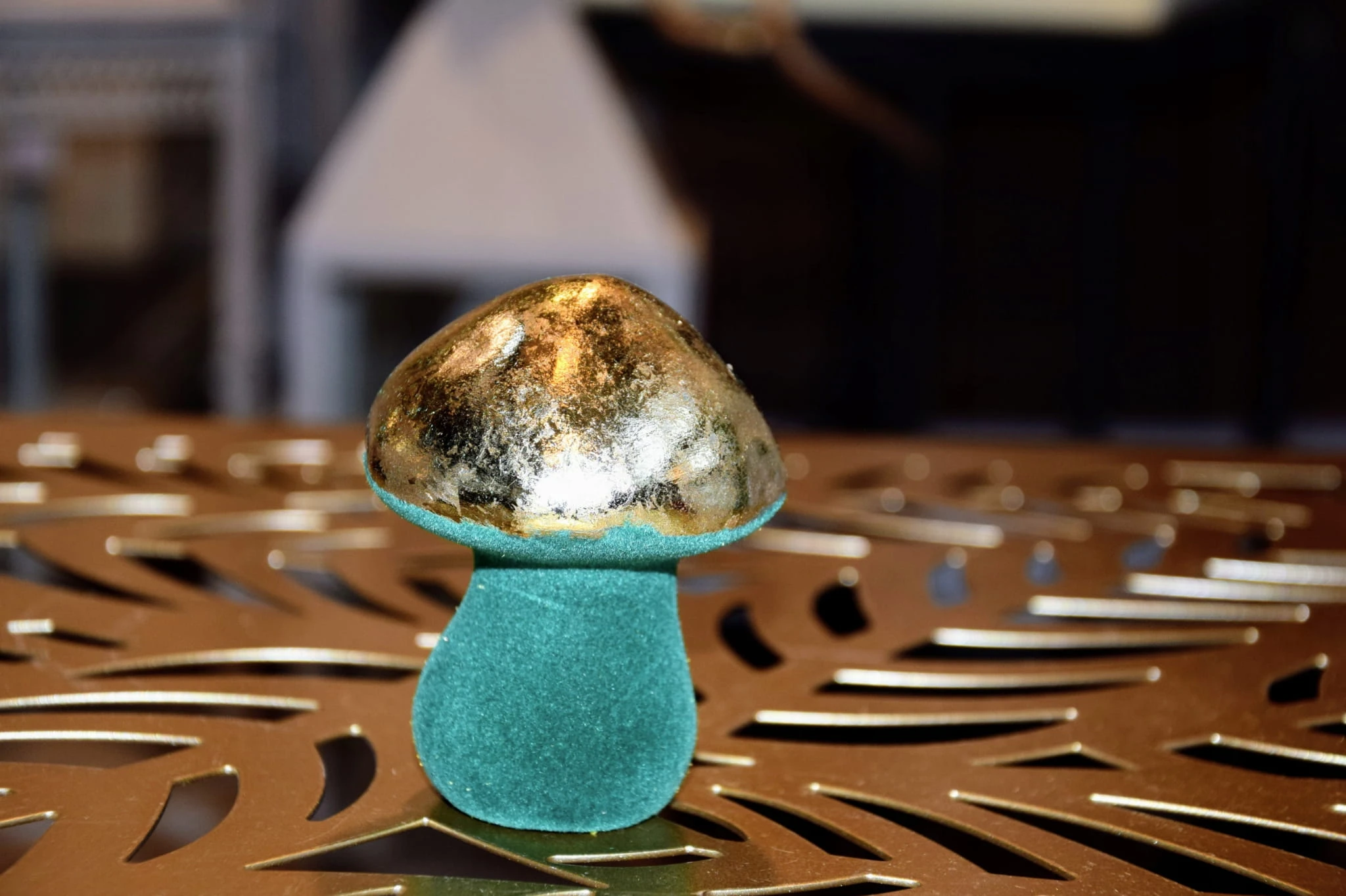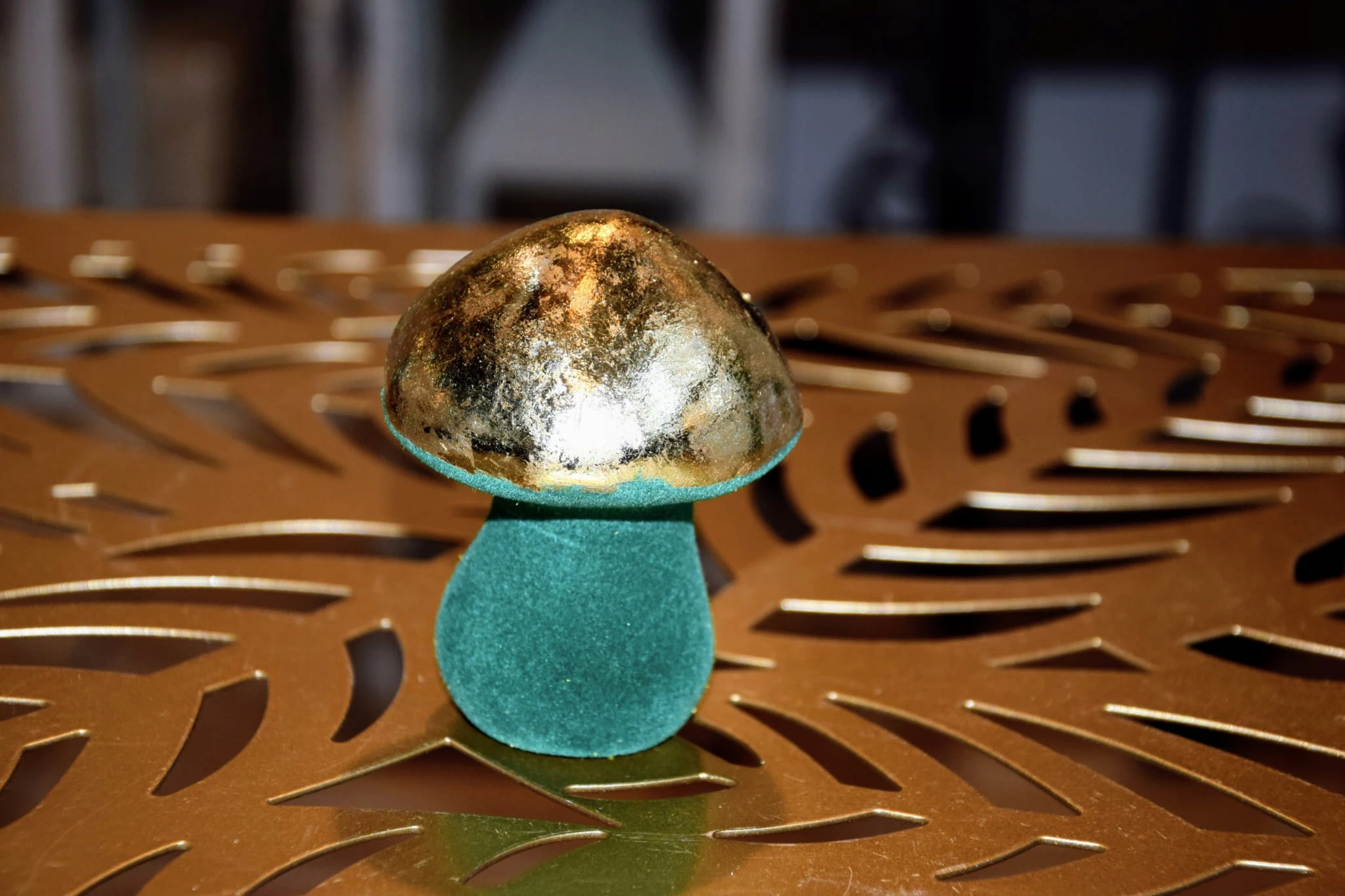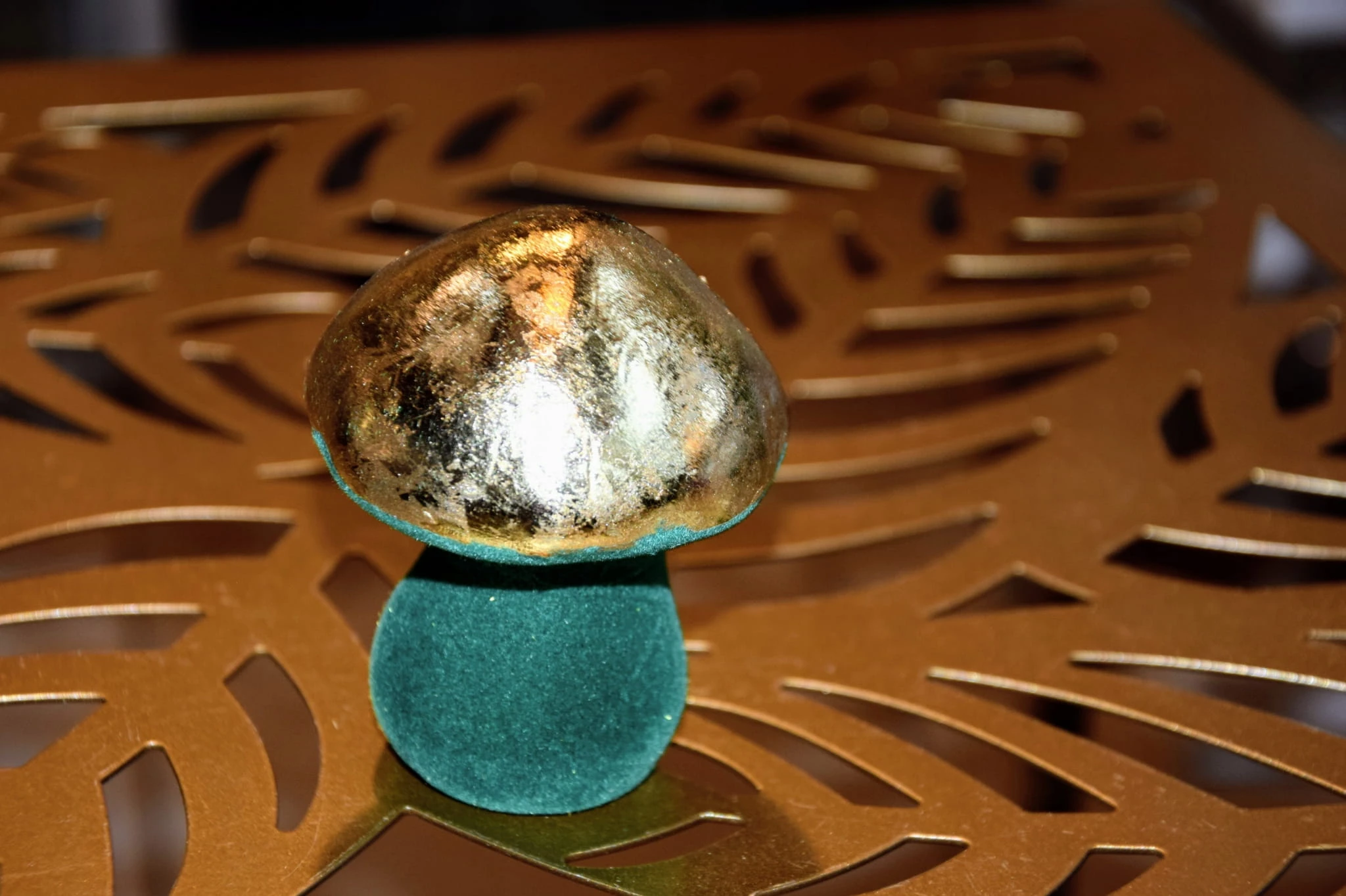 GRZYBEK ZIELONY WELUROWY ZE ZŁOTYM KAPELUSZEM 6,5x6,5x8,5