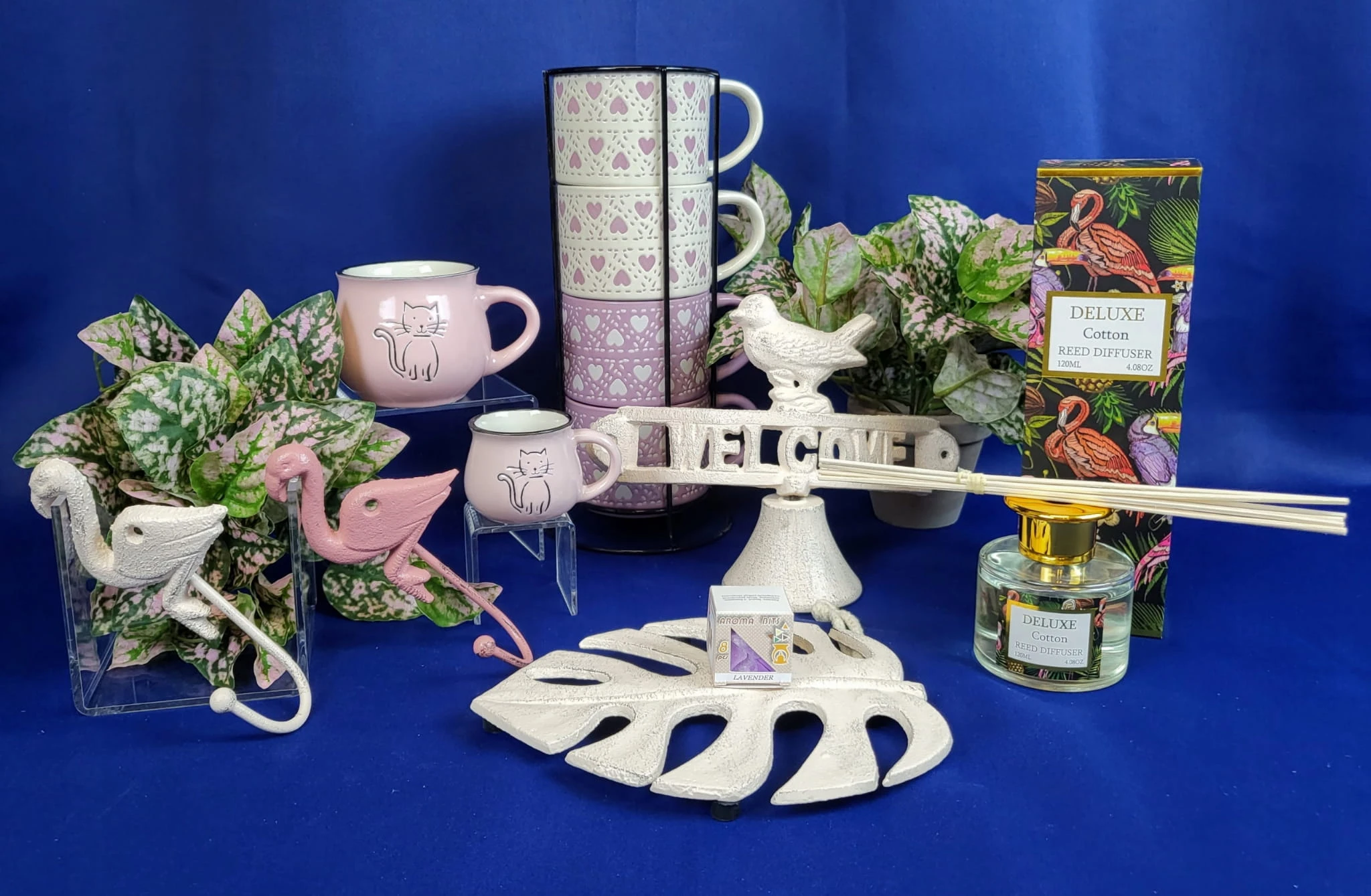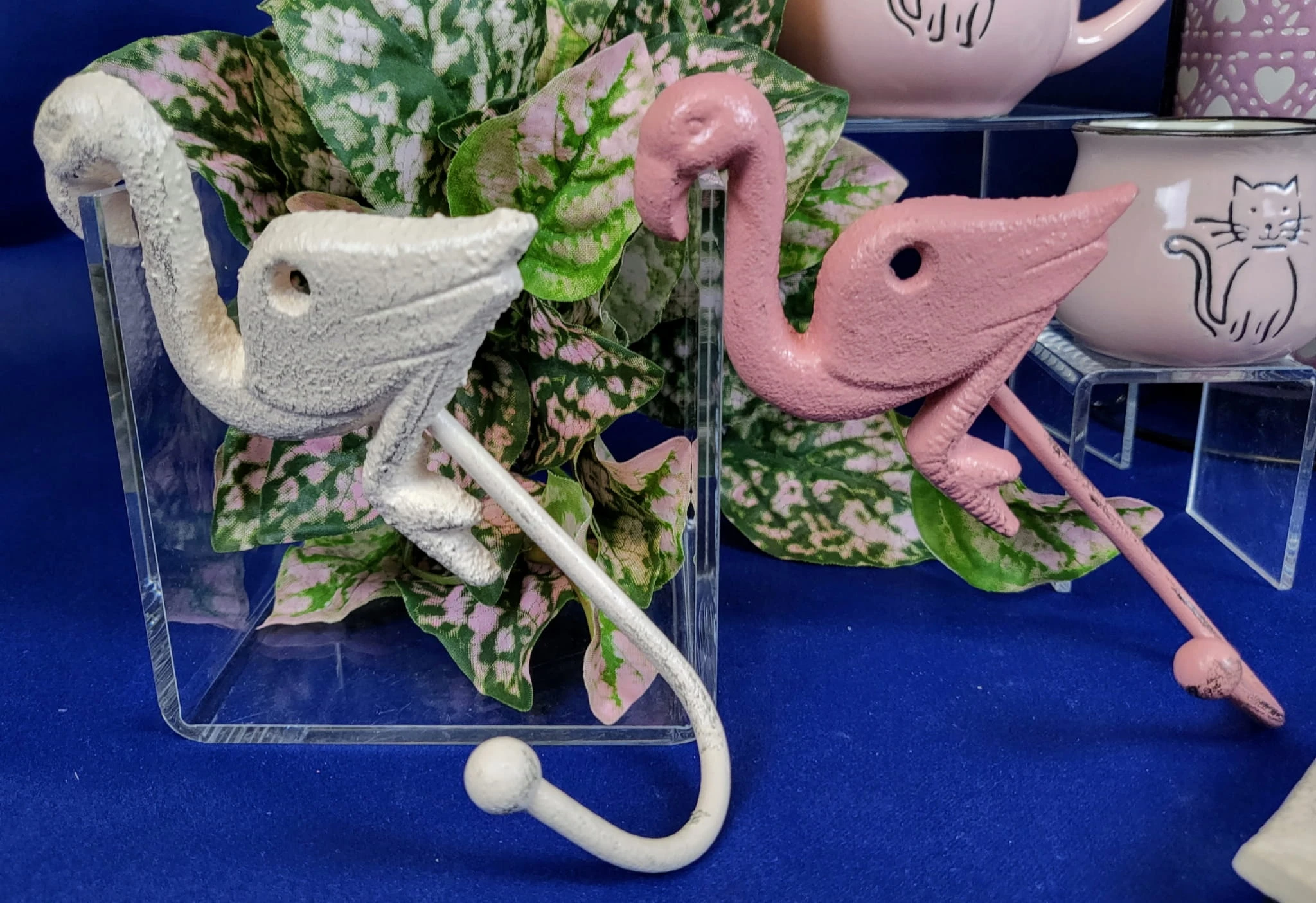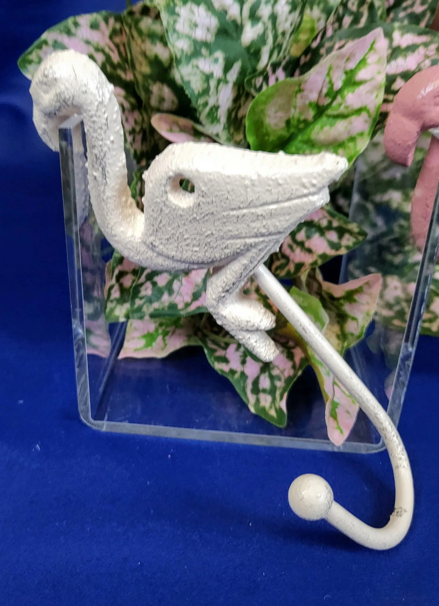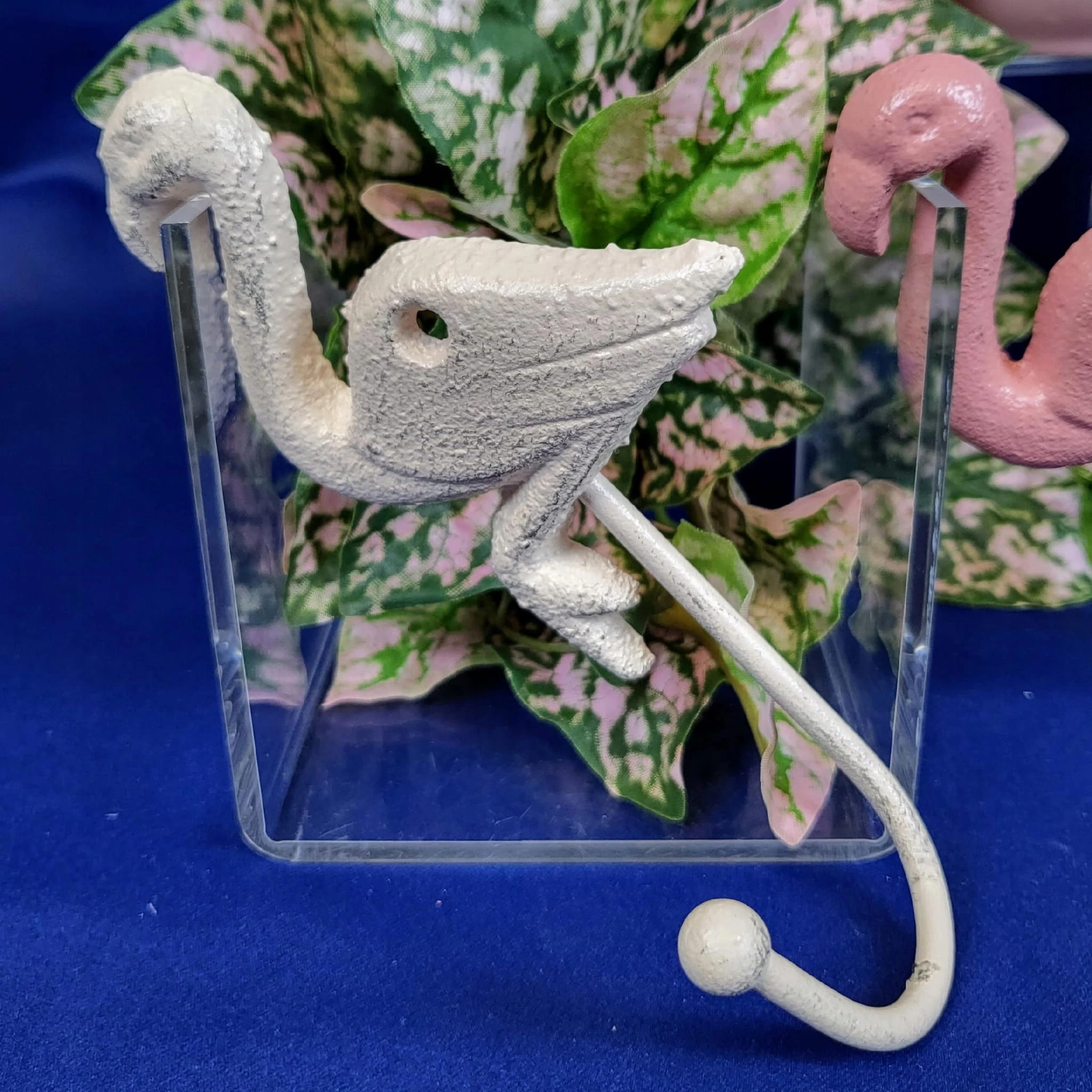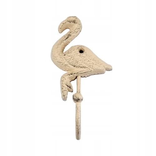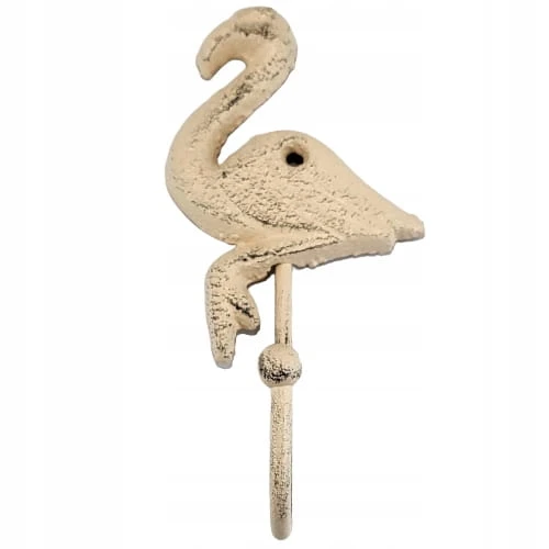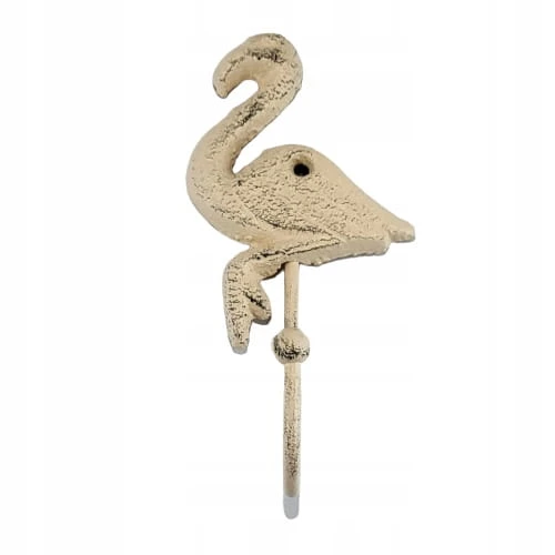Efektowny, żeliwny haczyk w kształcie kremowego flaminga.