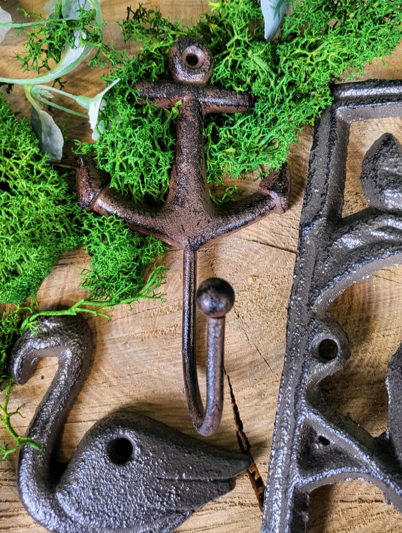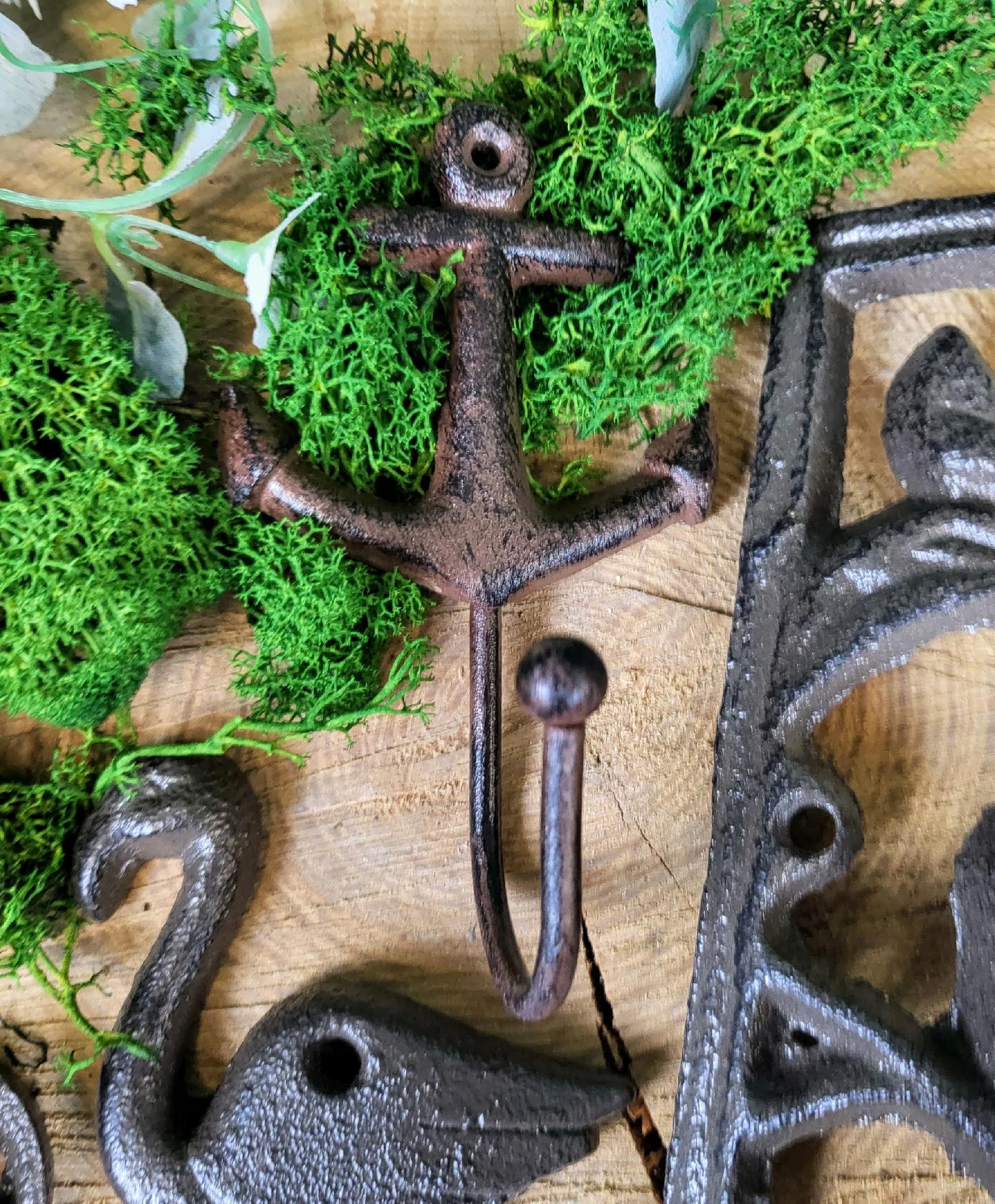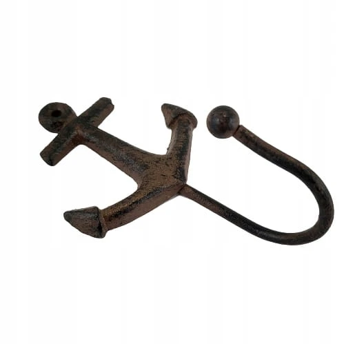 Efektowny, żeliwny haczyk w kształcie kotwicy.