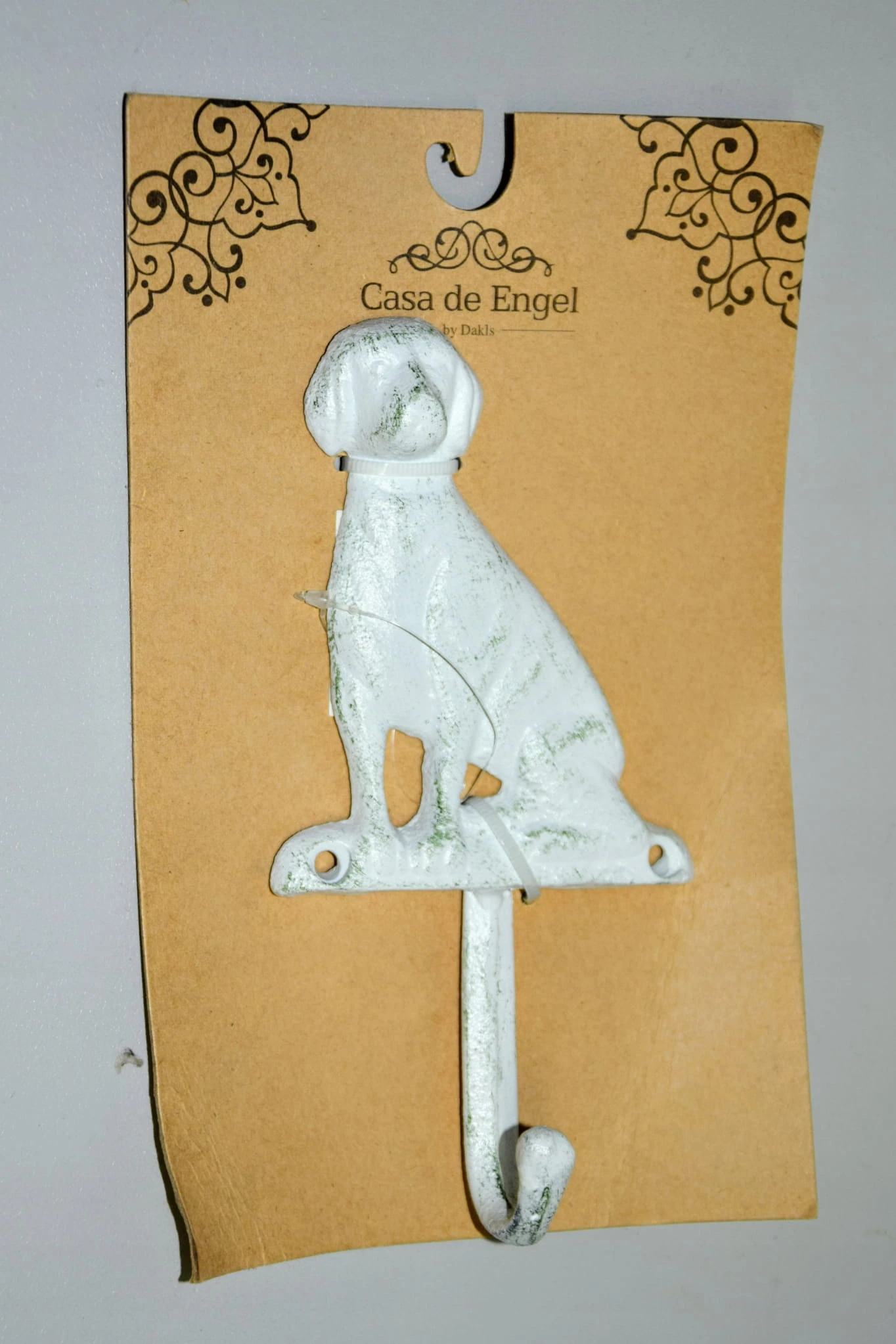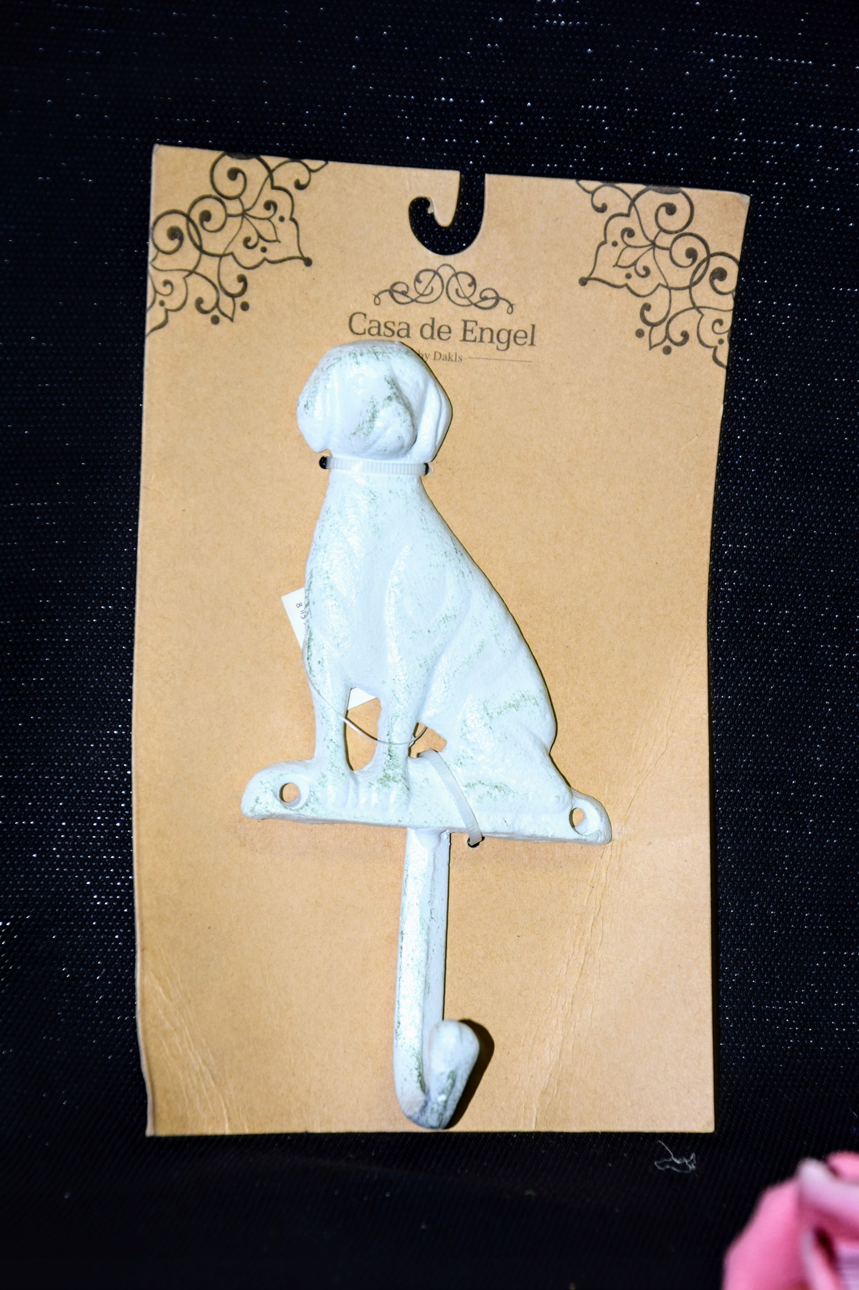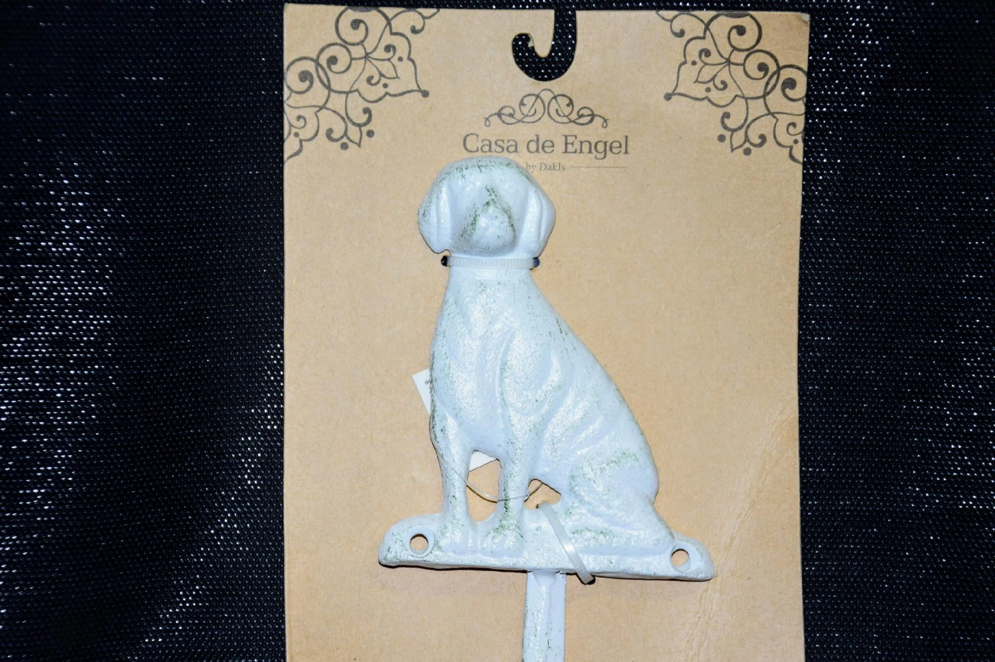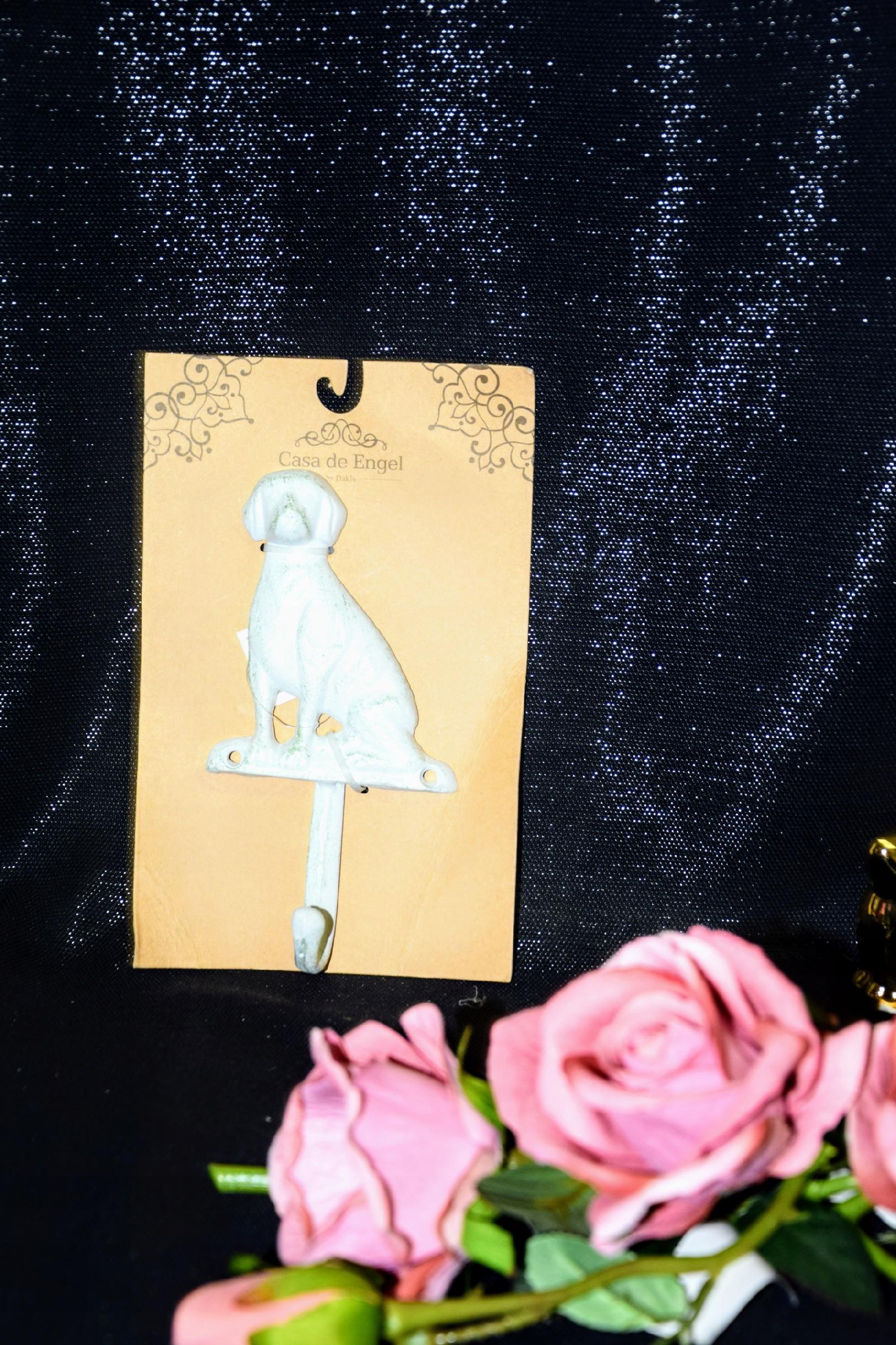 Efektowny, żeliwny haczyk w kształcie psa.