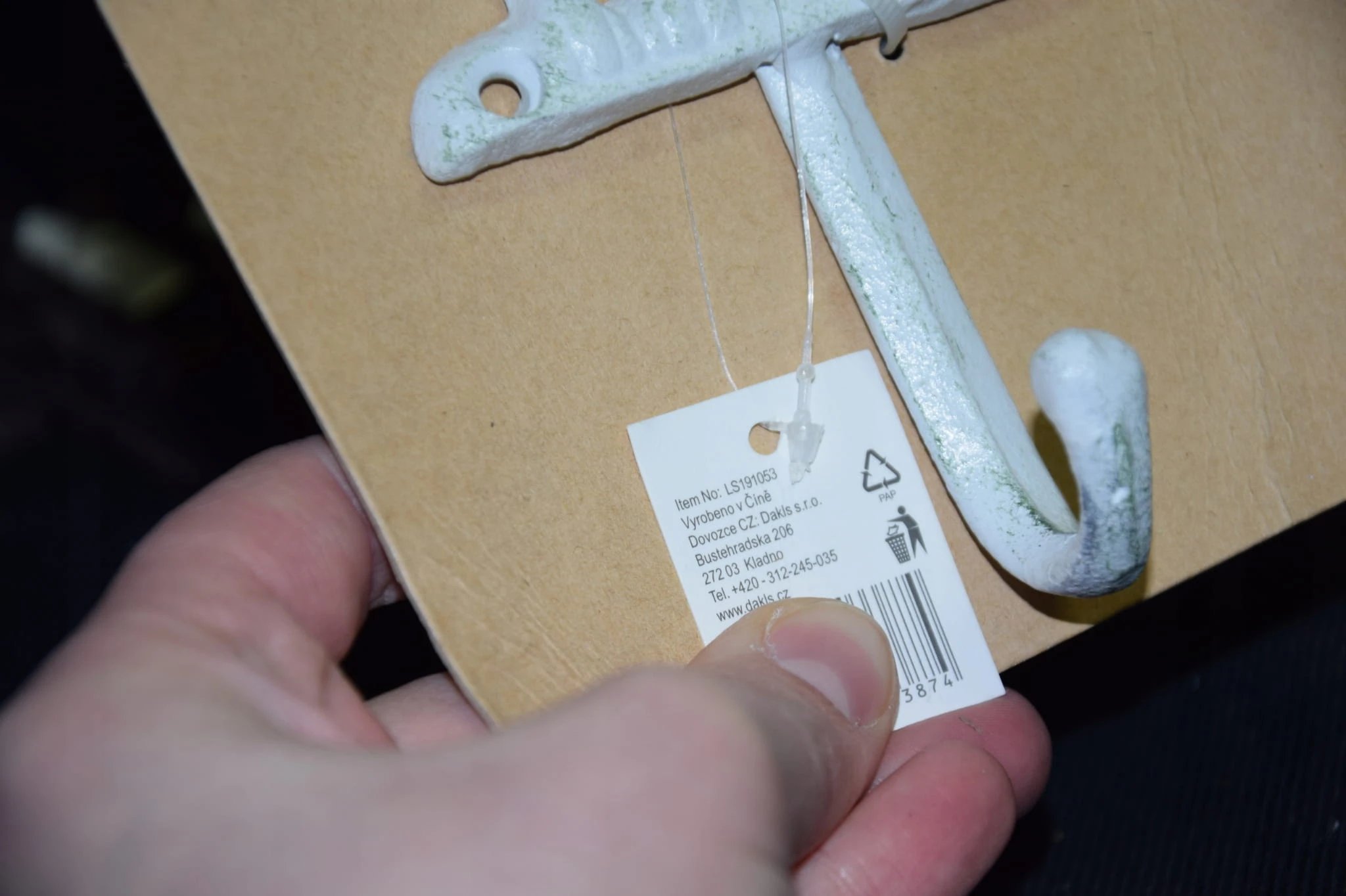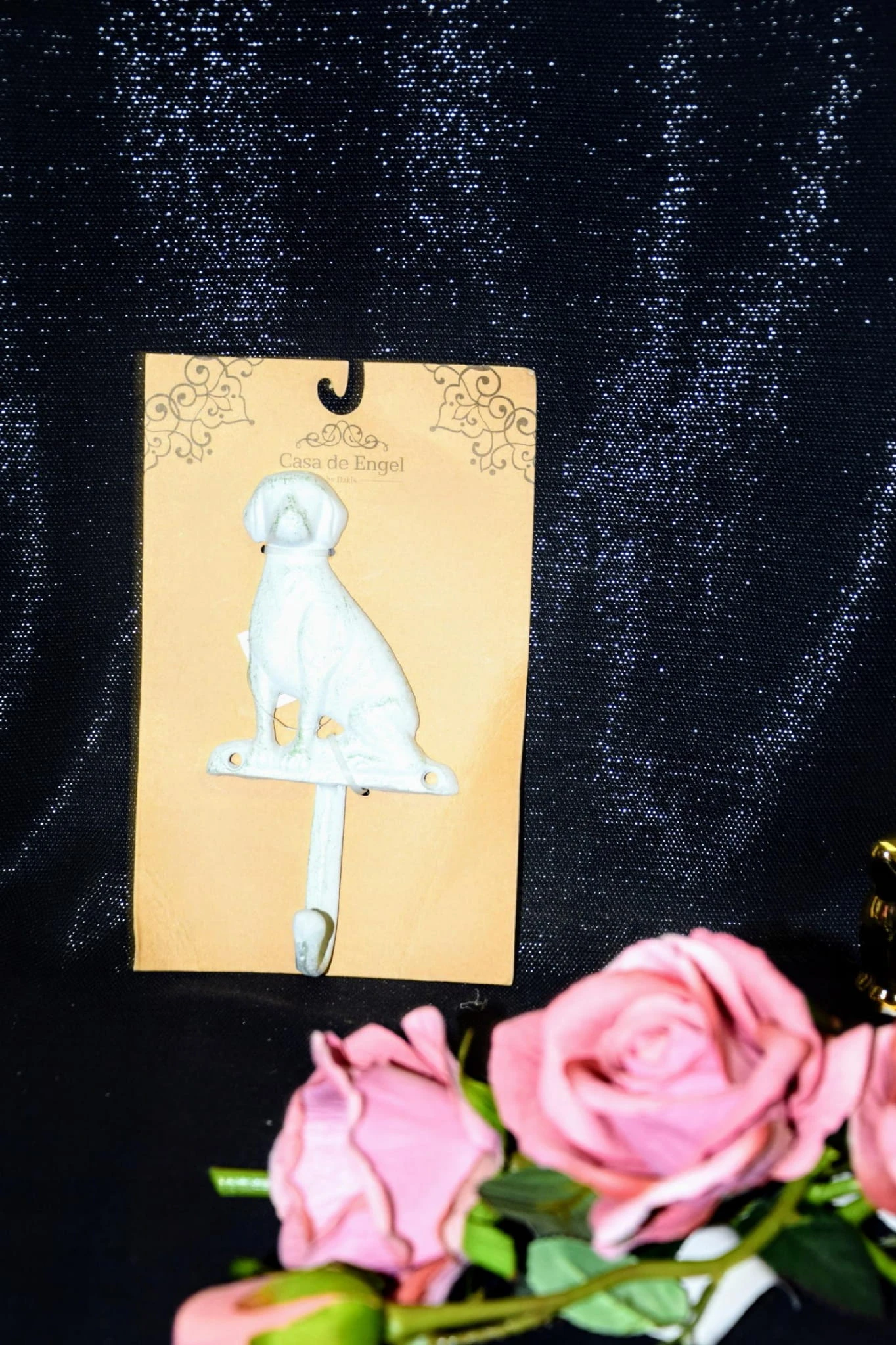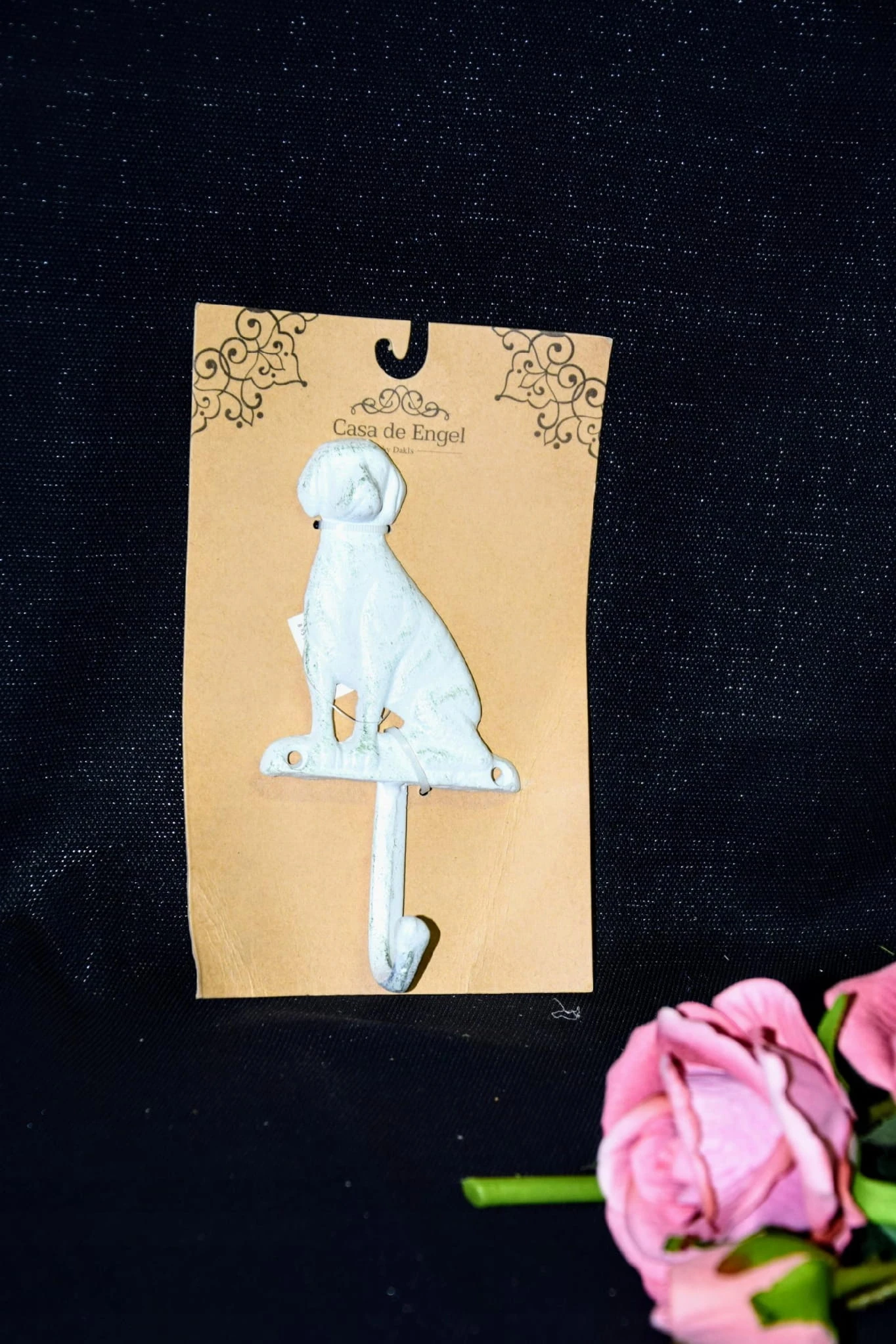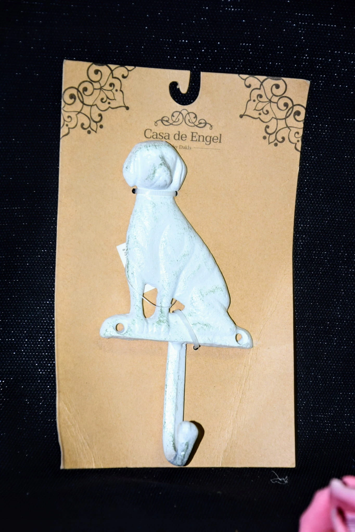 Efektowny, żeliwny haczyk w kształcie psa.