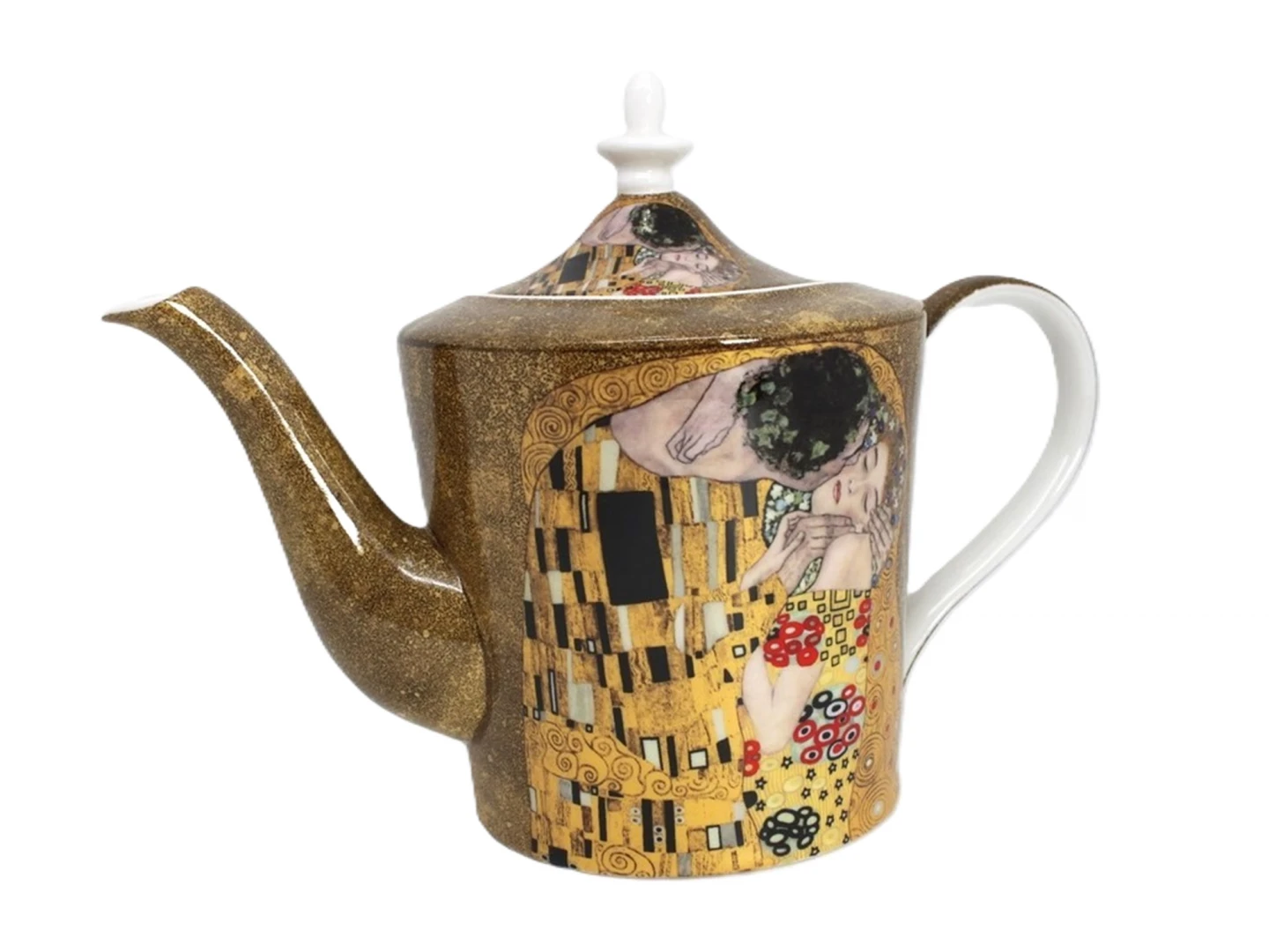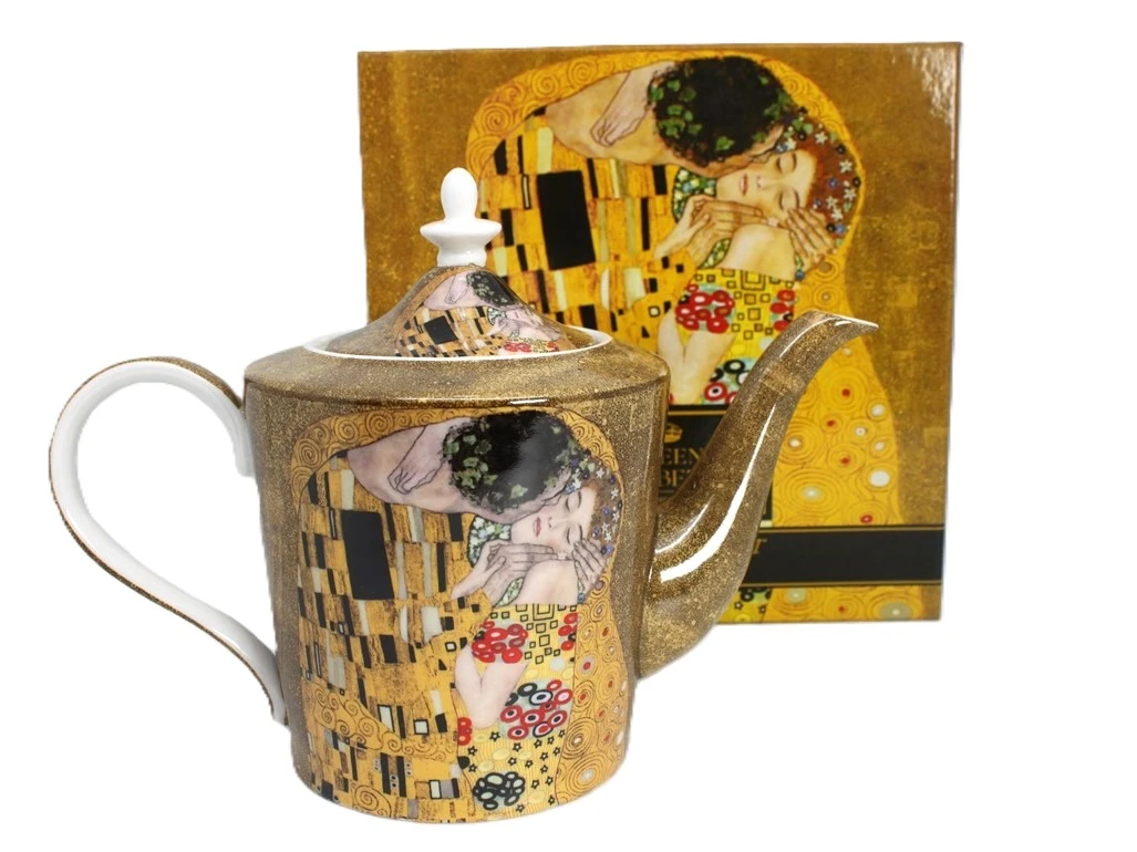 Bardzo oryginalny imbryk z porcelany ozdobiony motywem obrazu Gustava Klimta "Pocałunek". Idealny pomysł na upominek dla miłośników twórczości Gustava Klimta lub sztuki secesji.