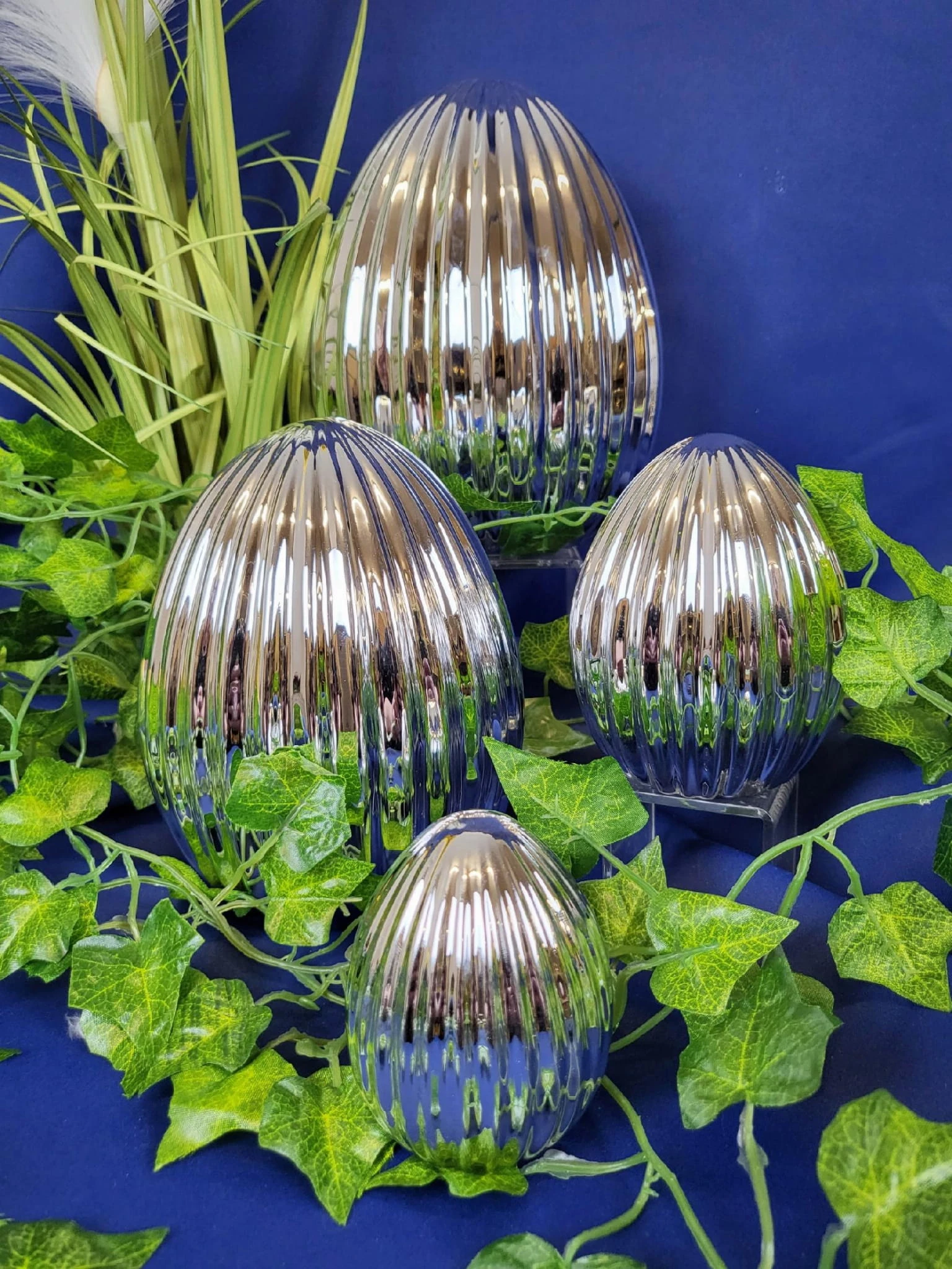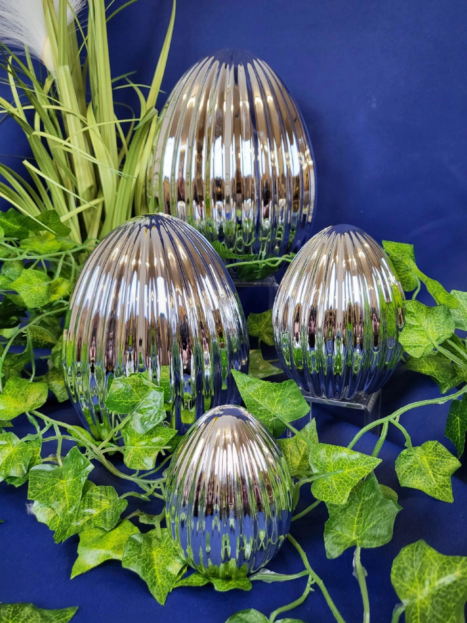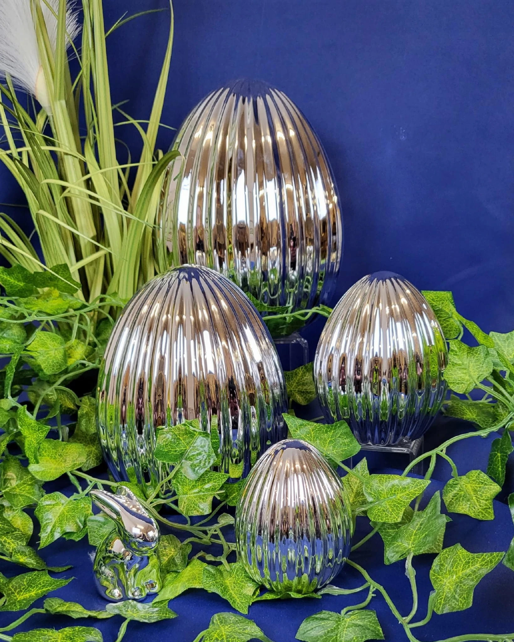 Wysokiej jakości wielkanocne jajko w kolorze srebrnym. Idealnie sprawdzi się jako element stroika wielkanocnego i nie tylko.