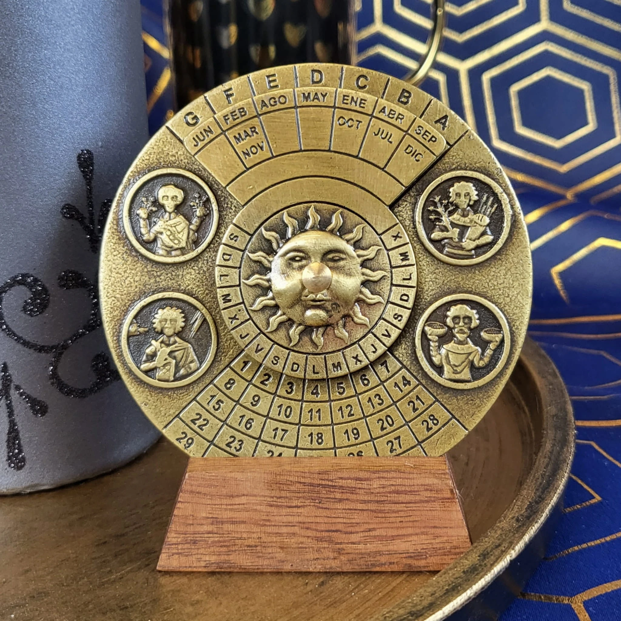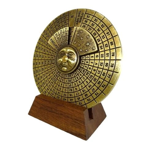 Kalendarz wieczysty umożliwia znalezienie każdego dnia tygodnia w latach 1600-2799! W Kalendarzu został użyty stary system zwany Dominical letters - litery niedzielne. Kalendarz jest pięknie zdobiony w stylu renesansowym. Sprawdzi się jako prezent dla miłośnika historii i zabytków techniki, menadżera, czy też fana astrologii. Będzie się świetnie prezentować na biurku w gabinecie lub biurze.