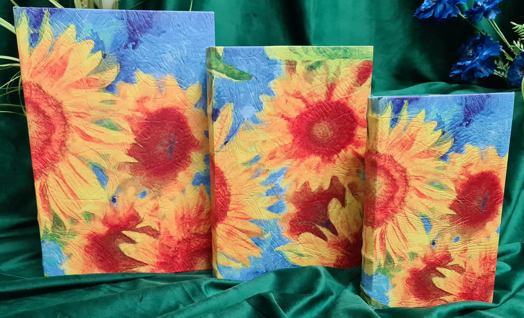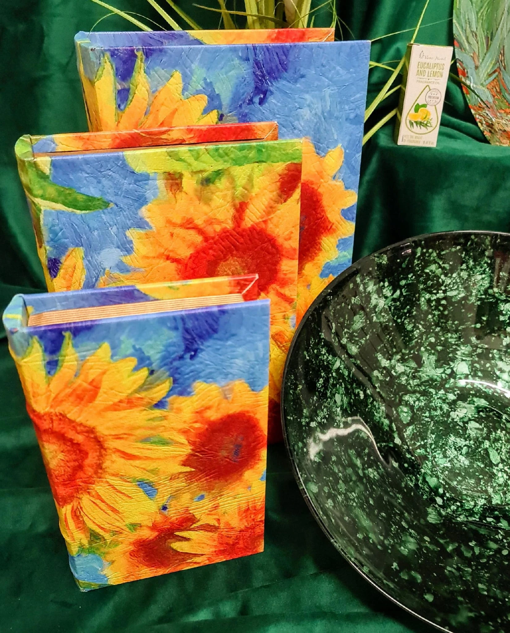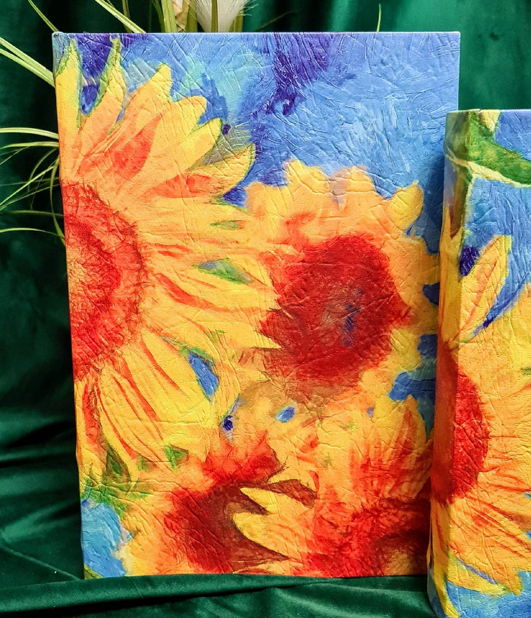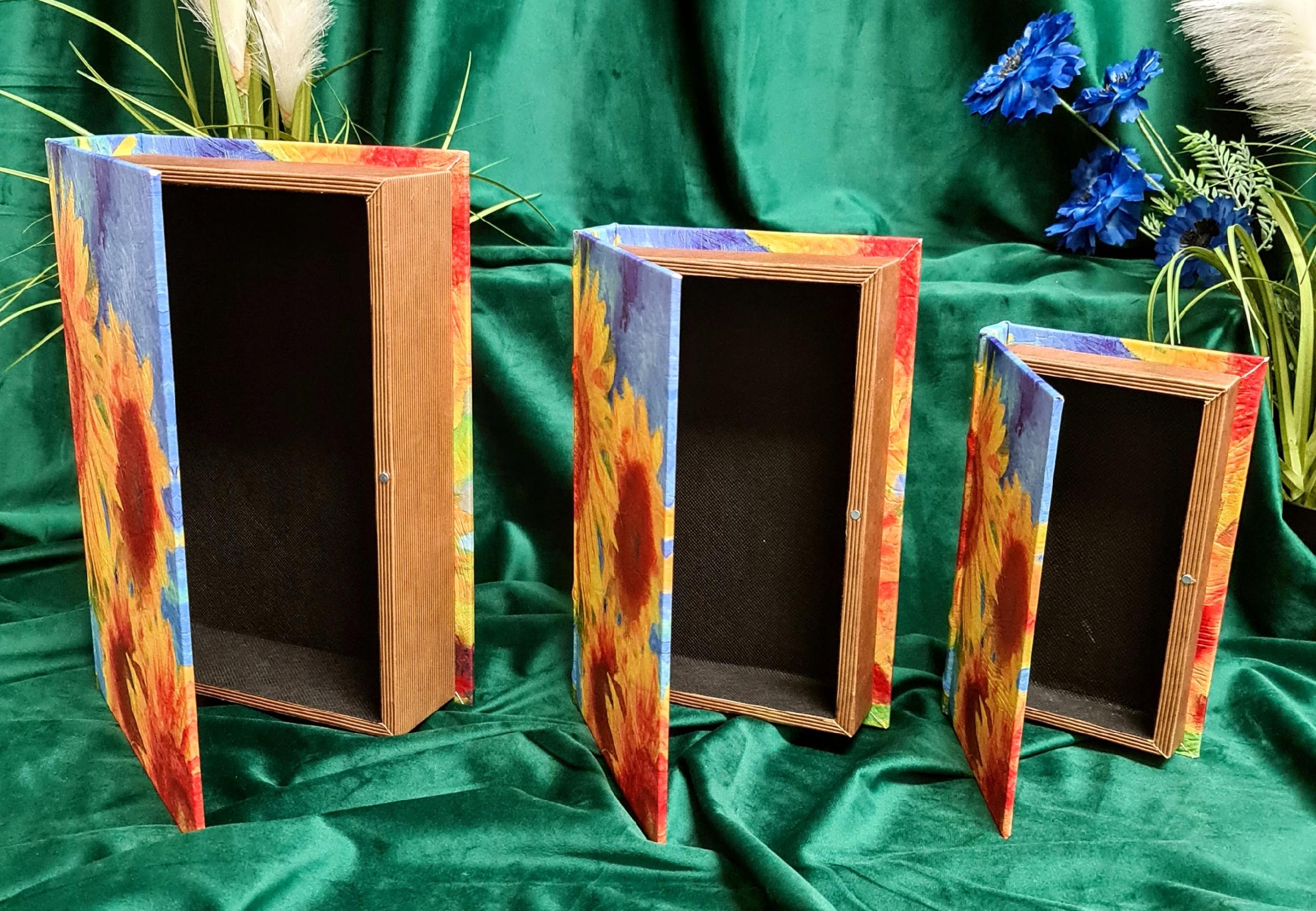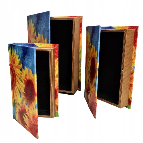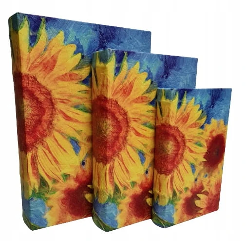 Idealna na drobiazgi lub jako skrytka. Kasetka w trzech rozmiarach z motywem Słoneczników Vincenta van Gogha, idealnie będzie zdobić komodę lub szafkę. Dopasowuje się do każdego rodzaju wnętrz, idealnie nadaje się na prezent dla osób lubiących dzieła sztuki.