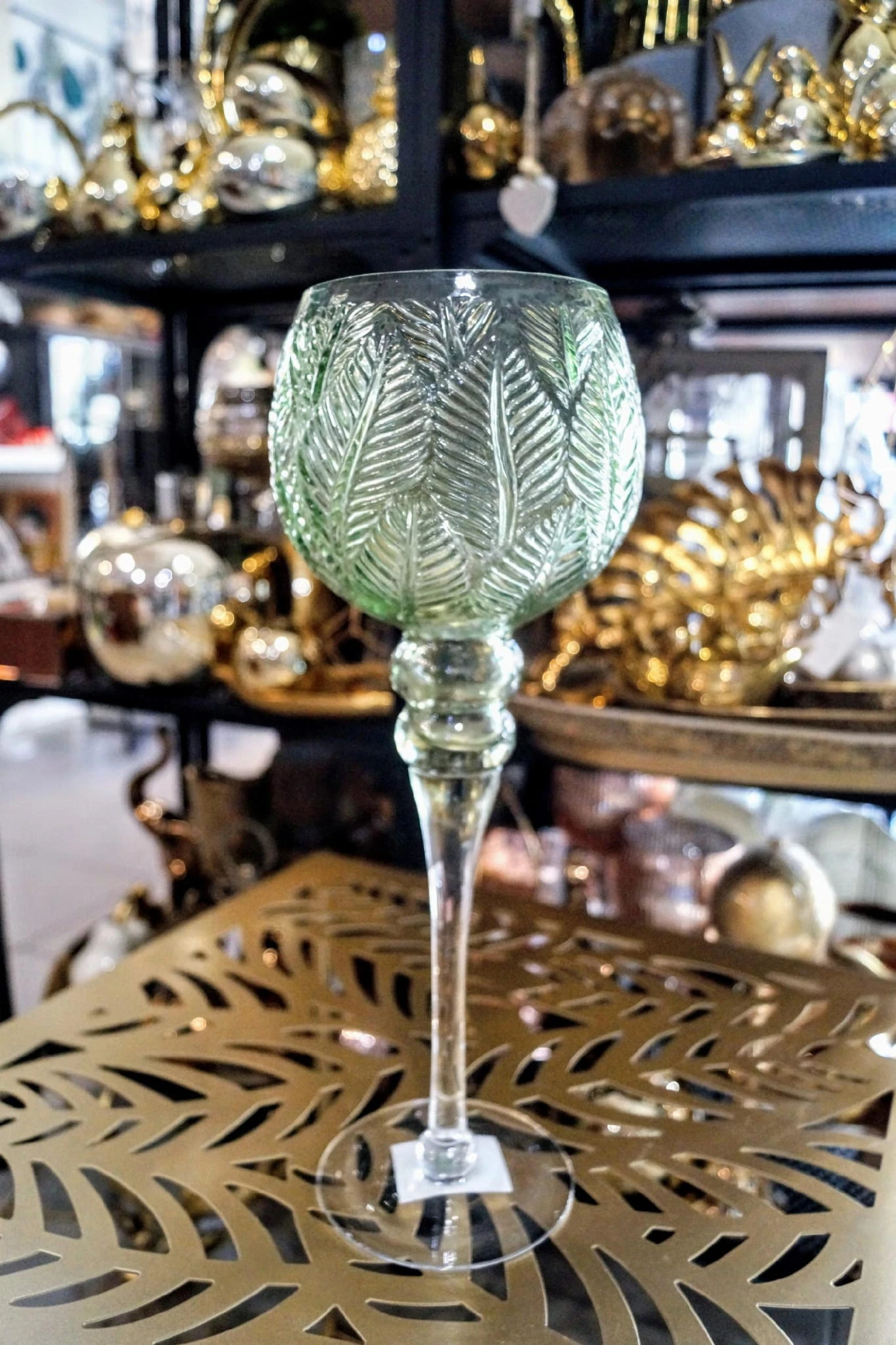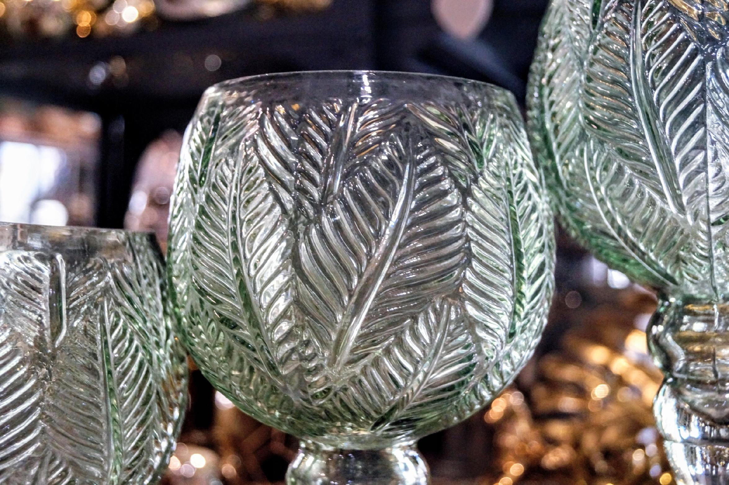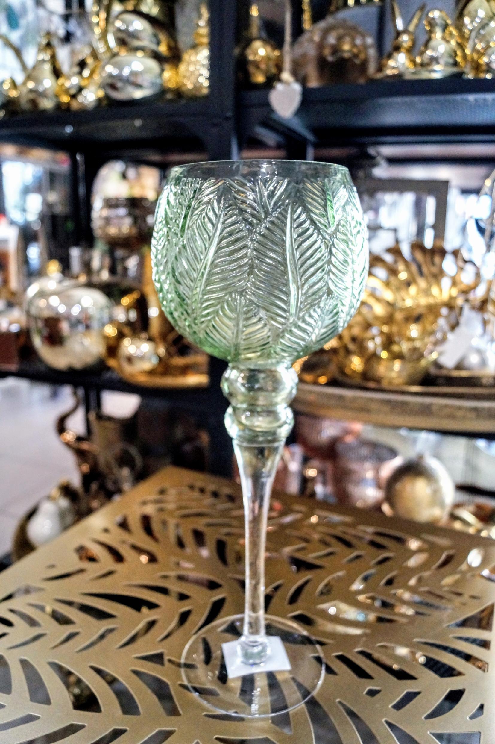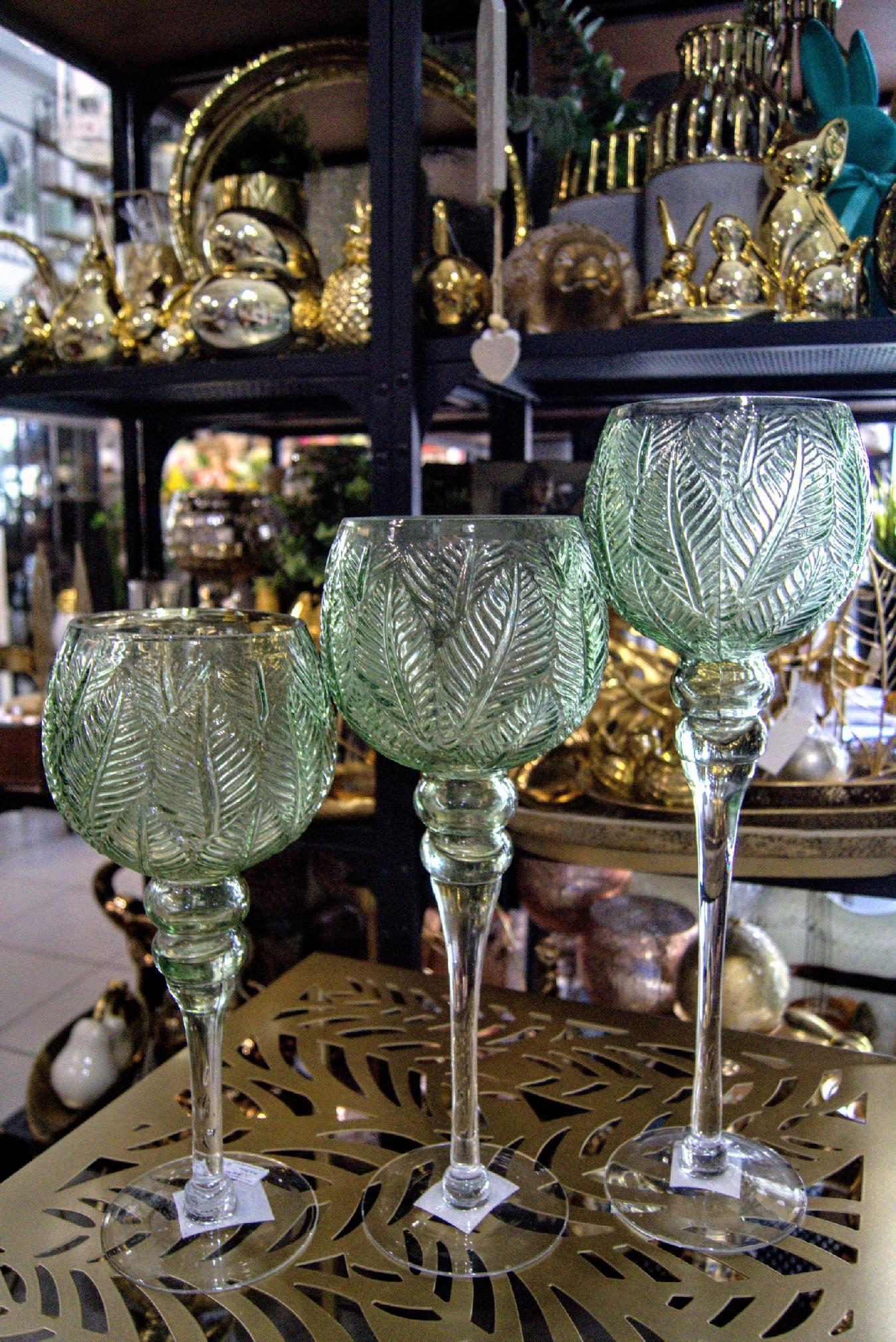 KIELICH MOZAIKA ŚREDNI W LIŚCIE ZIELONE H35CM