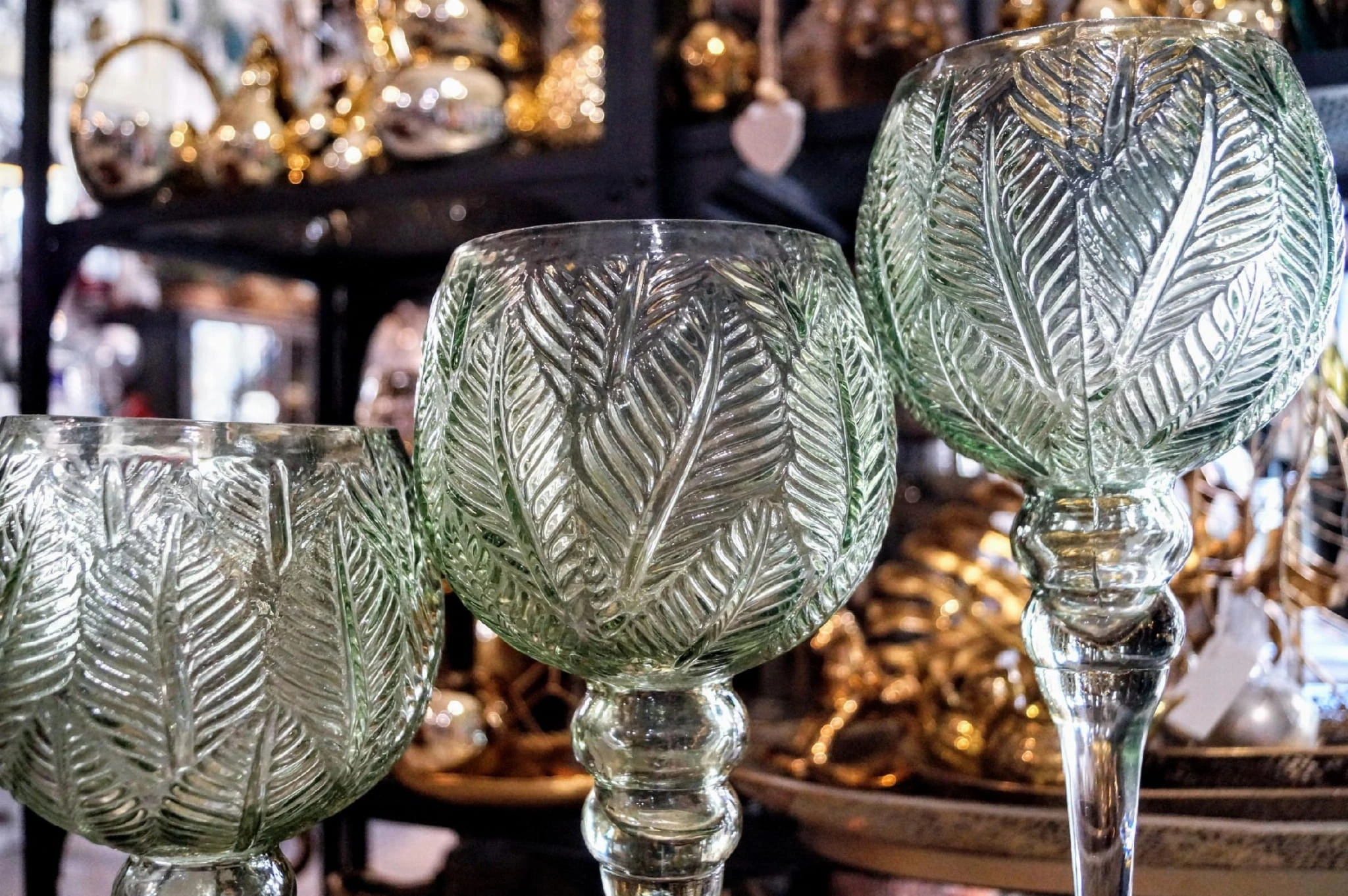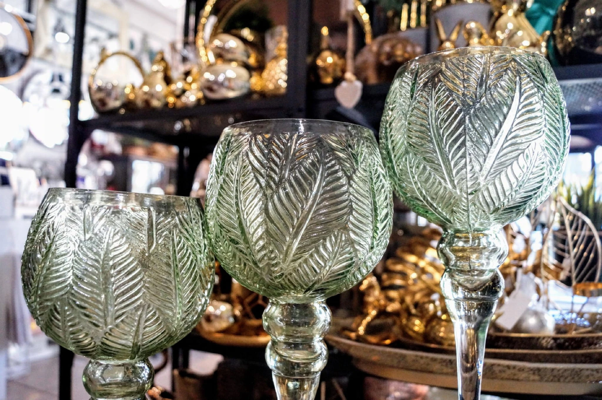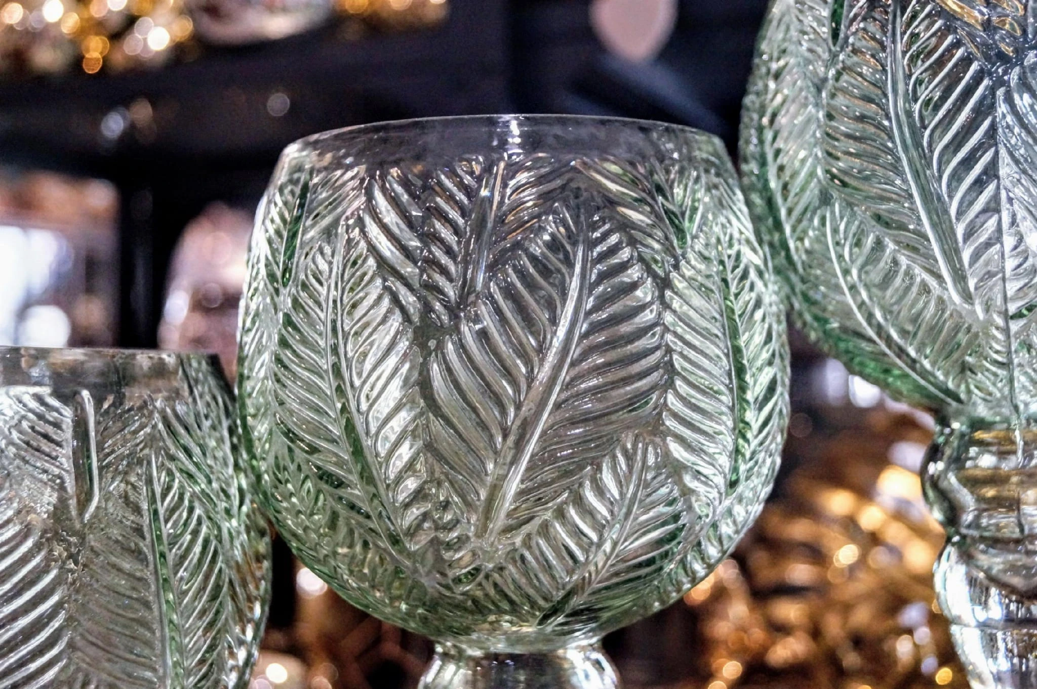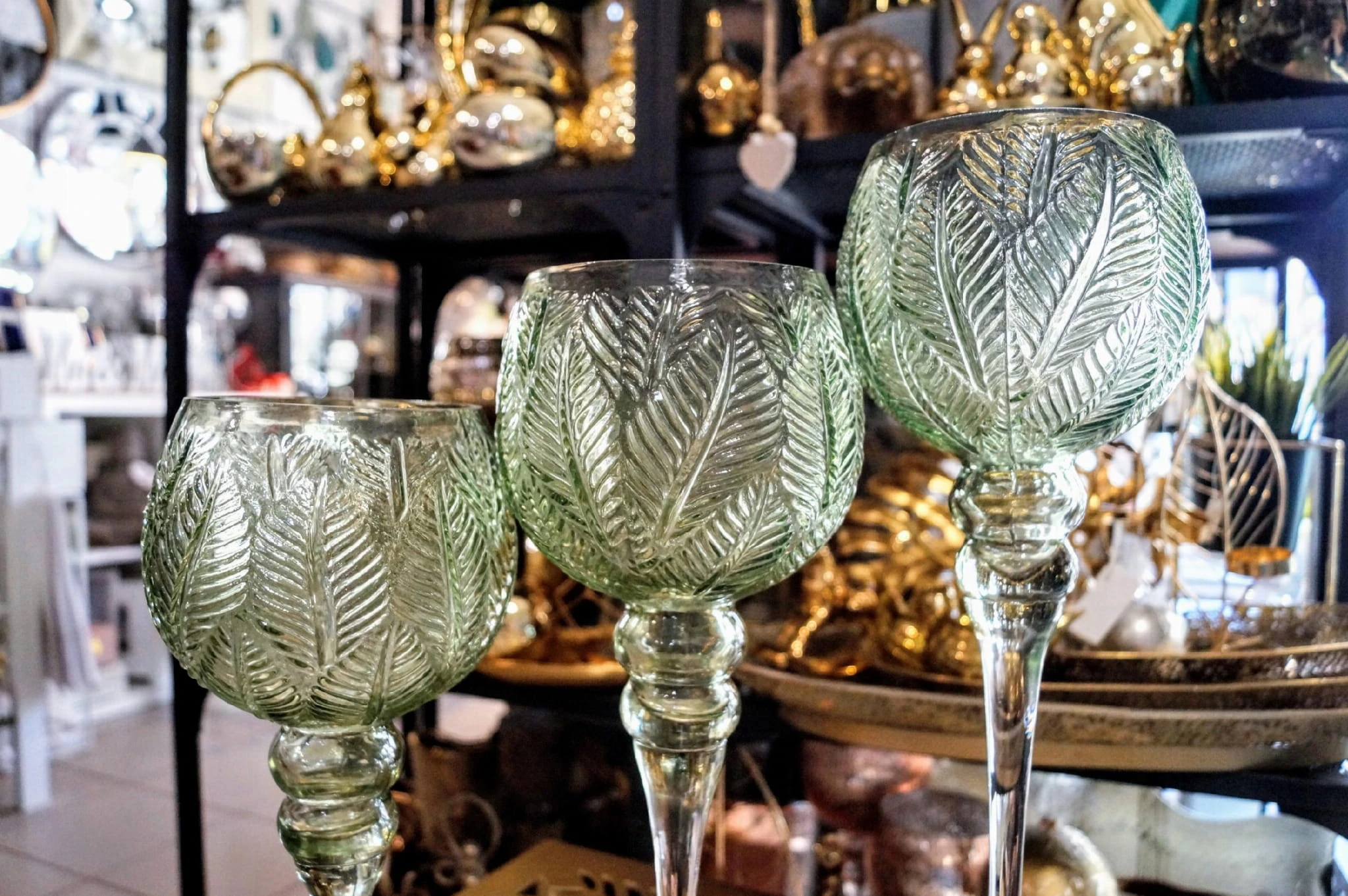 KIELICH MOZAIKA ŚREDNI W LIŚCIE ZIELONE H35CM