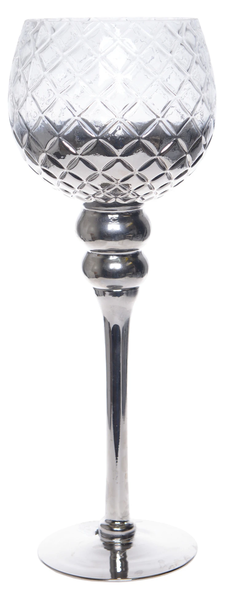 KIELICH ŚREDNI CIENIOWANY SZARO-SREBRNY 13X13X35CM