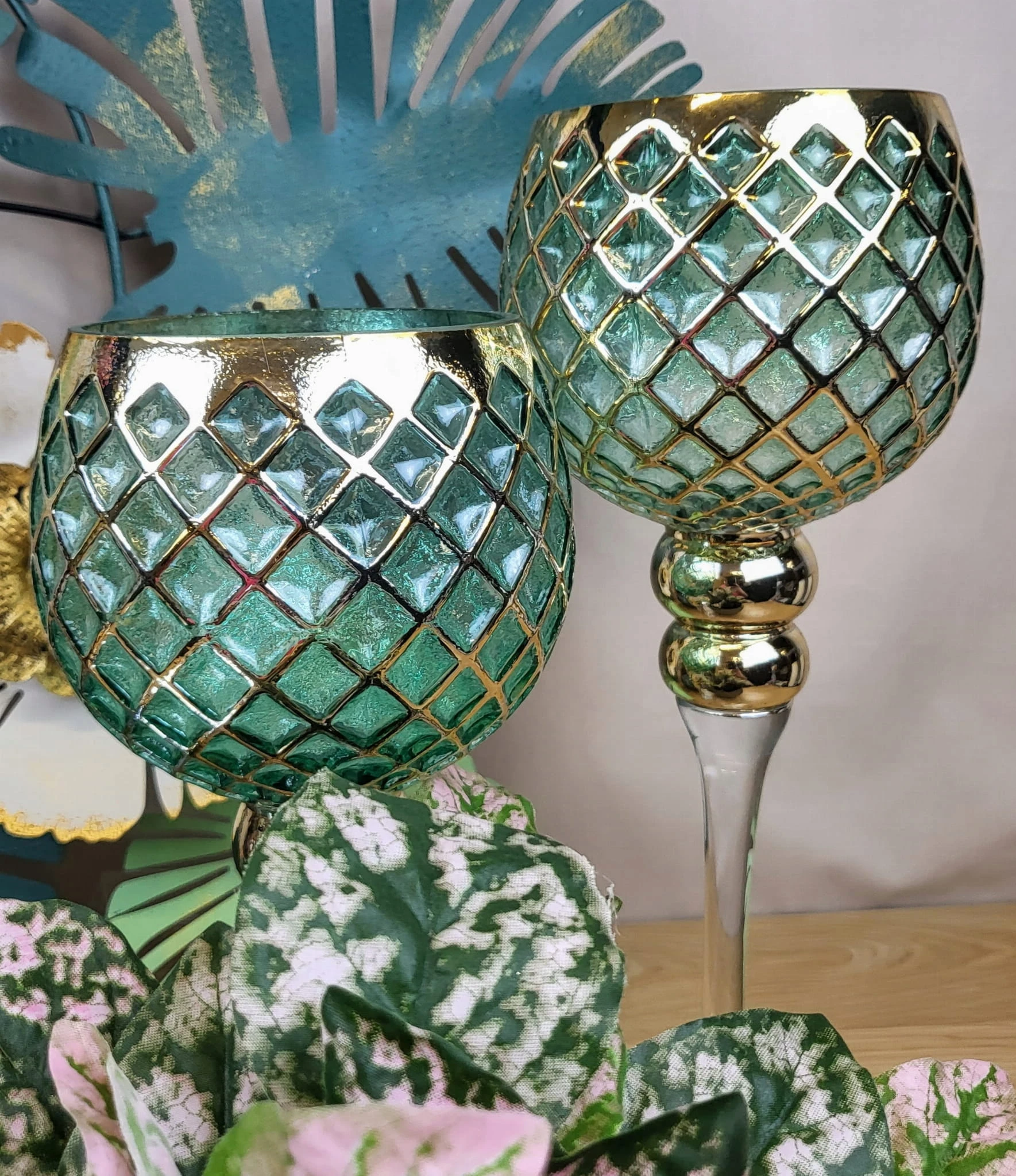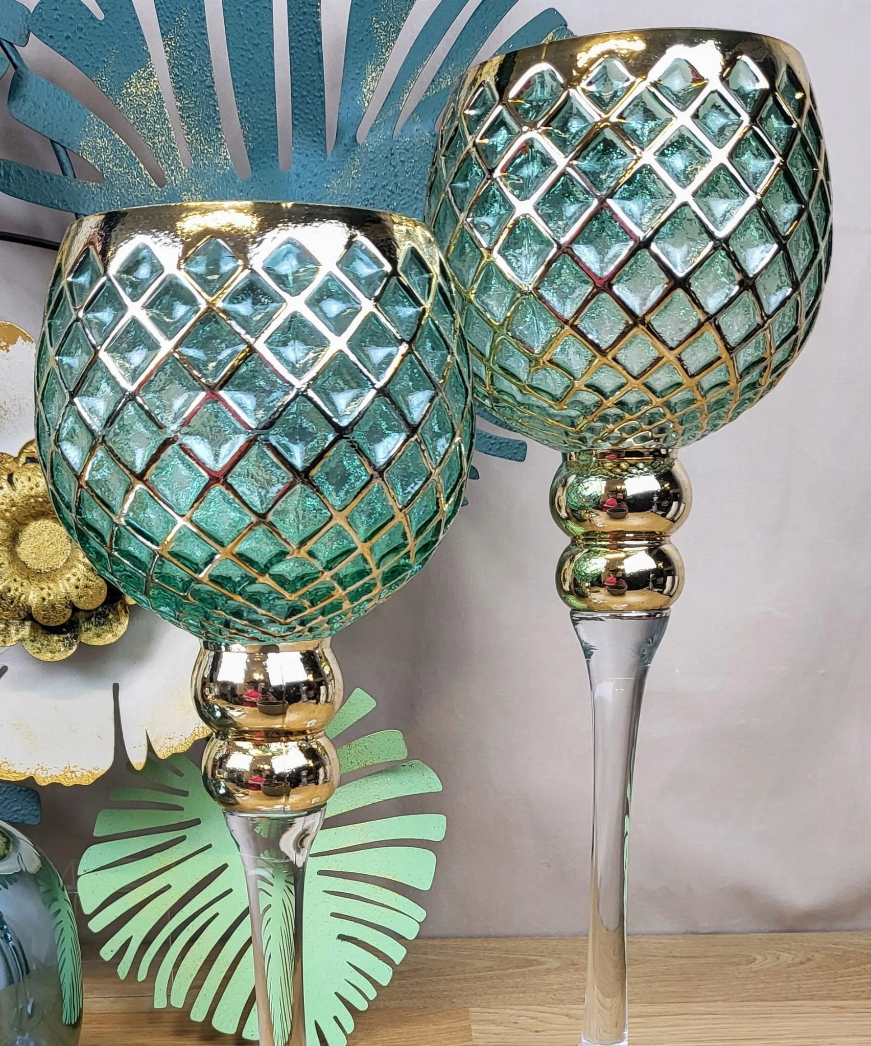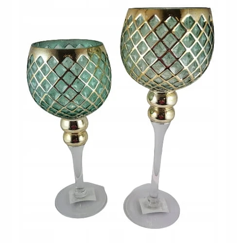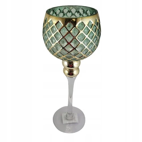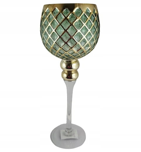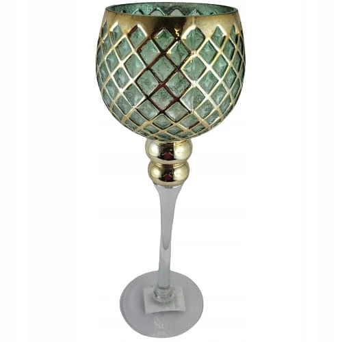 KIELICH SZKLANY ZIELONY ZŁOTY TRANSPARENTNY 35CM