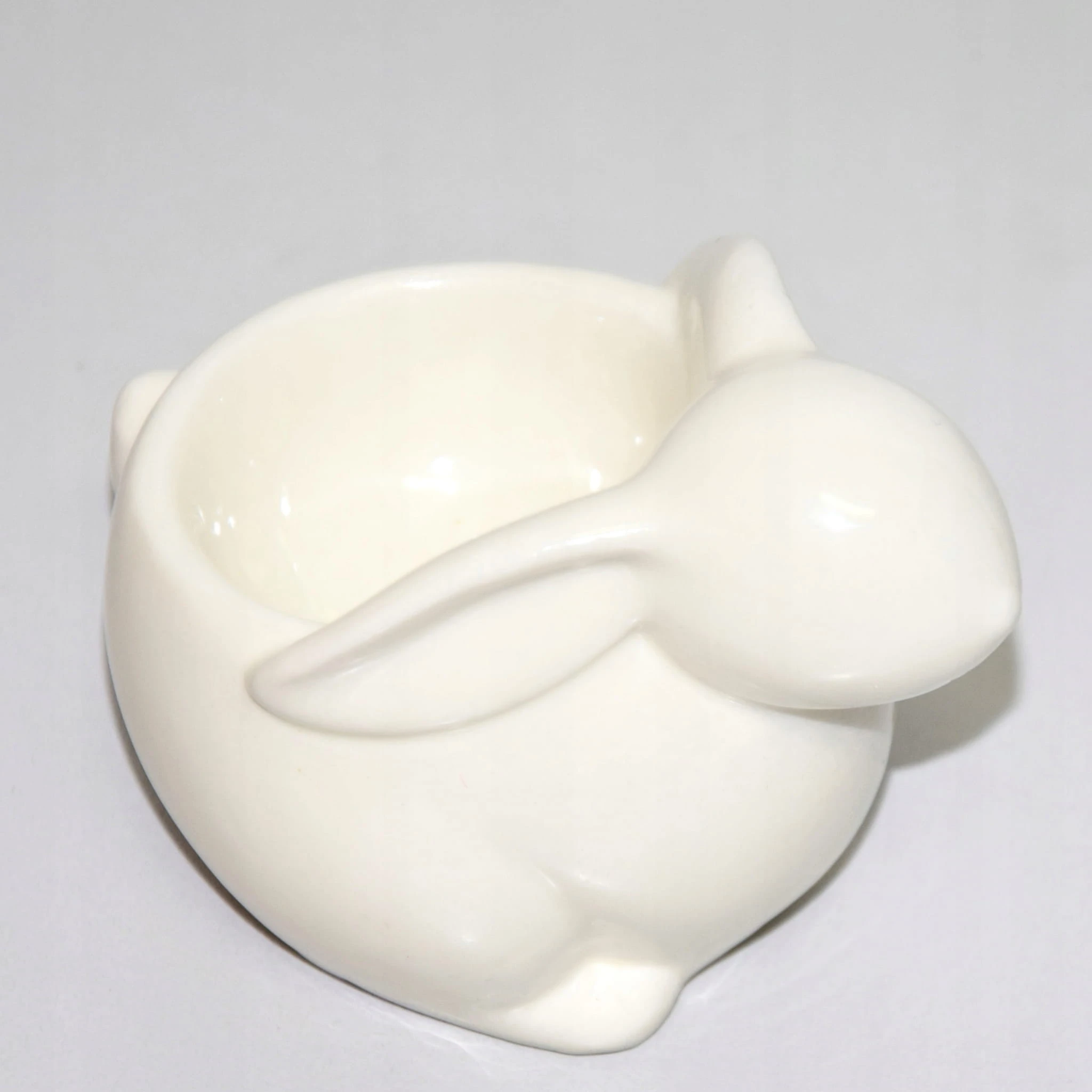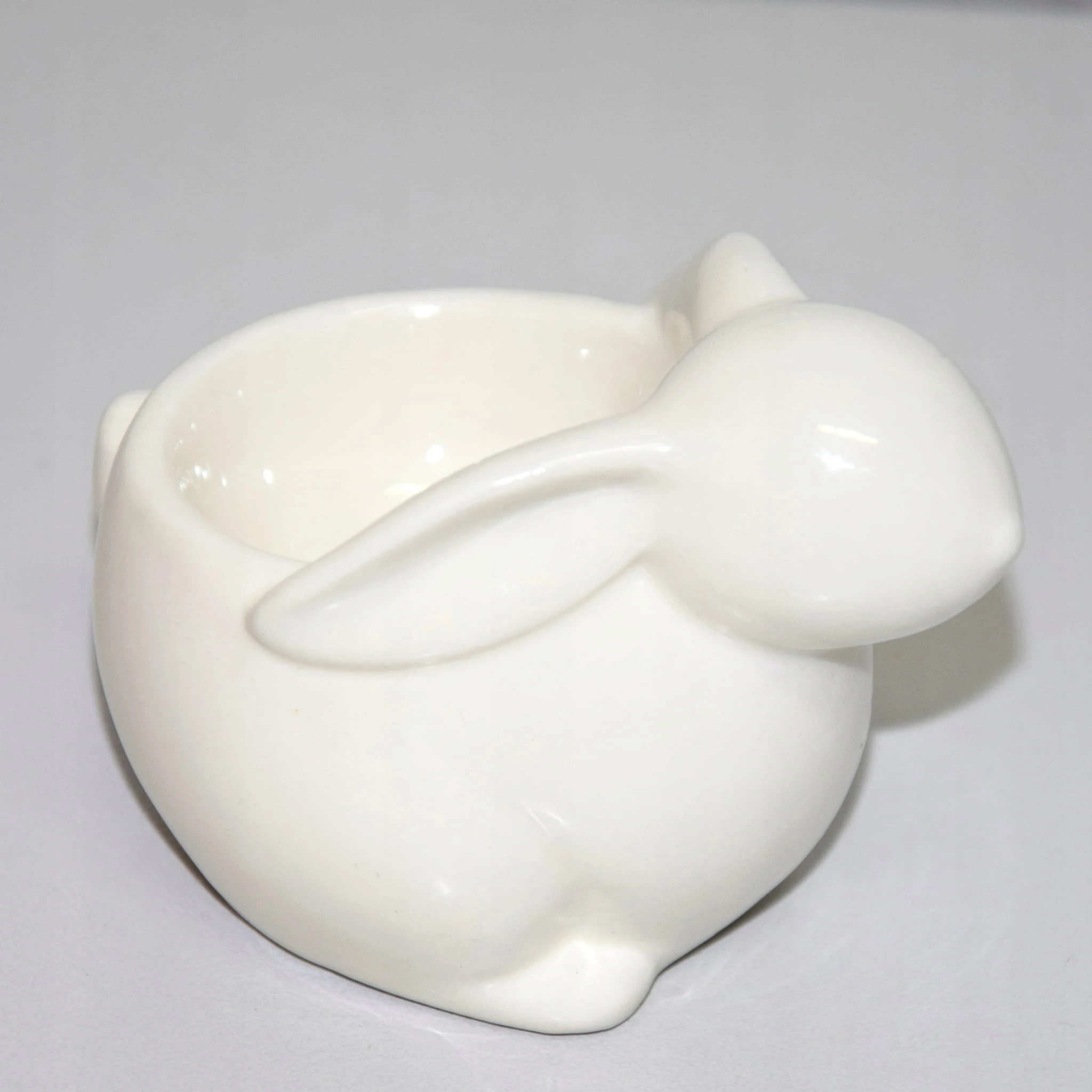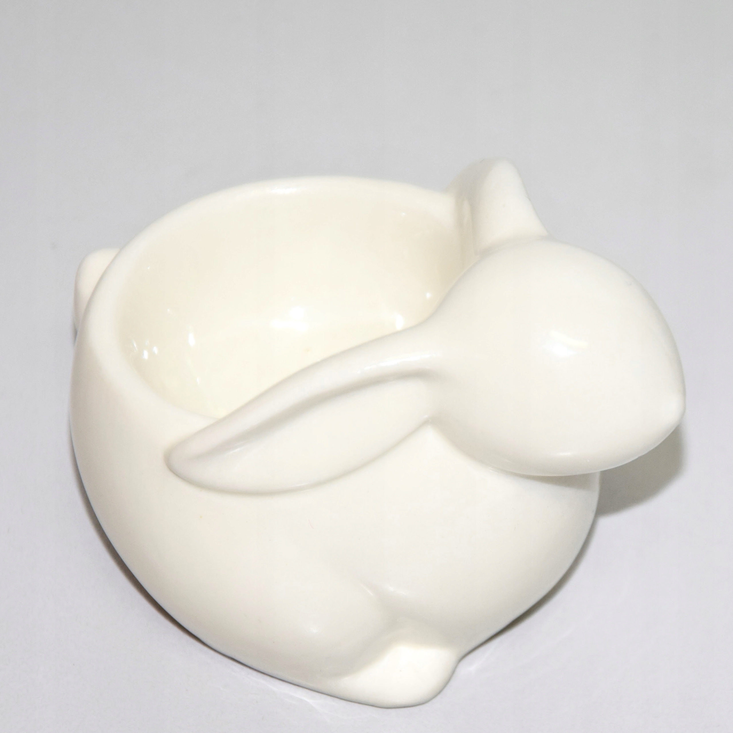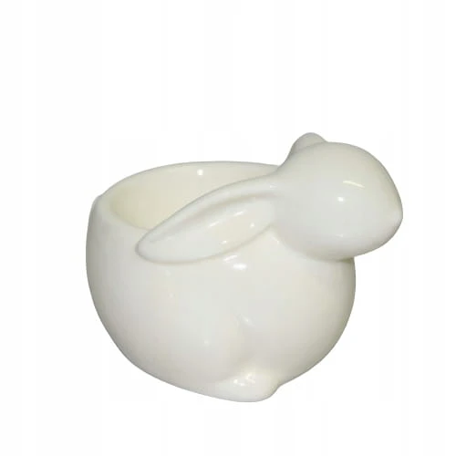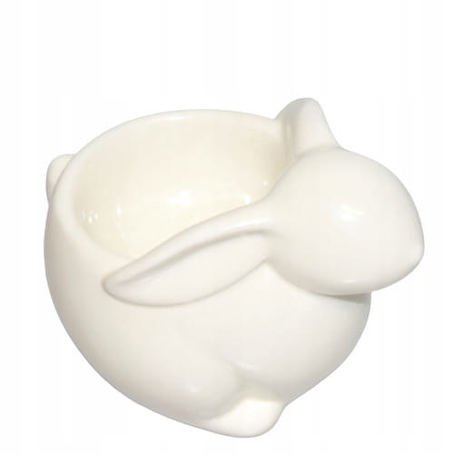 Ceramiczny pojemnik na jajko z królikiem jest wykonana w nowoczesnym, minimalistycznym stylu.