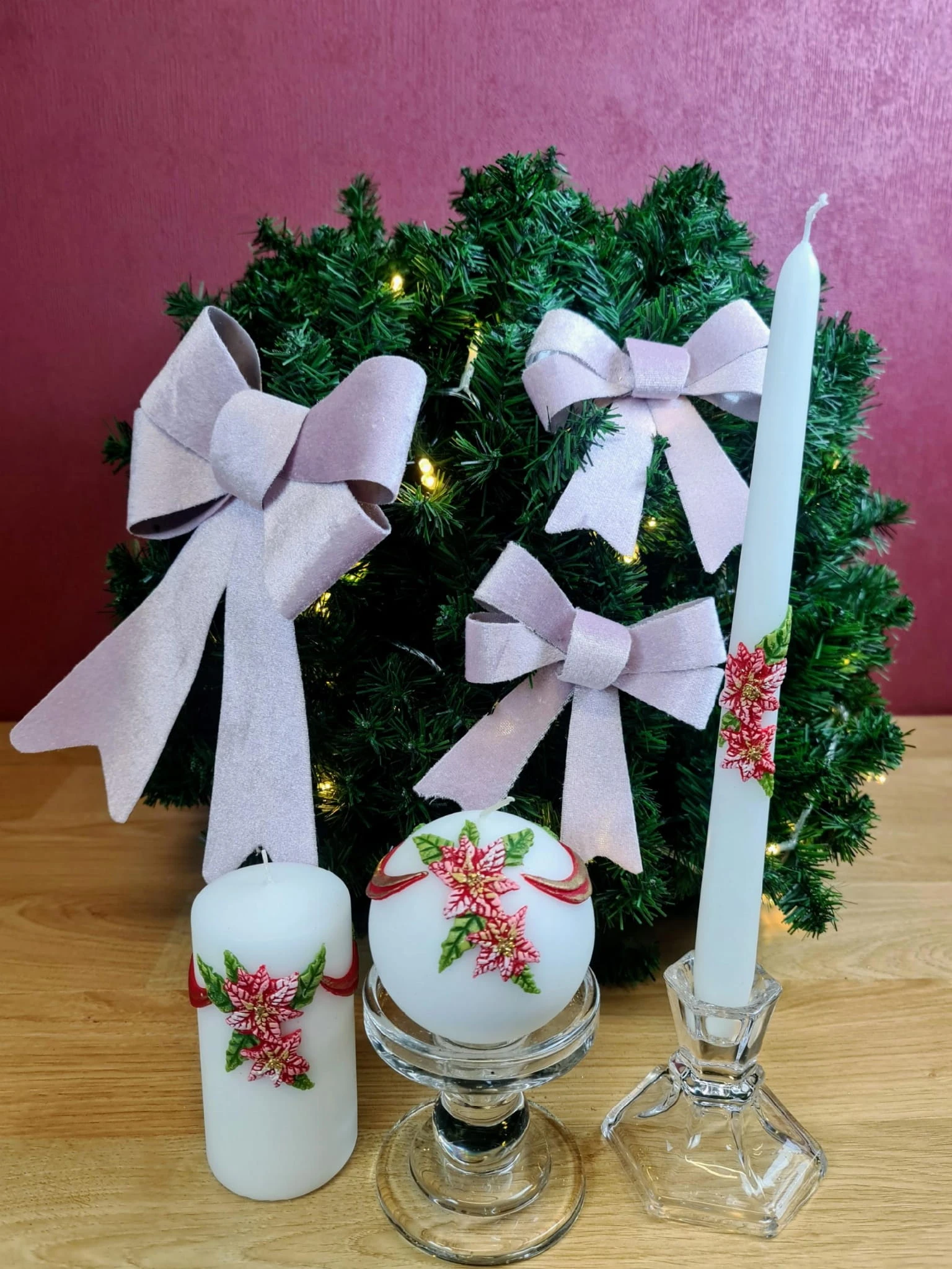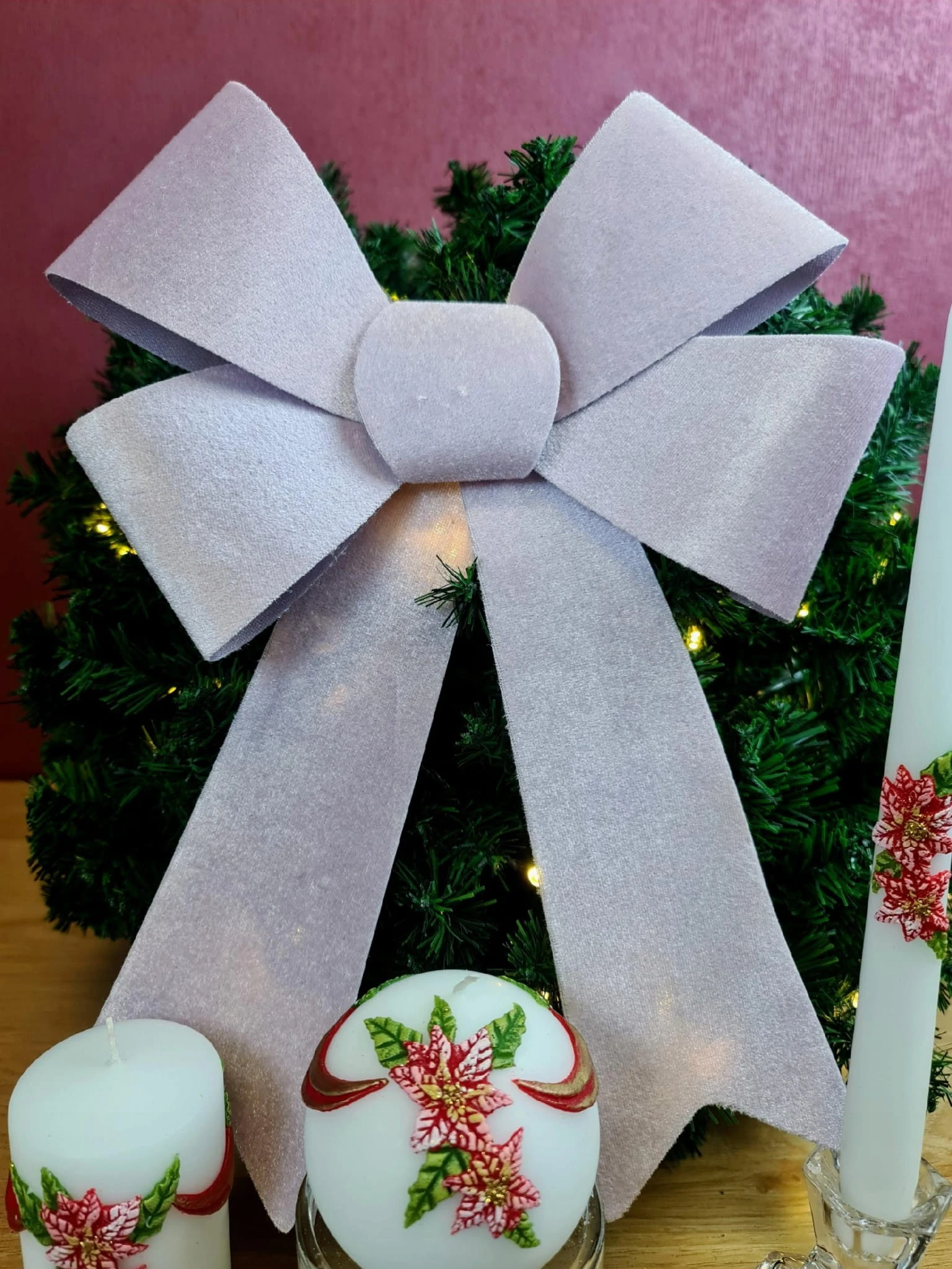KOKARDA DUŻA RÓŻOWA 38 X 23CM PREZENT ŚWIĘTA XMAS