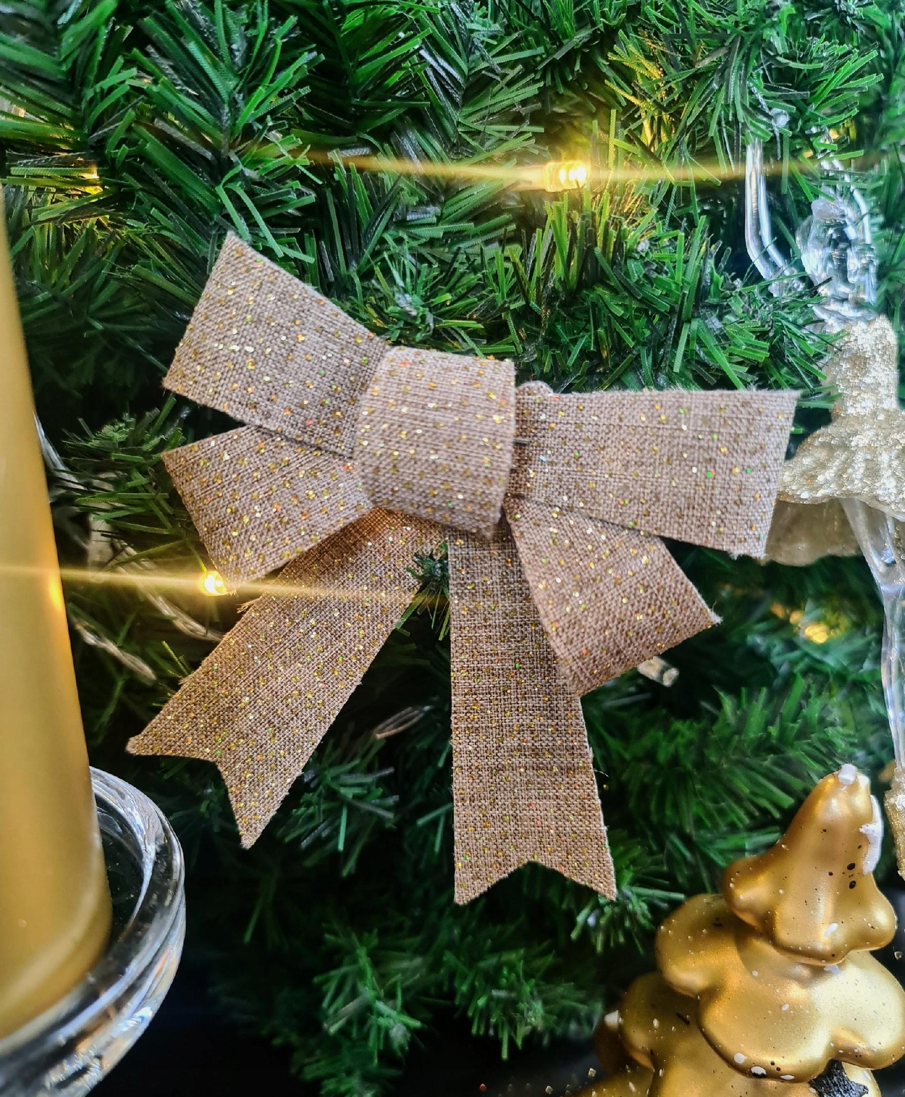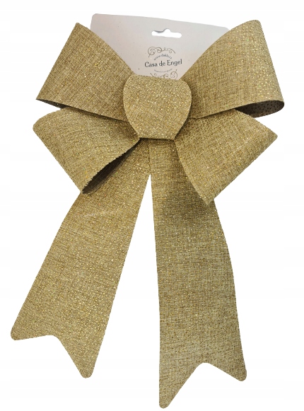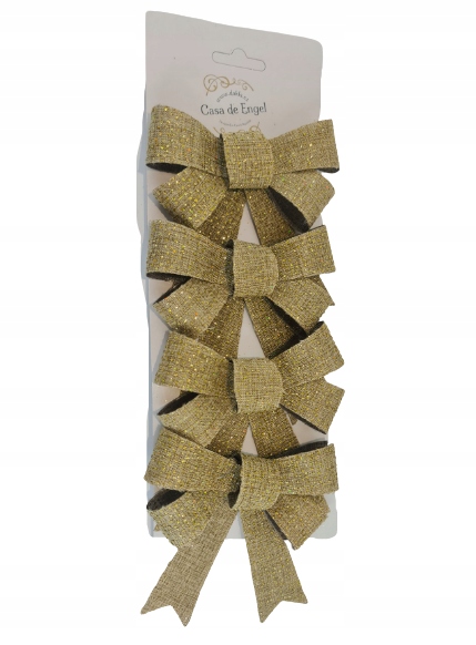 Kokardy wykonane są z sztywnego materiału pokrytego złotym materiałem i oprószone brokatem, dzięki czemu ładnie będą prezentować się na choince czy przy prezencie. Modna i stylowa dekoracja w tym sezonie. Wykorzystać można je do różnych zdobień, ogranicza nas jedynie wyobraźnia.