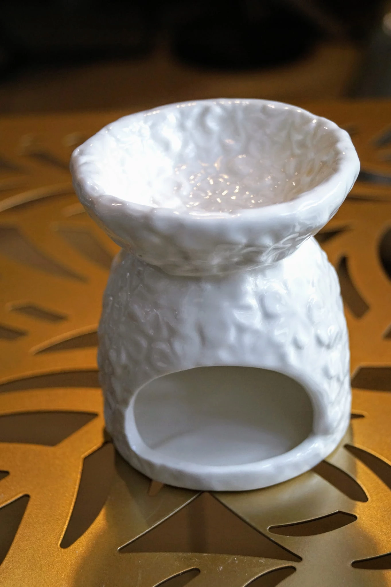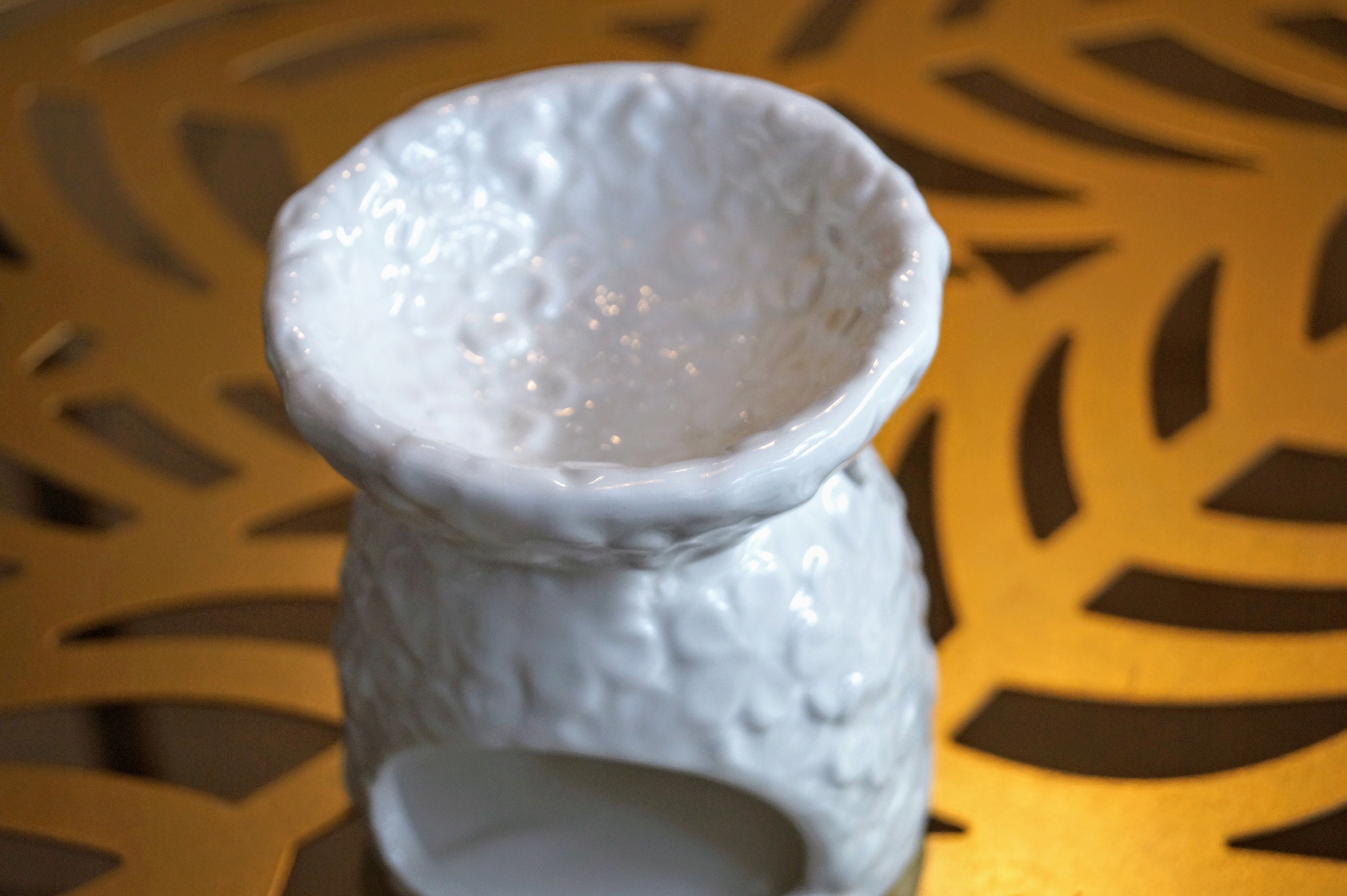 Ceramiczny kominek do olejków lub wosków, przeznaczony na jeden podgrzewacz typu tealight.