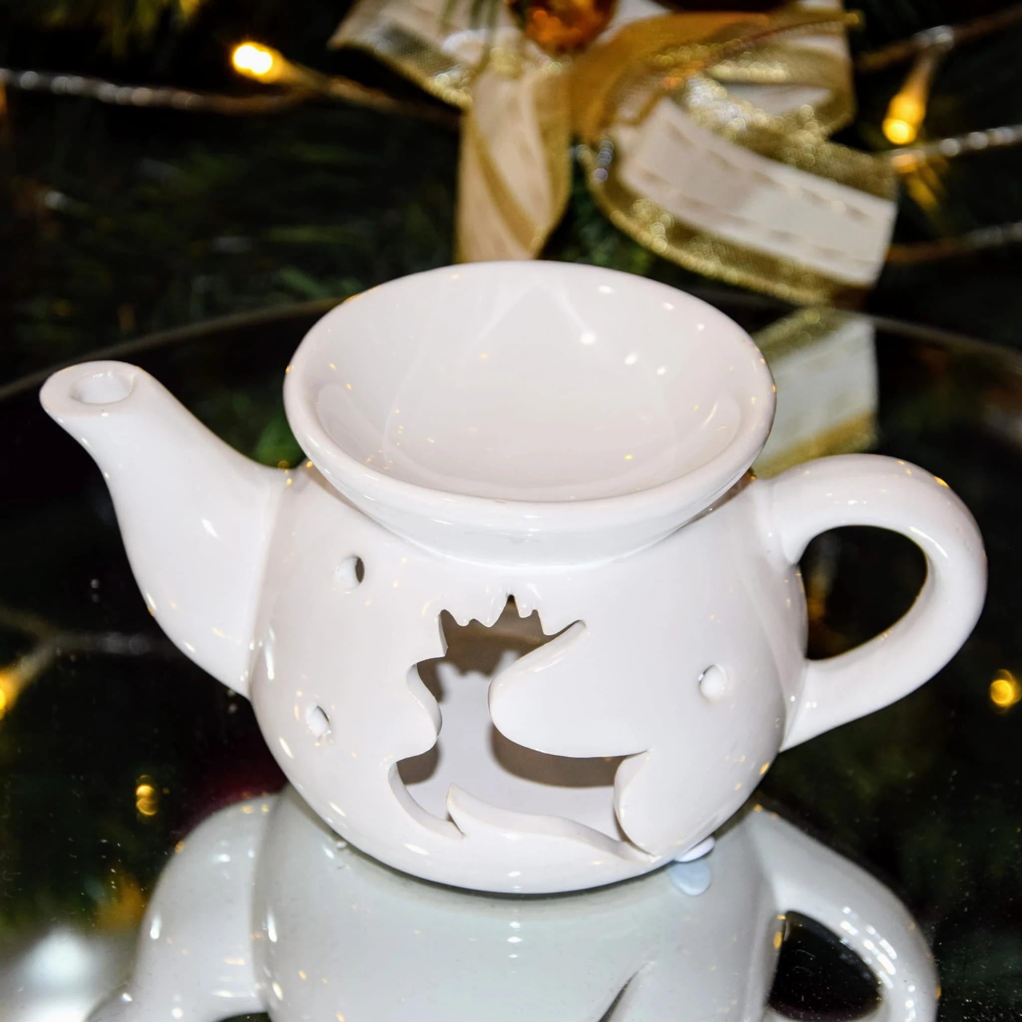 Ceramiczny kominek do olejków lub wosków, przeznaczony na jeden podgrzewacz typu tealight.