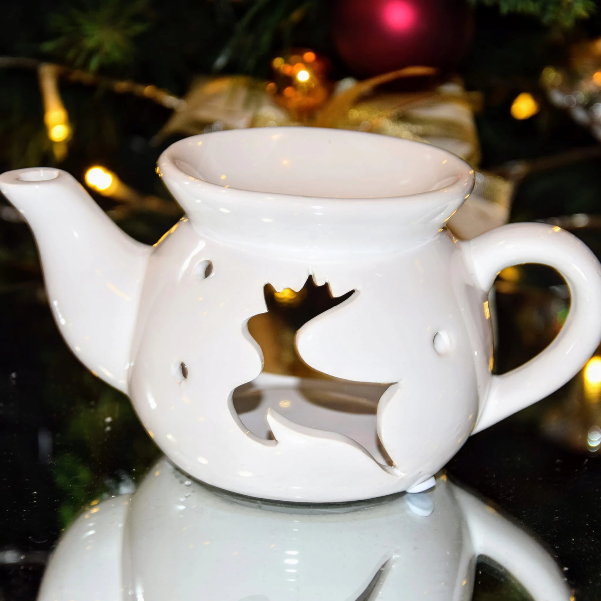 KOMINEK CERAMICZNY BIAŁY Z RENIFEREM