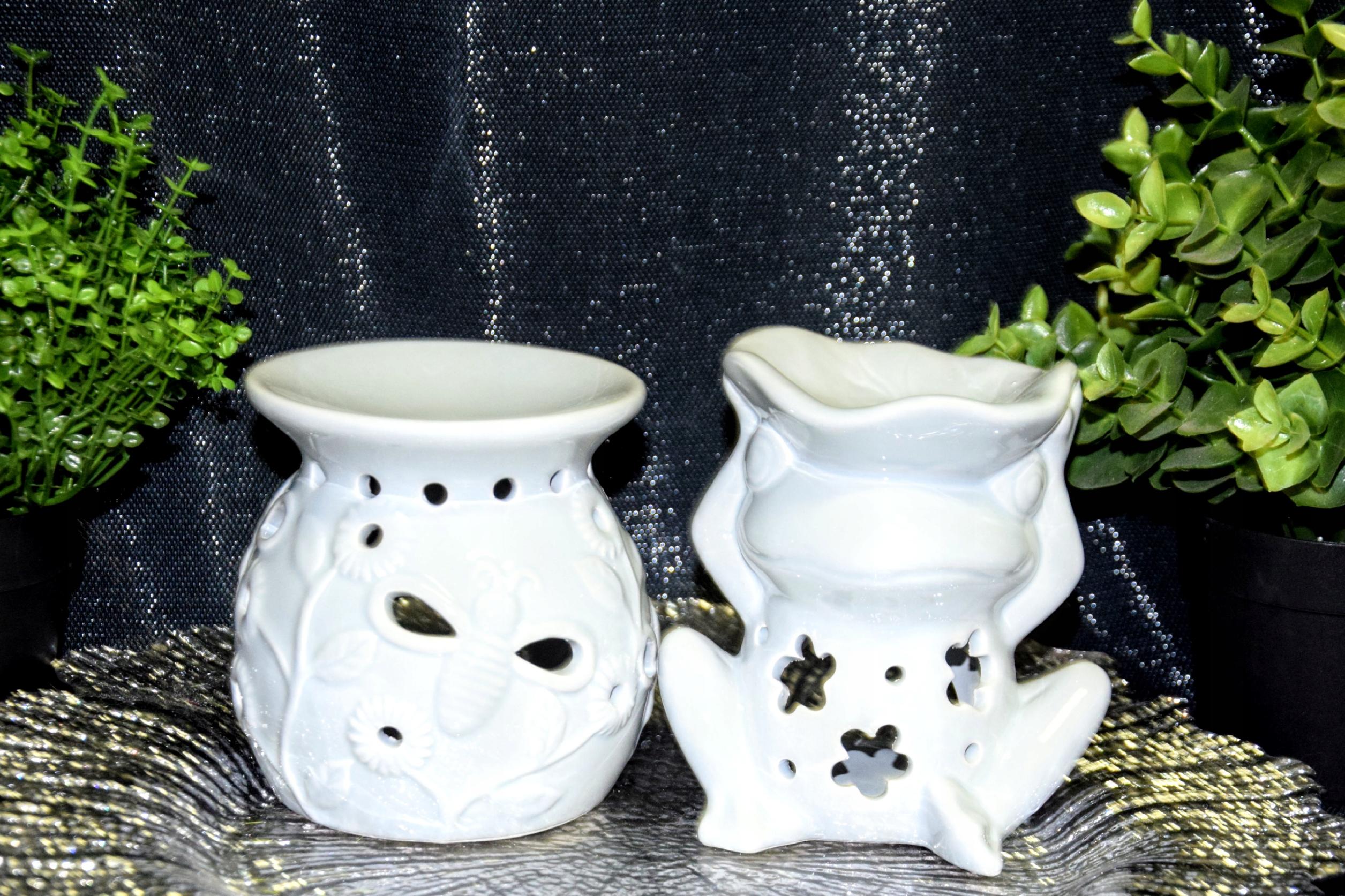 KOMINEK CERAMICZNY NA OLEJEK LUB WOSK ŻABA BIAŁY