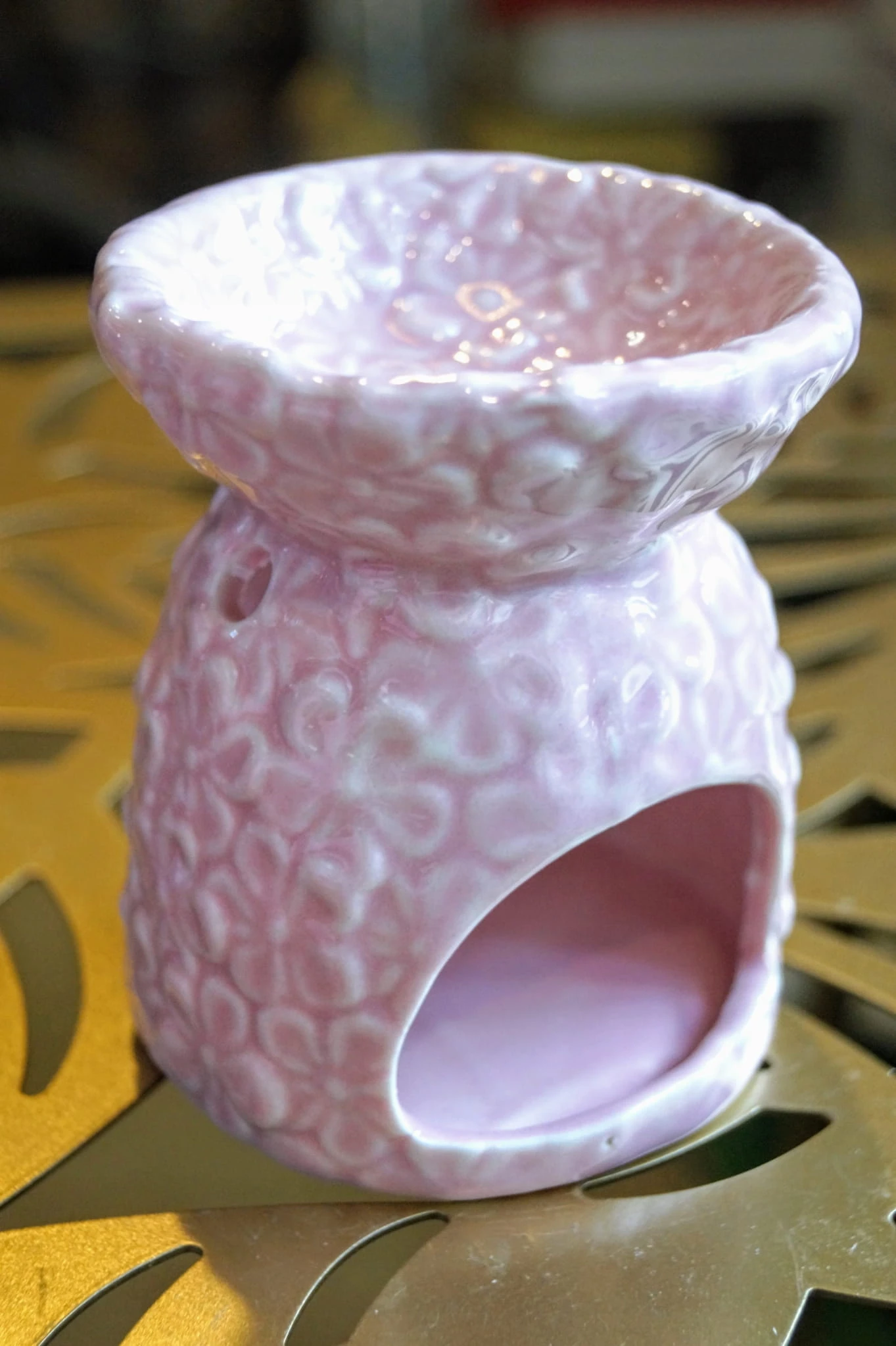 Ceramiczny kominek do olejków lub wosków, przeznaczony na jeden podgrzewacz typu tealight.