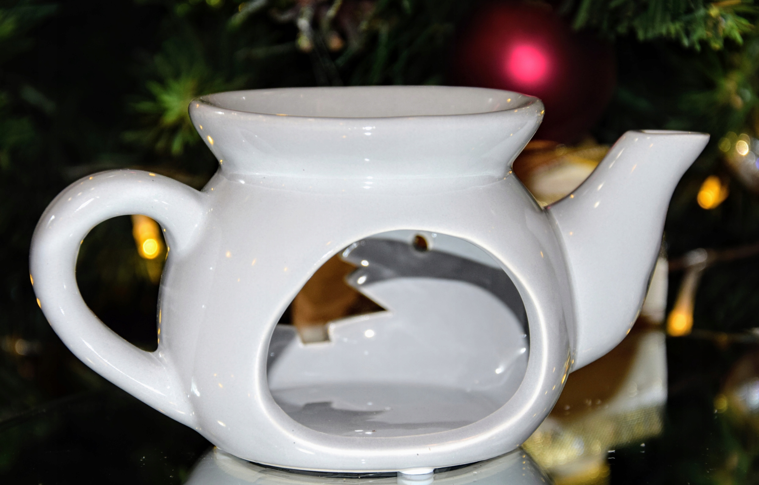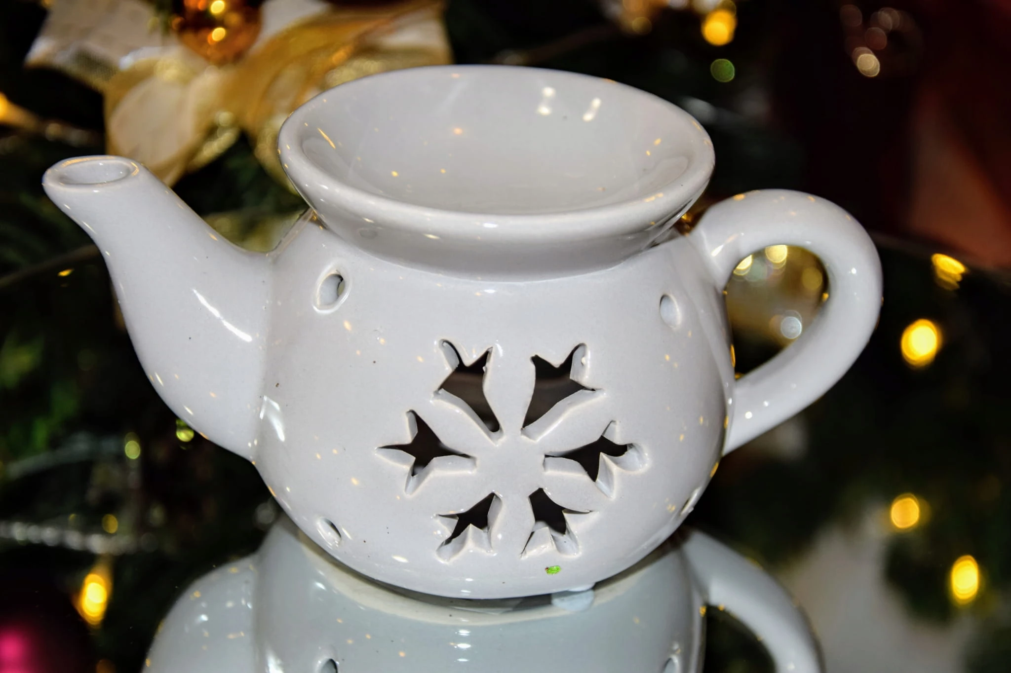 Ceramiczny kominek do olejków lub wosków, przeznaczony na jeden podgrzewacz typu tealight.