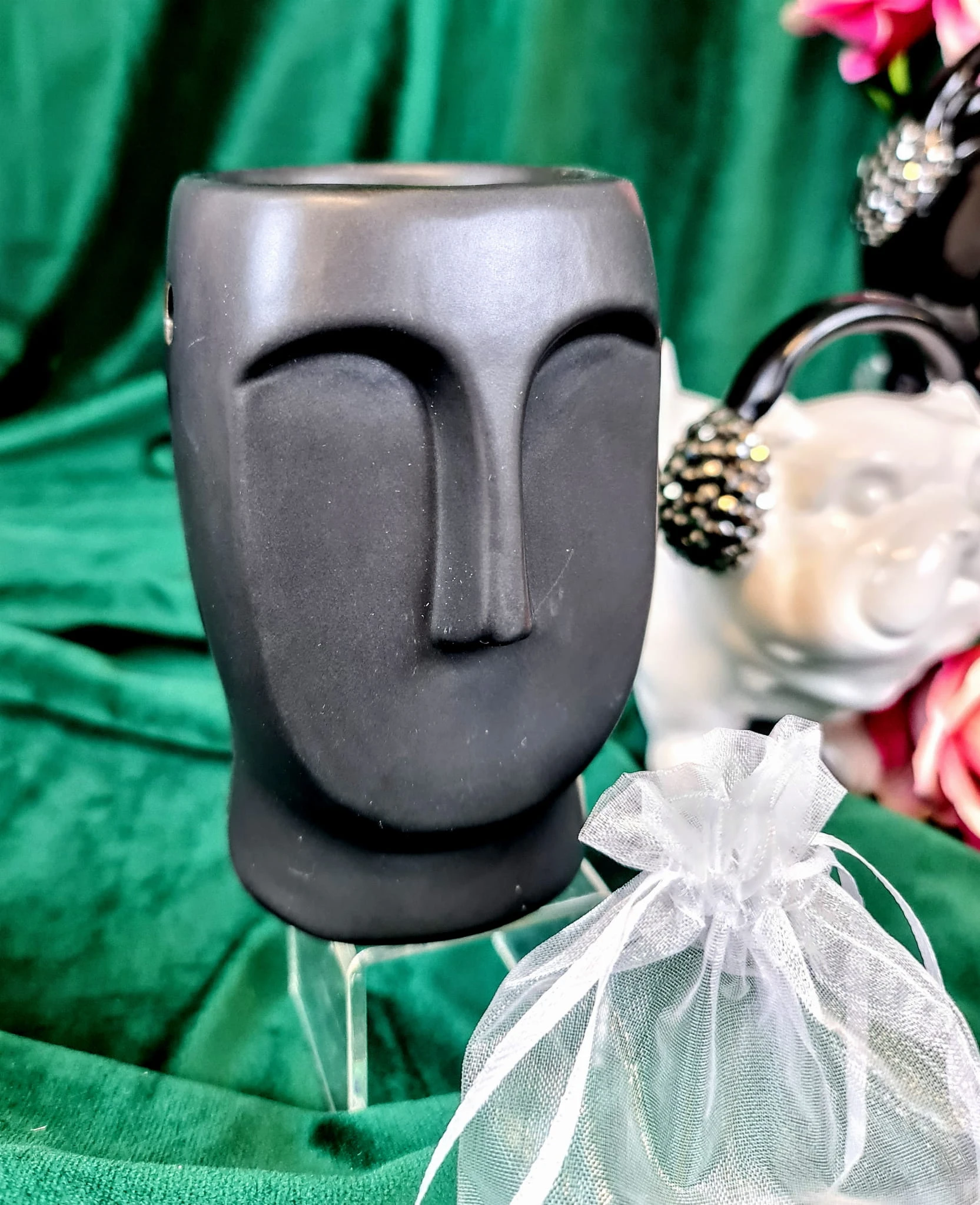 Kominek ceramiczny z modnym motywem twarzy do wosków i olejków zapachowych jest nie tylko fantastycznym sposobem na wprowadzenie do mieszkania ulubionego zapachu, ale też pomysłowym elementem wystroju.