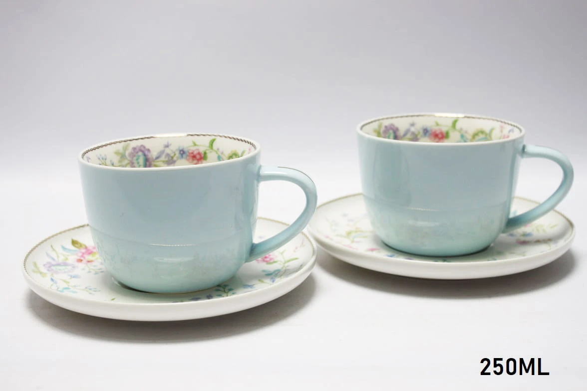 KOMPLET 2 FILIŻANEK Z SPODKAMI 250 ML PORCELANA