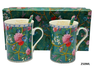 KOMPLET 2 KUBKÓW Z ŁYŻECZKAMI KWIATY 2X250ML