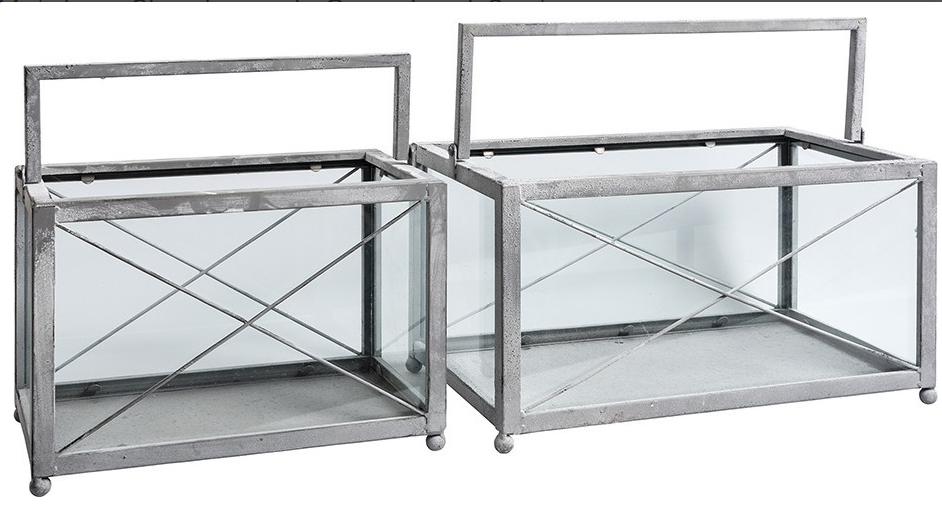 KOMPLET DWÓCH LAMPIONÓW METAL SZKŁO GIORGIO