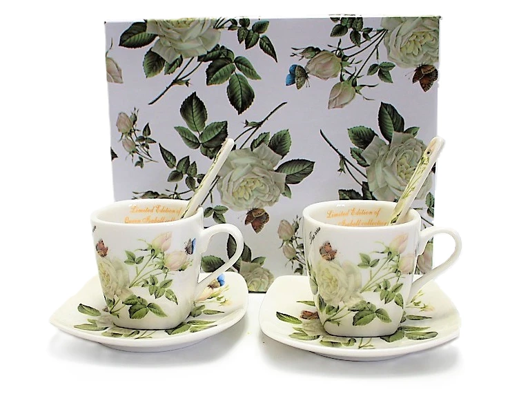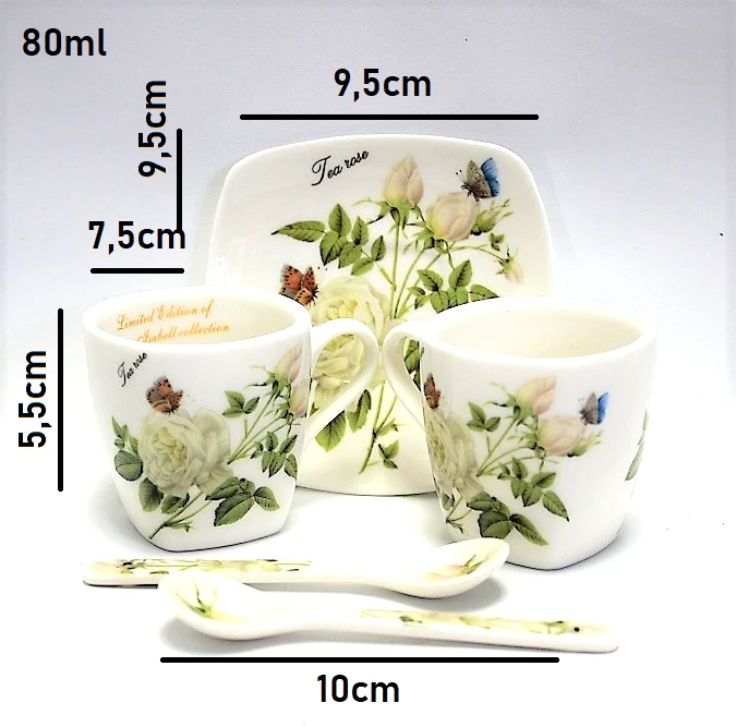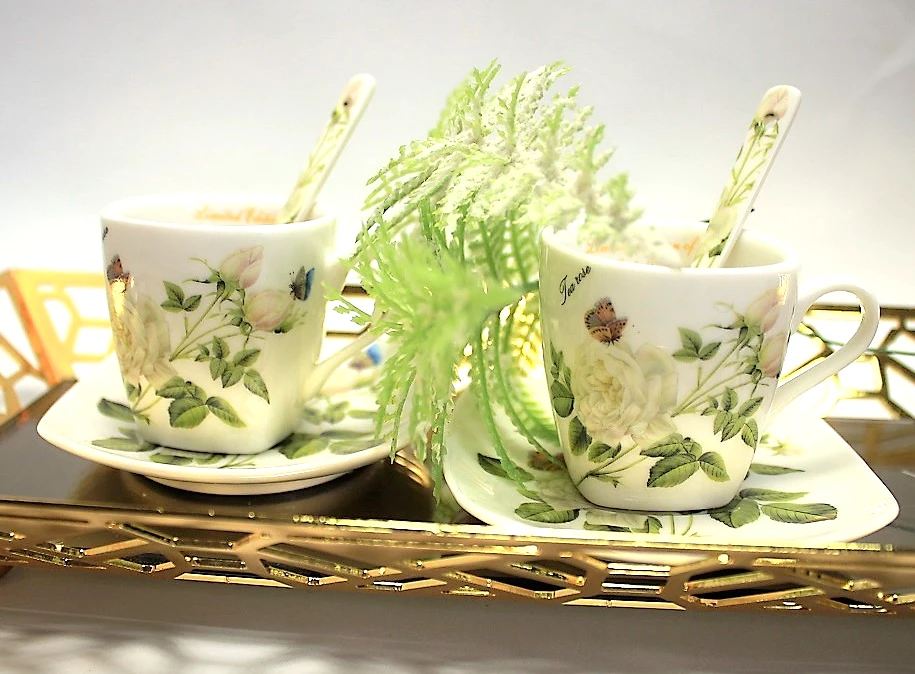 Elegancki zestaw do espresso to doskonały wybór dla miłośników wysokiej jakości produktów. Wysokiej jakości porcelana kostna bone china zapewnia trwałość i jakość, a ręczne formowanie i wypalanie w specjalnych piecach d odaje im niepowtarzalnego charakteru. W celu zachowania oryginalnego wzoru oraz złotych zdobień zaleca się mycie ręczne użyciem delikatnego detergentu.